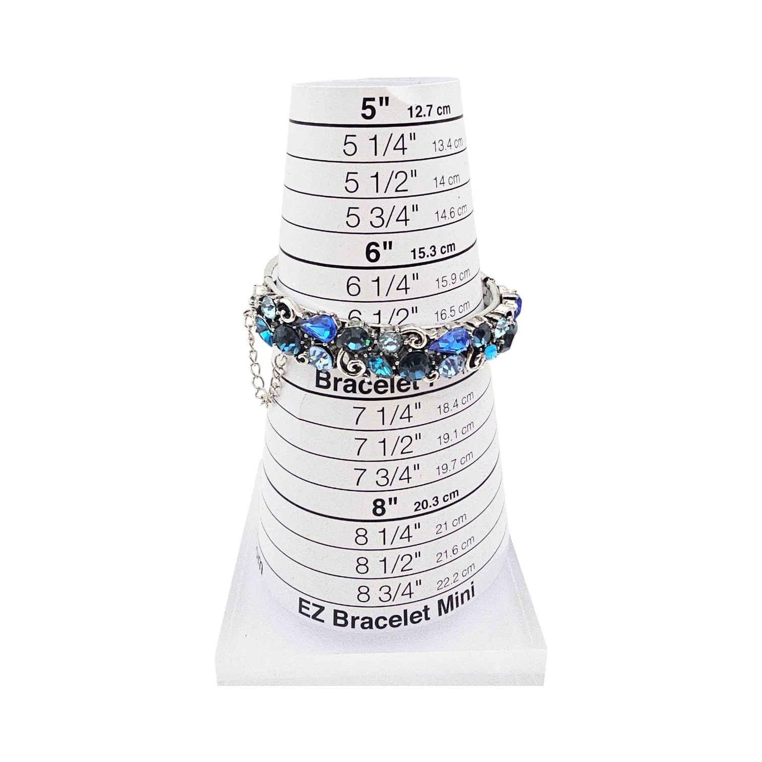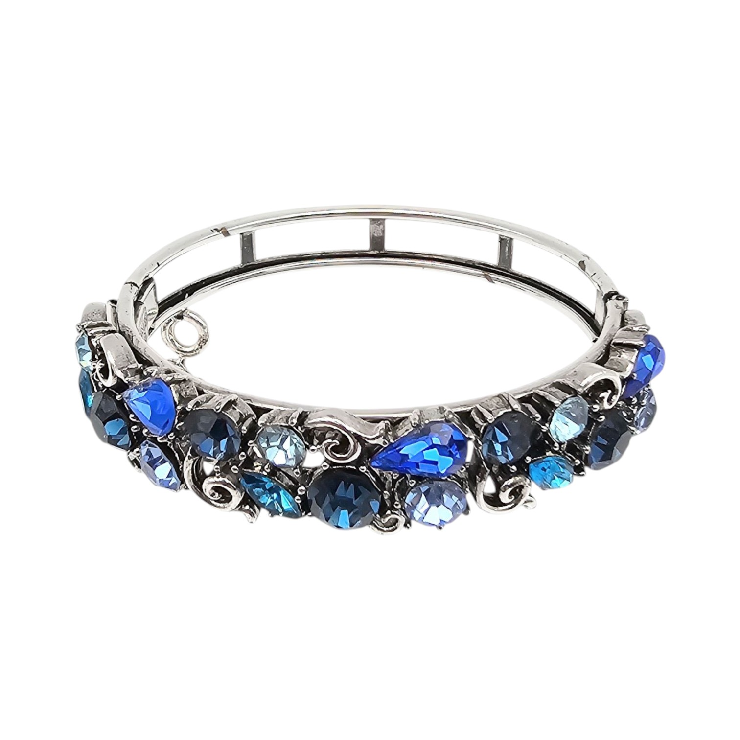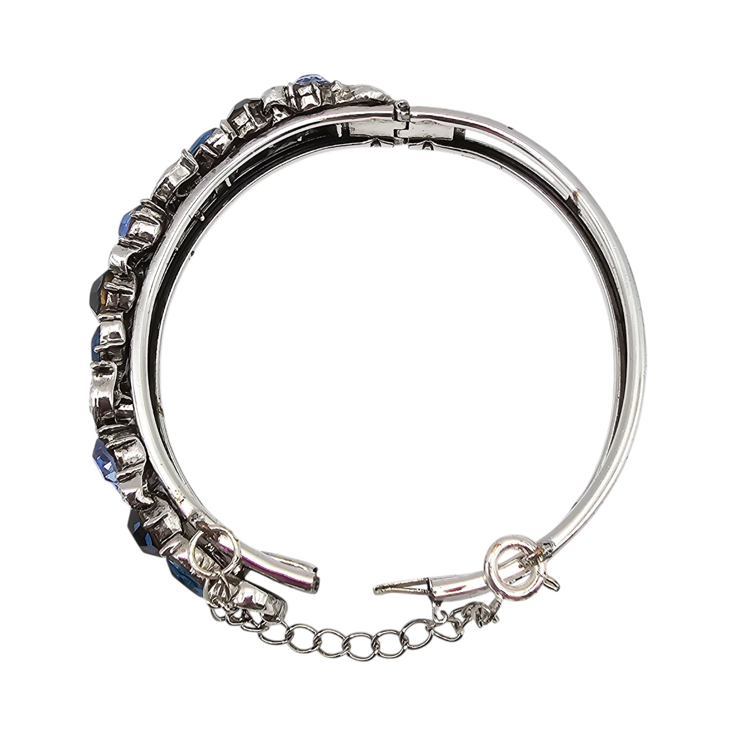 Lisner Vintage Blue Rhinestone Silver Tone Hinged Bangle Bracelet