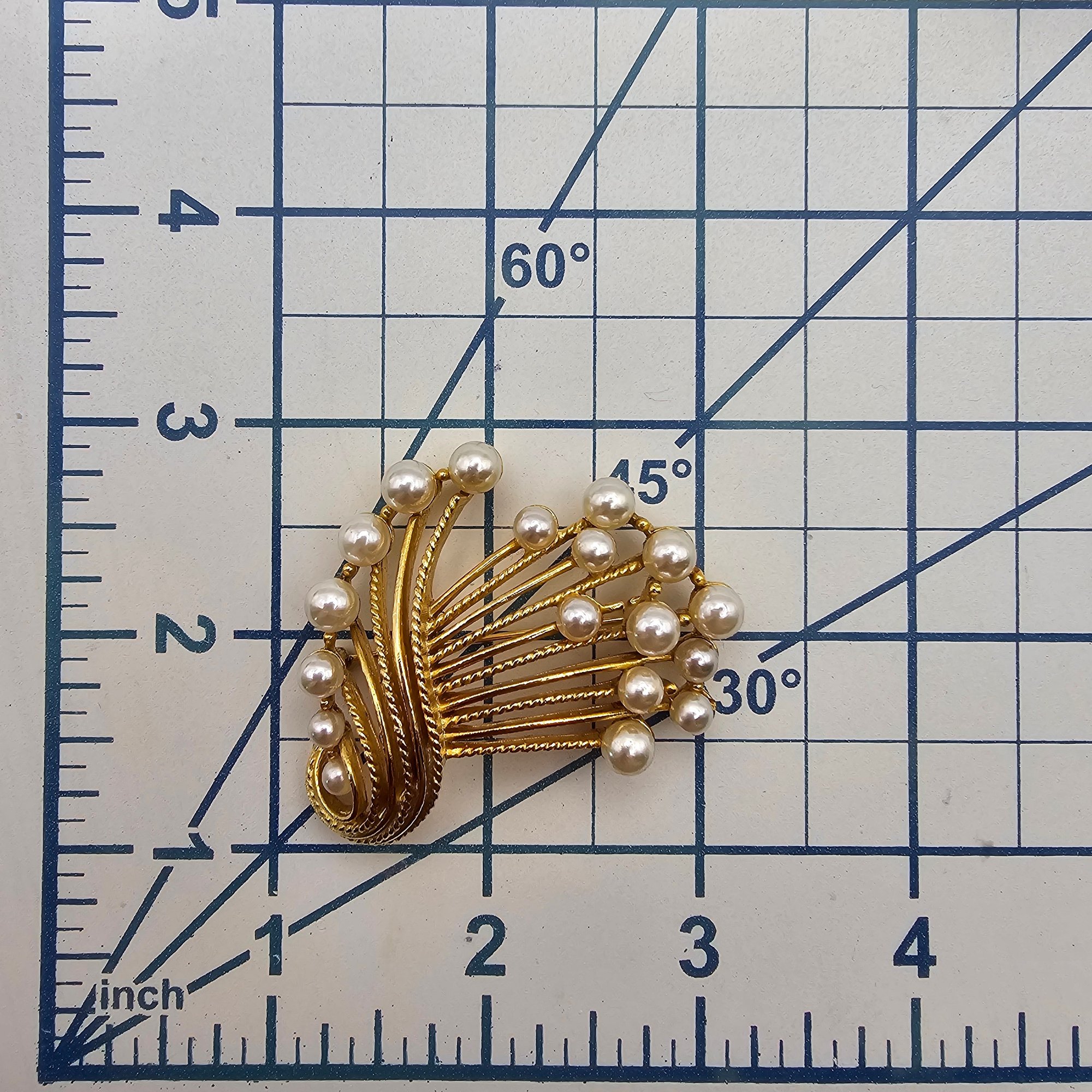 Lisner Vintage Faux Pearl Gold Tone Spray Brooch