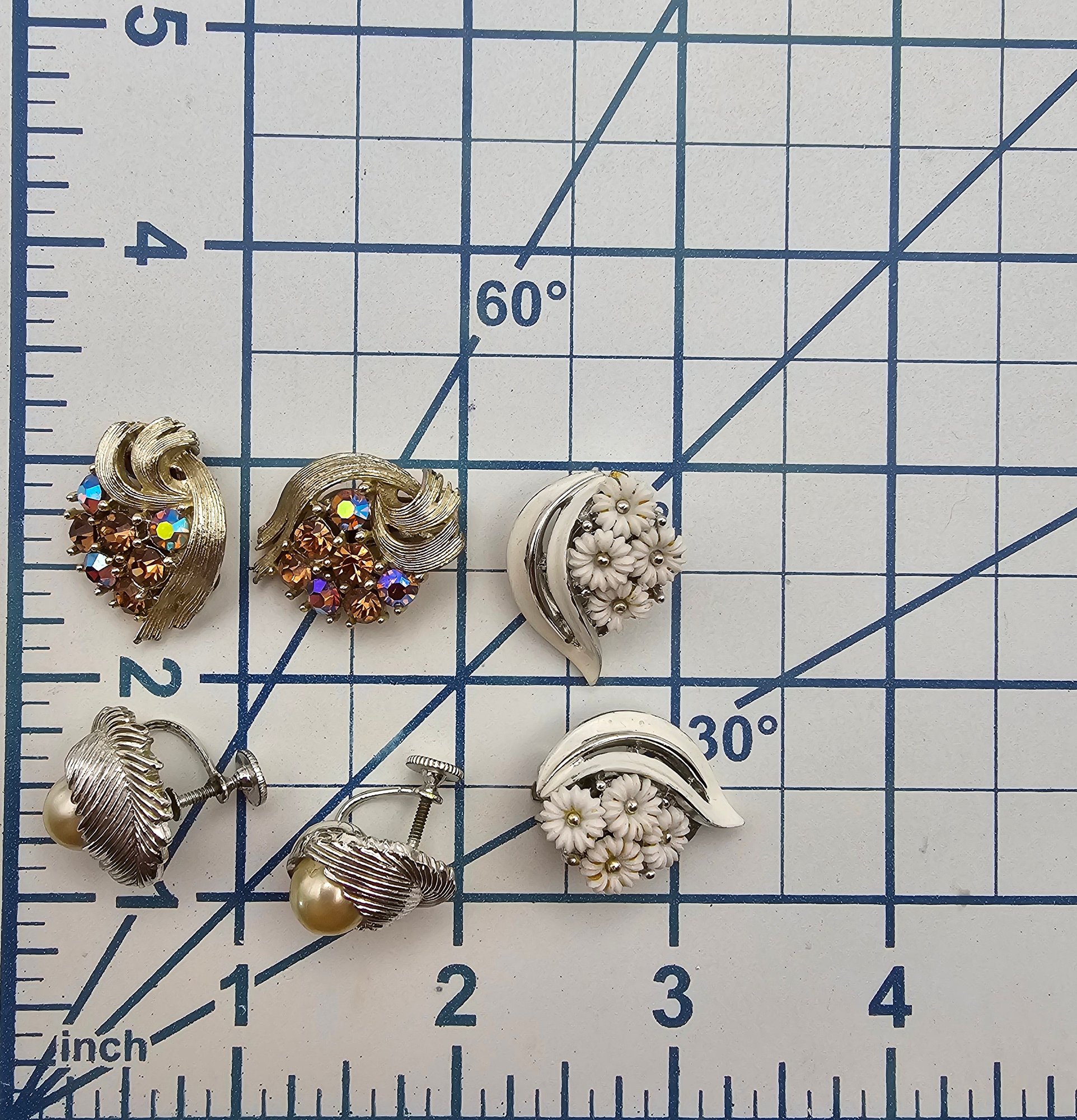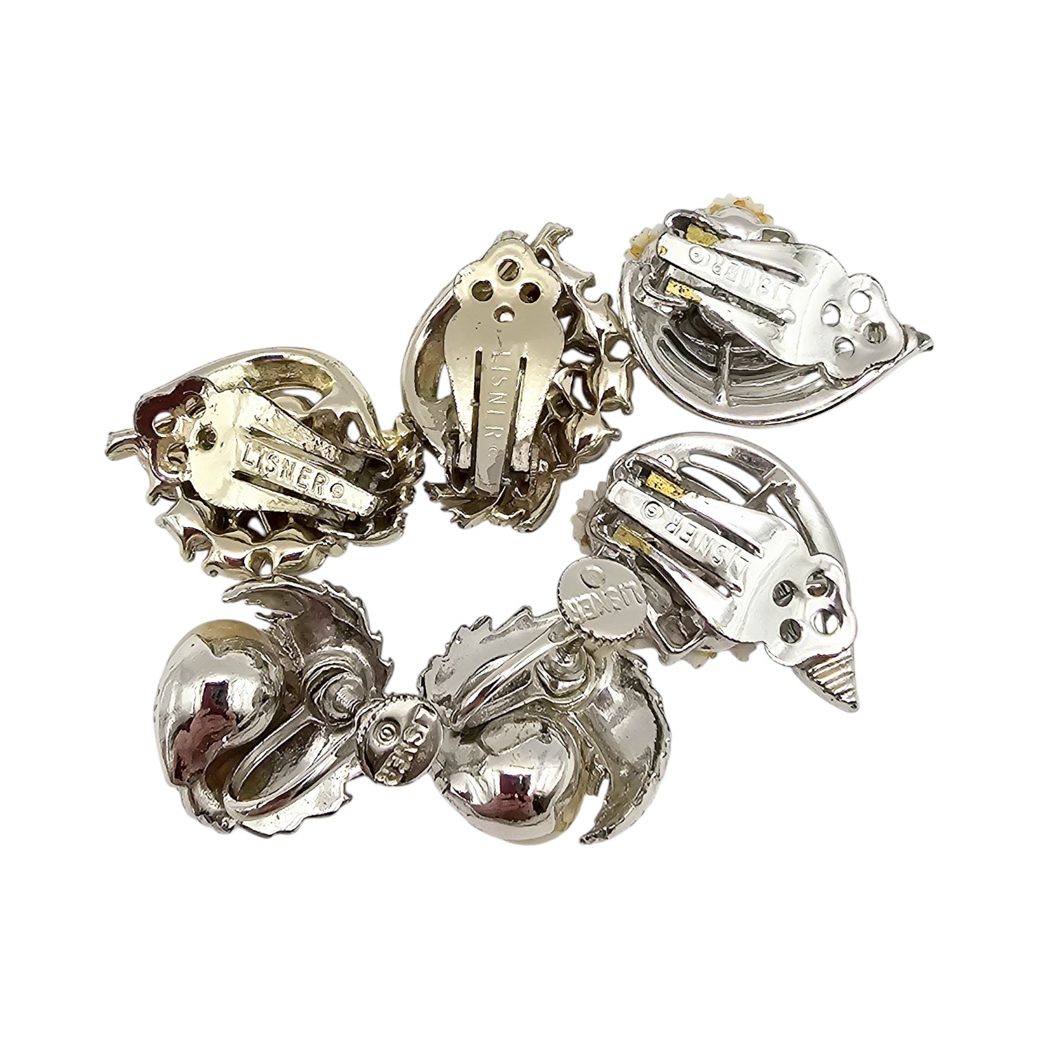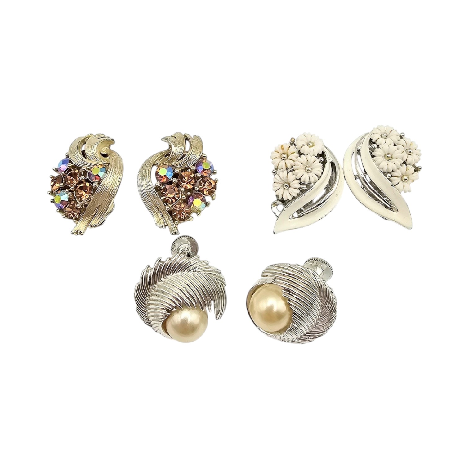 Lisner Vintage Lot 3 Faux Pearl Rhinestone Thermoset Earrings