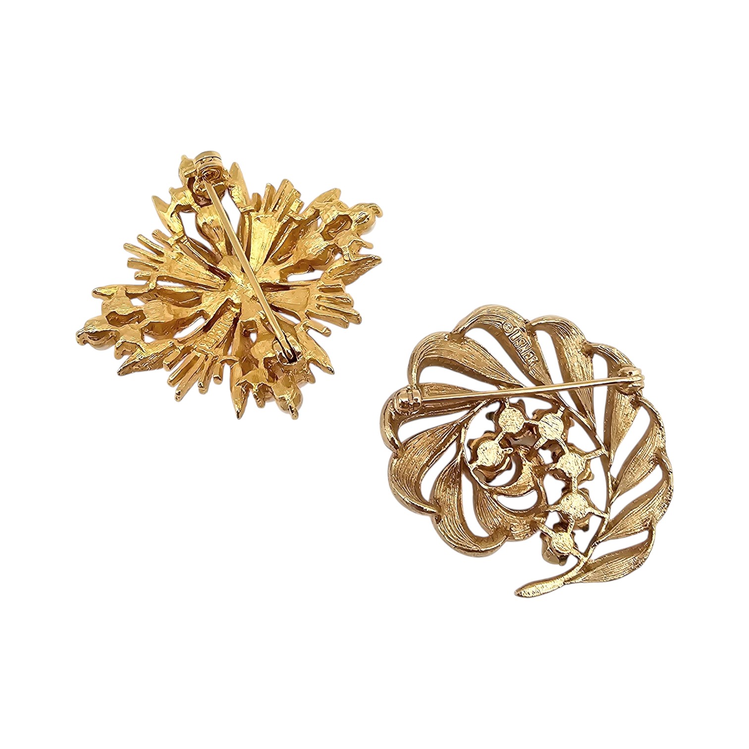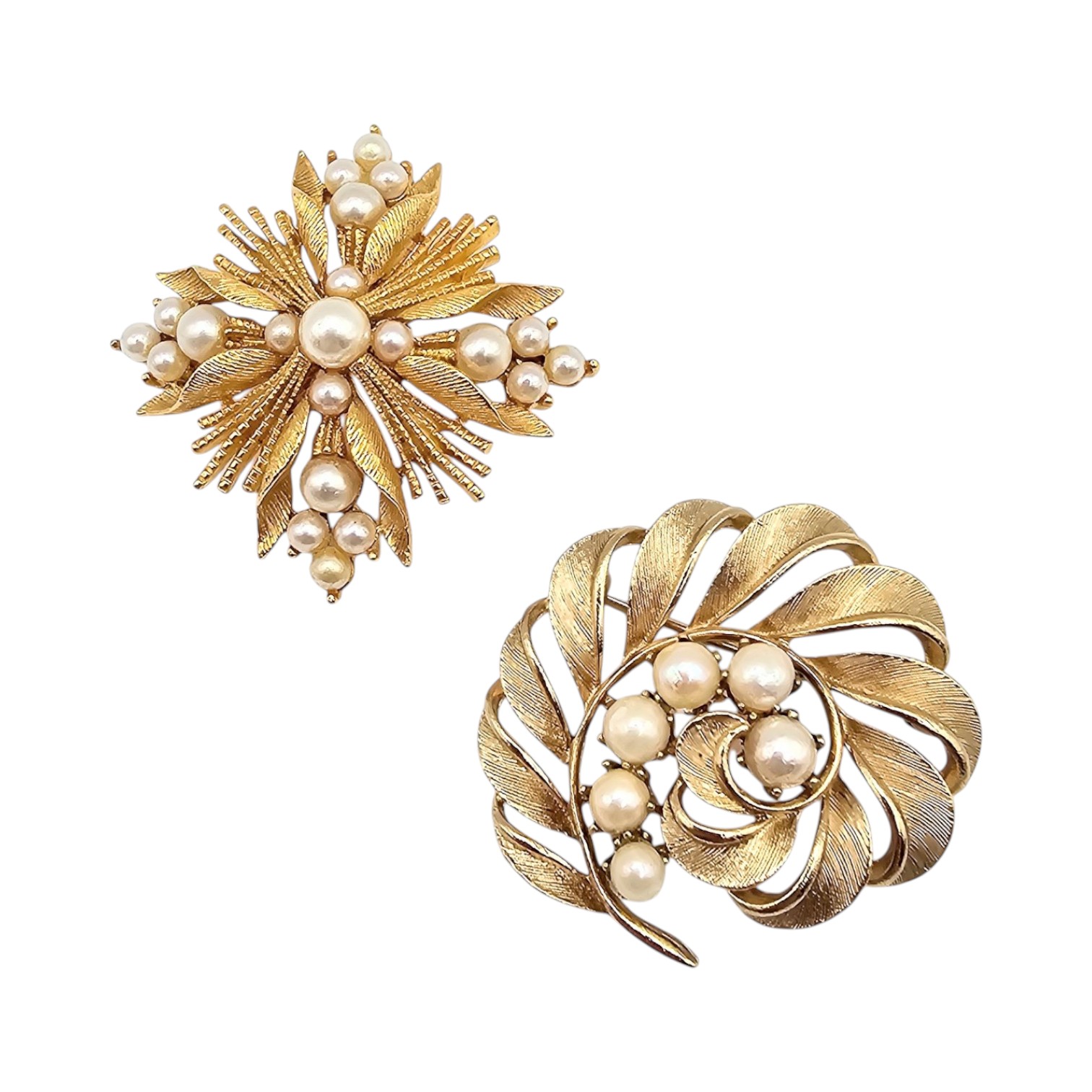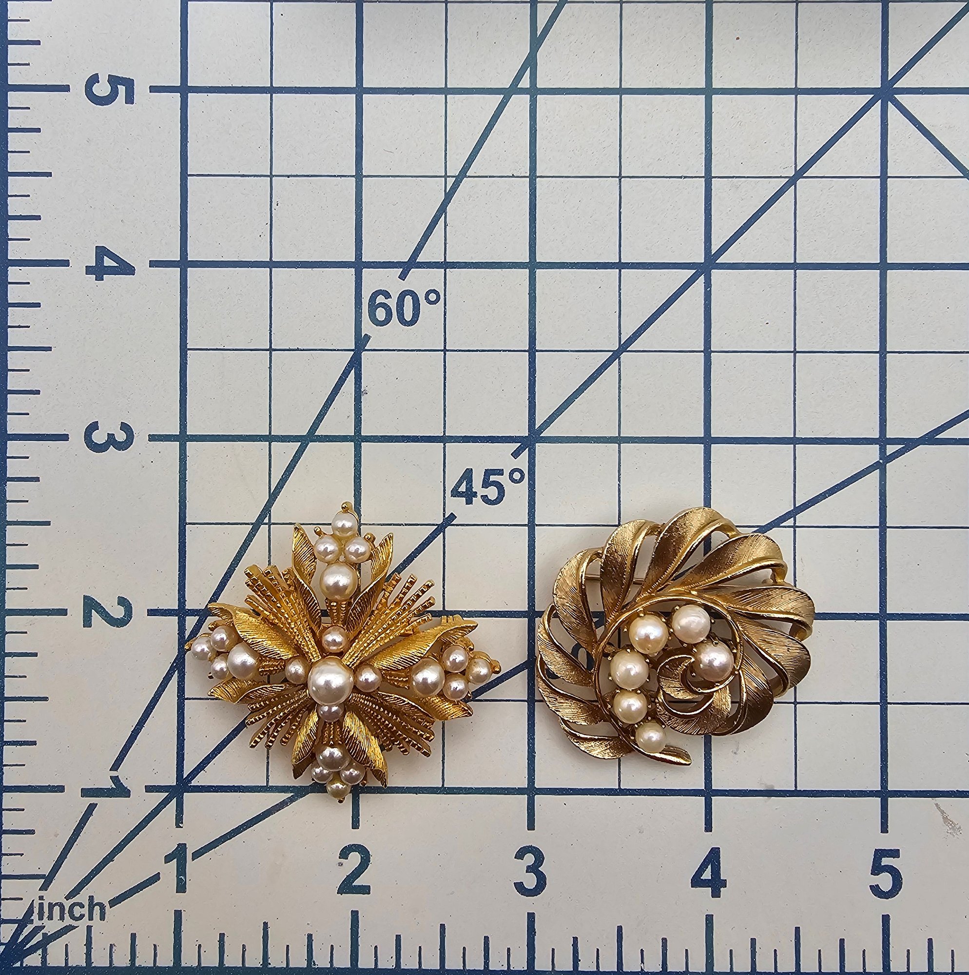 Lisner Vintage Lot 2 Faux Pearl Gold Tone Brooches