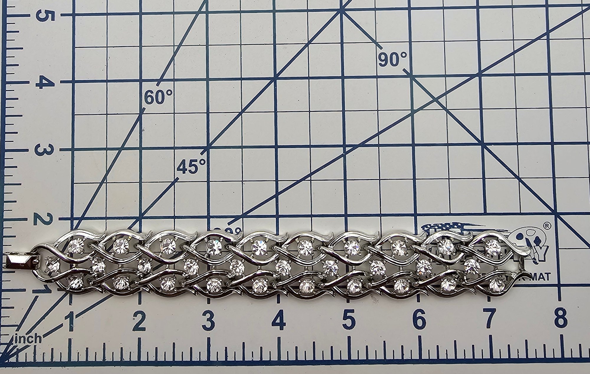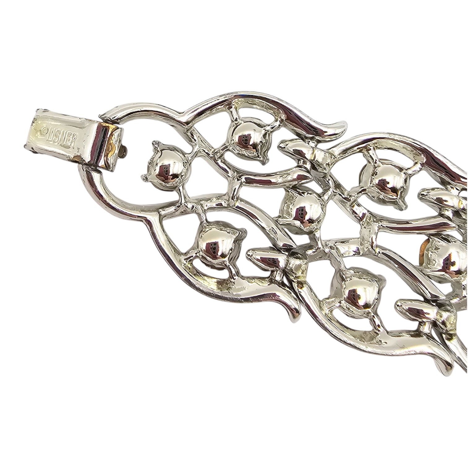 Lisner Vintage Clear Rhinestone Silver Tone Wide Bracelet