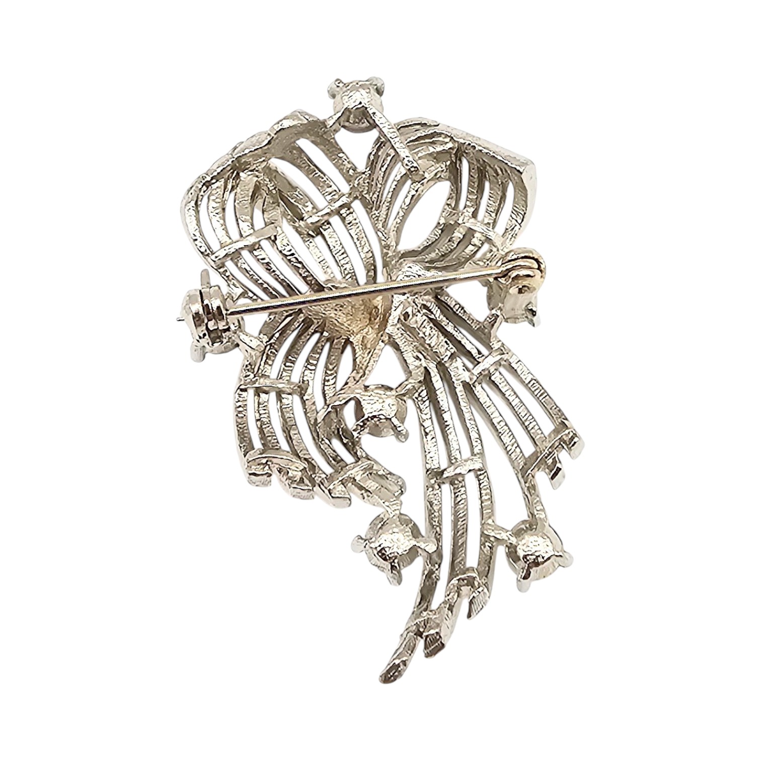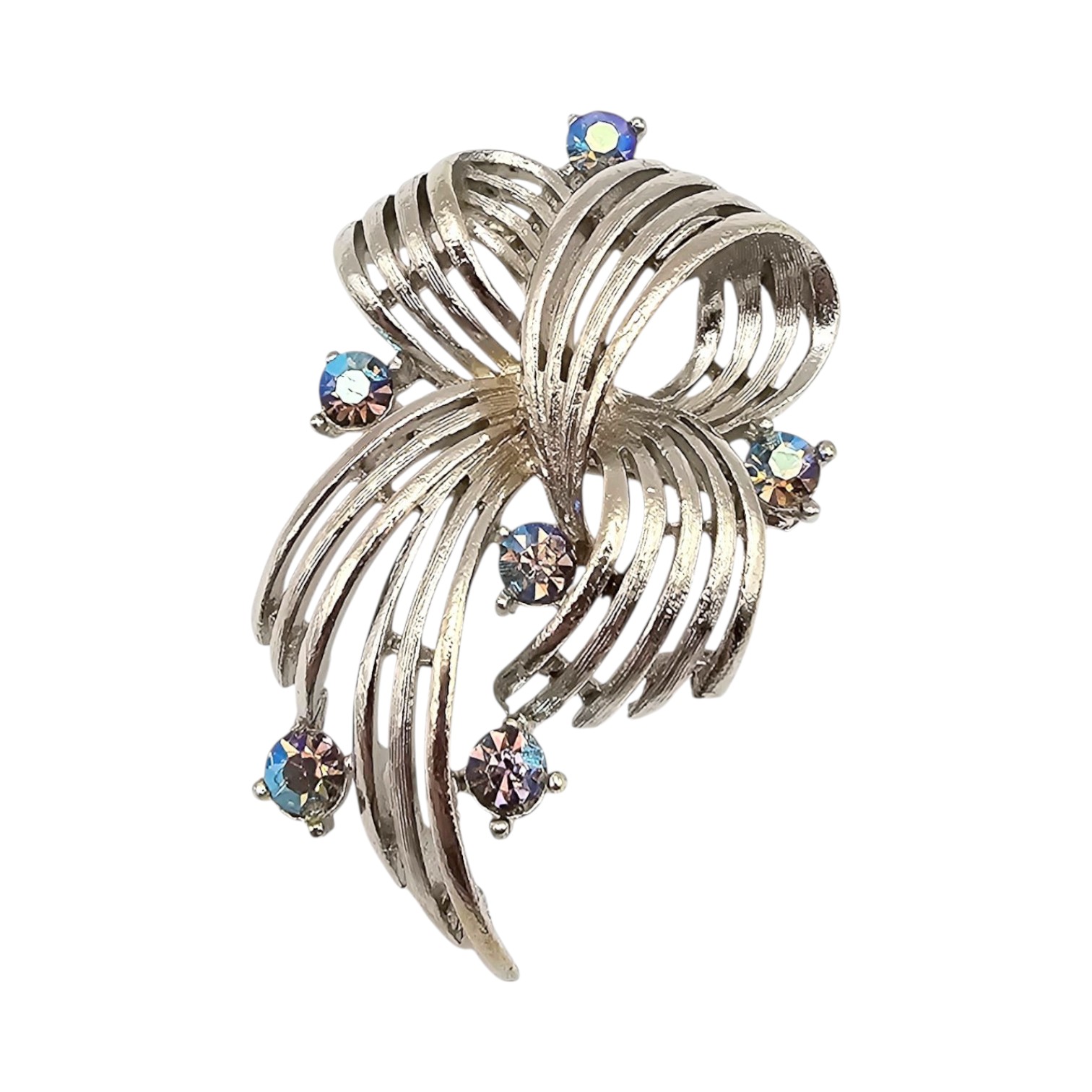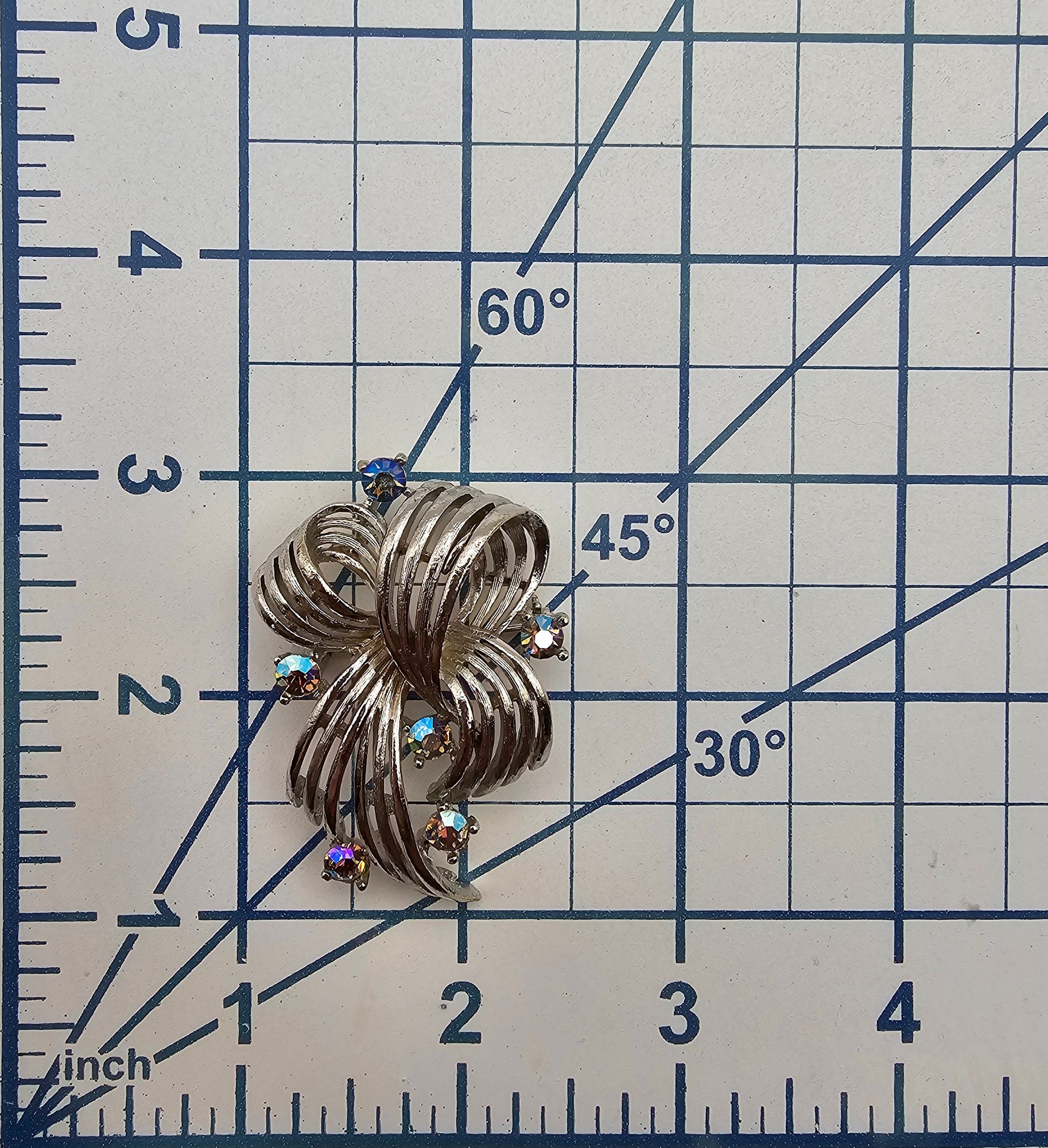 Lisner Vintage Blue Rhinestone Silver Tone Swirl Brooch