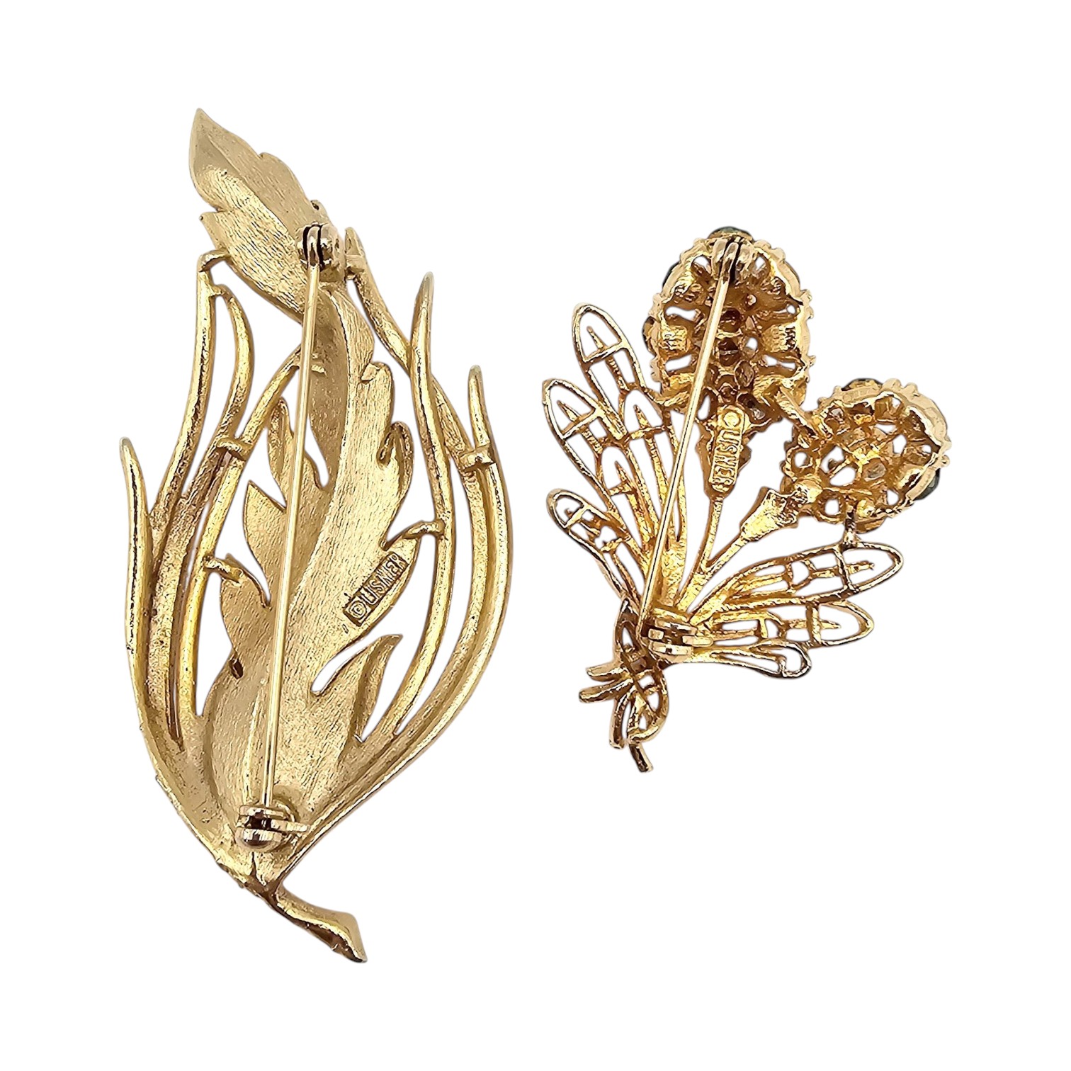 Lisner Vintage Lot 2 Gold Tone Rhinestone Brooches