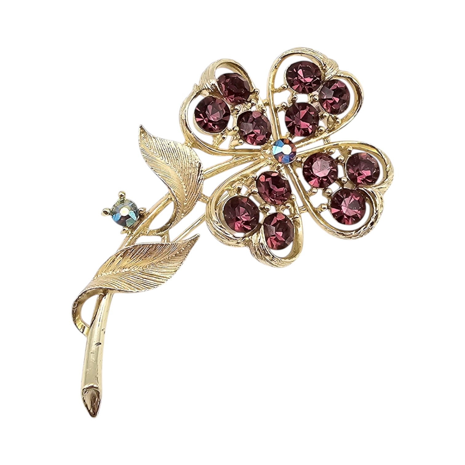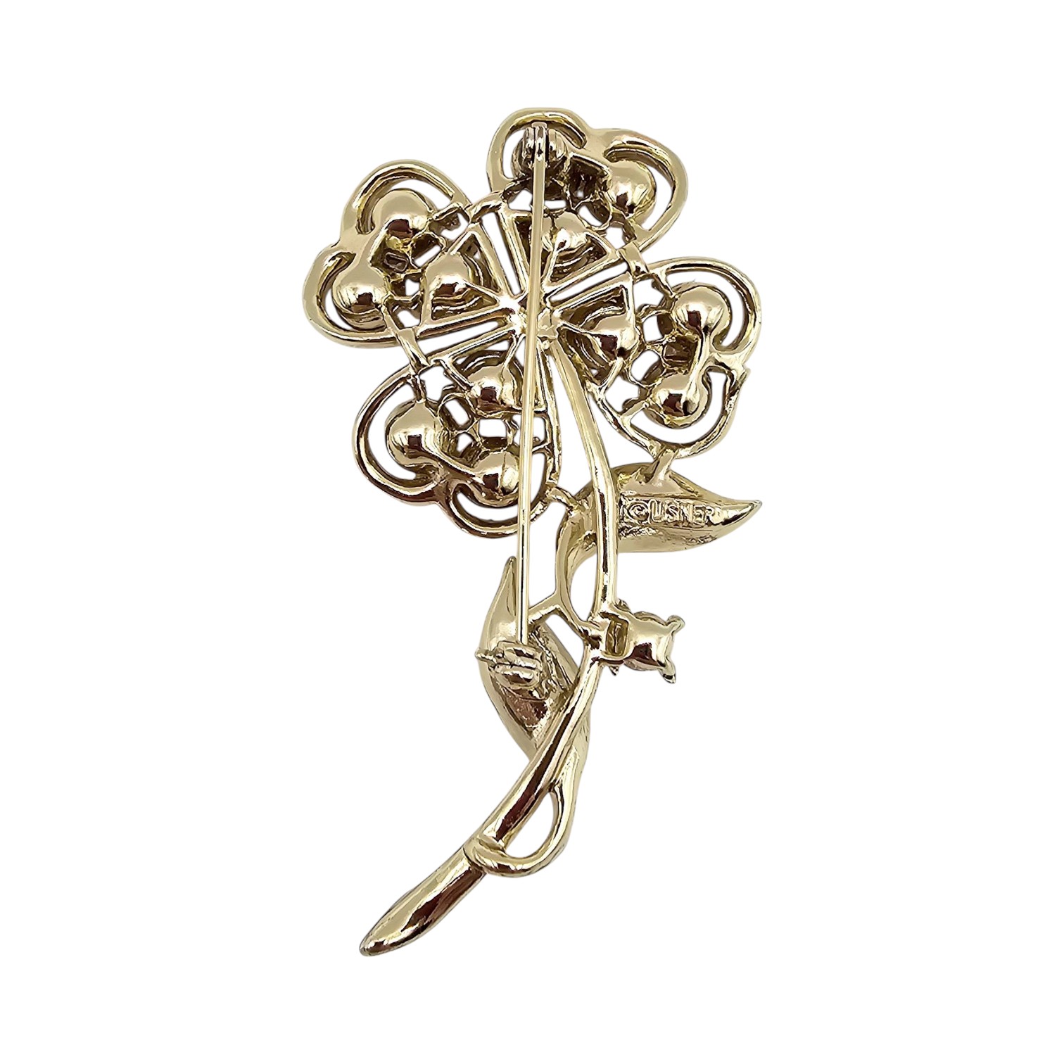 Lisner Vintage Rhinestone Gold Tone Flower Brooch