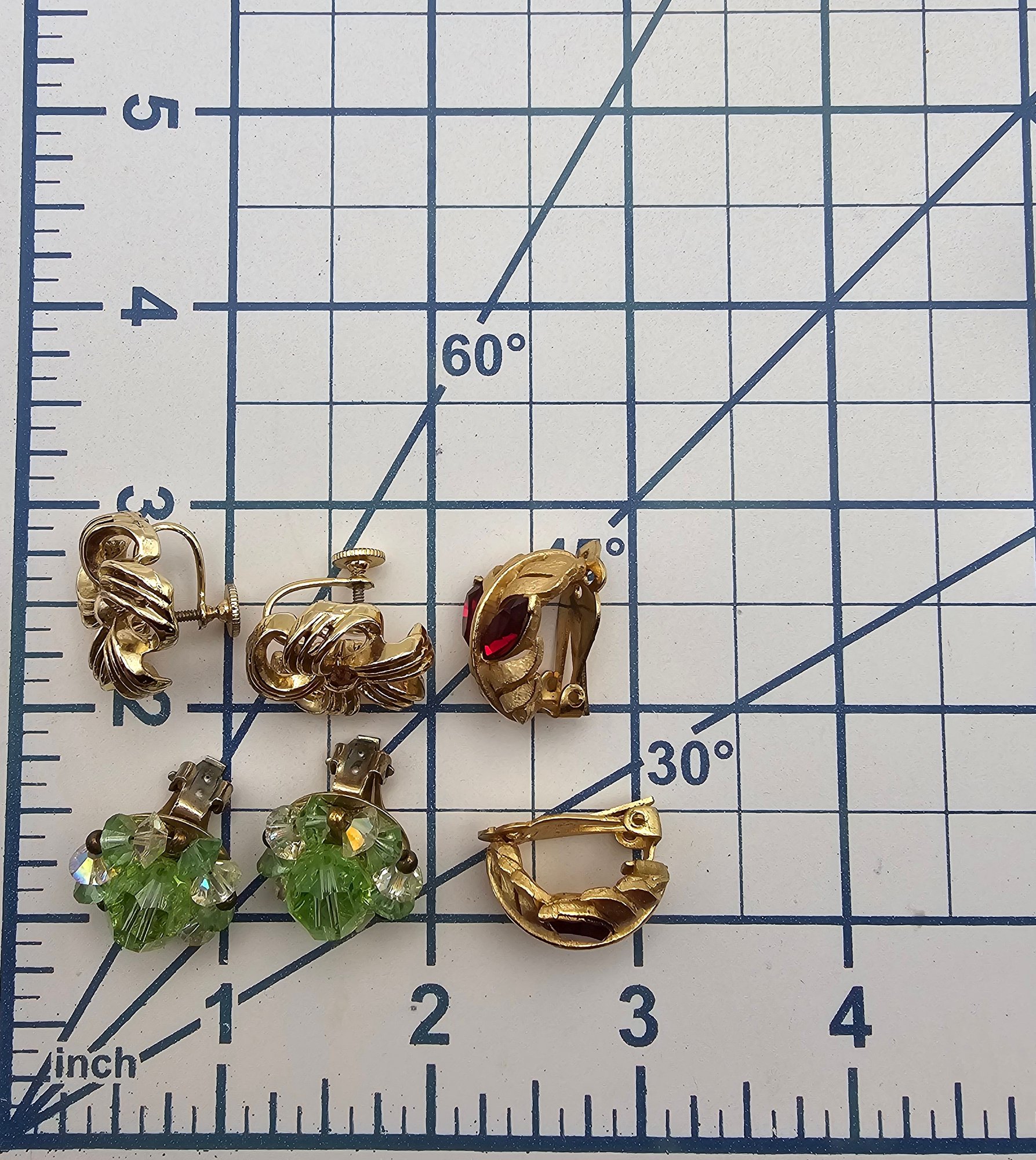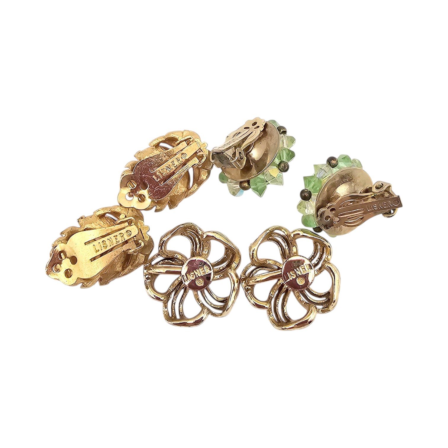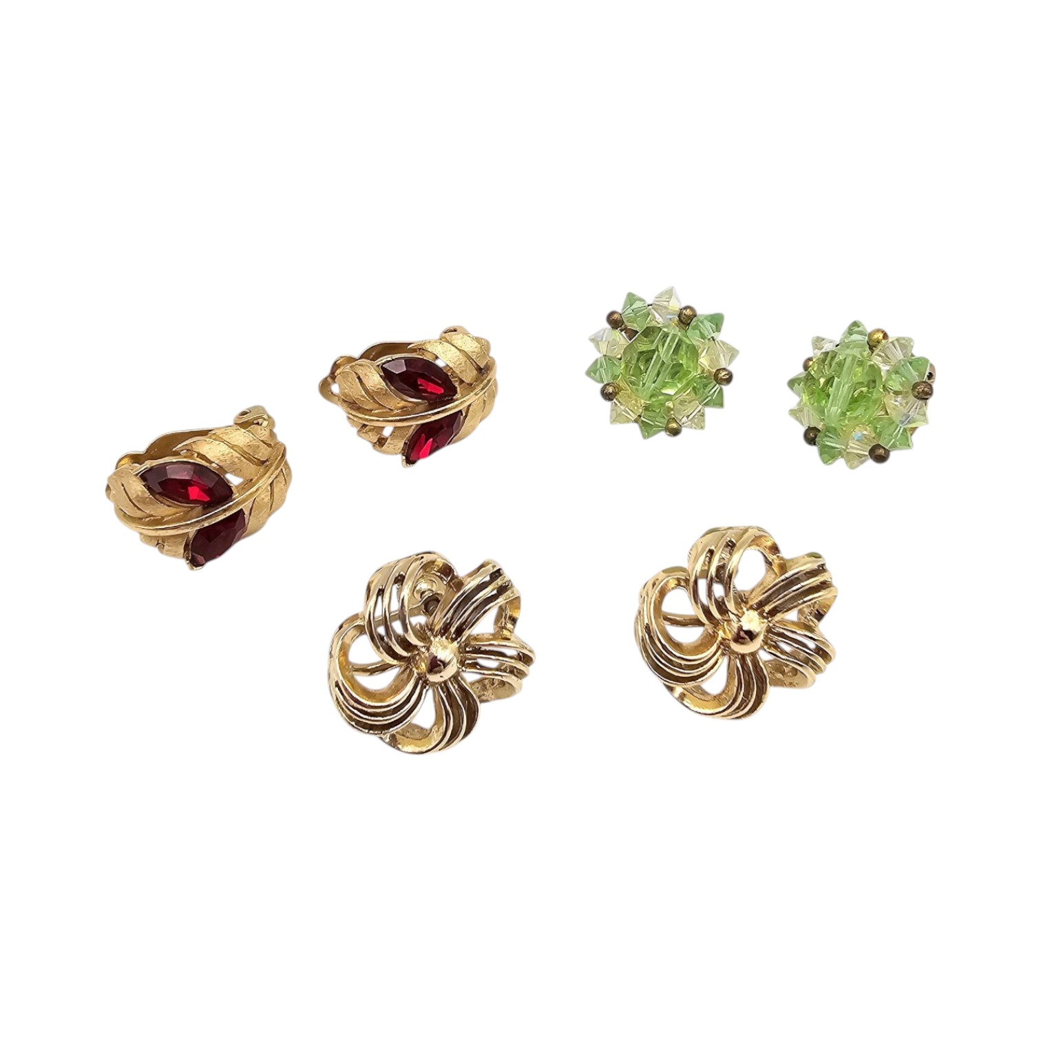 Lisner Lot 3 Rhinestone Gold Tone Earrings