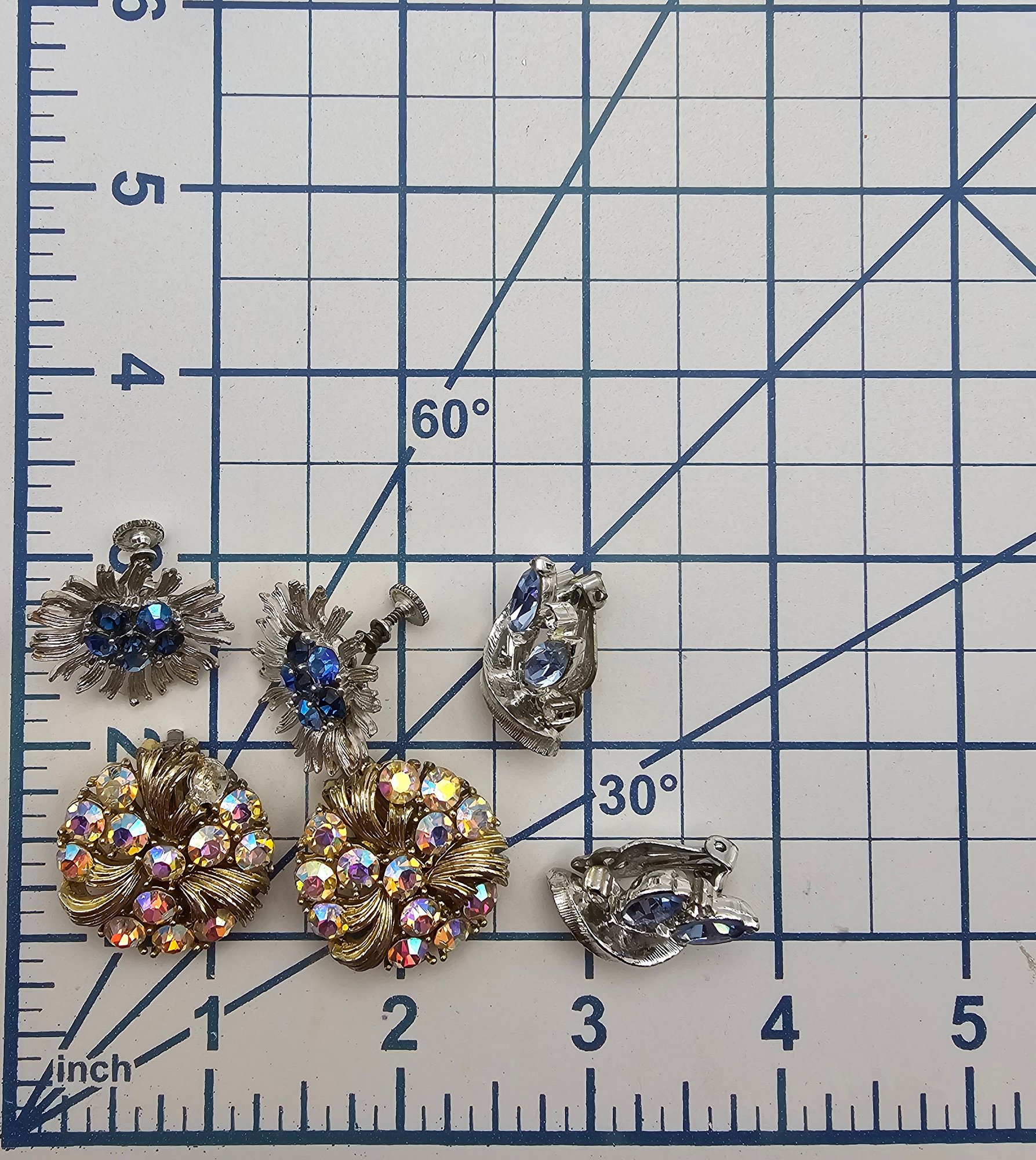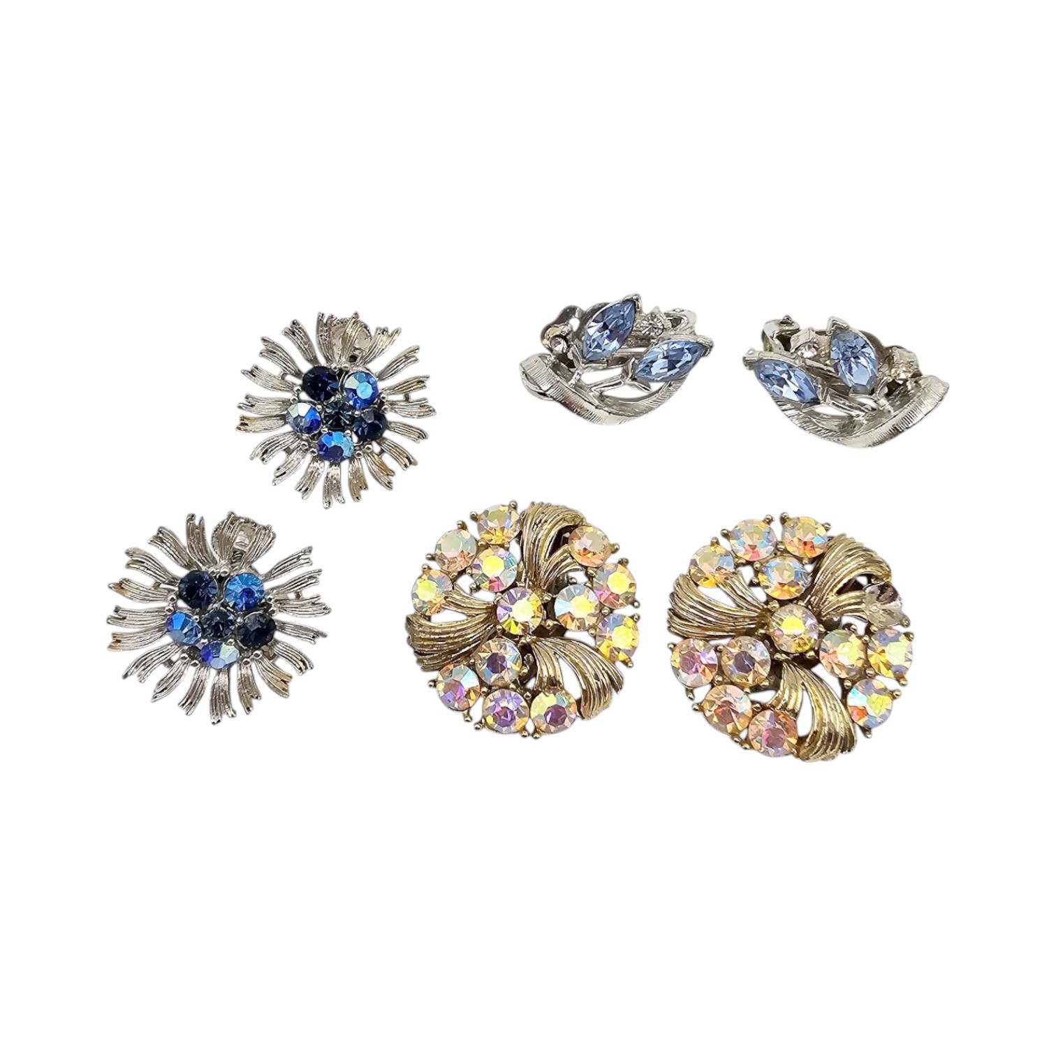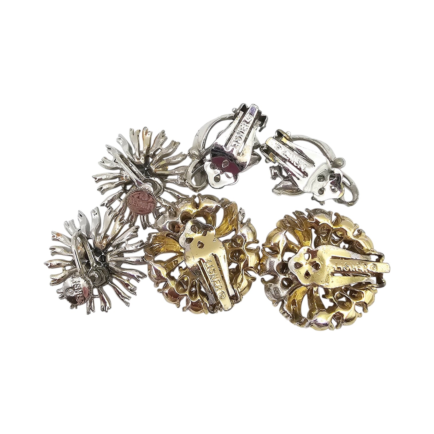 Lisner Lot 3 Silver Tone Rhinestone Earrings