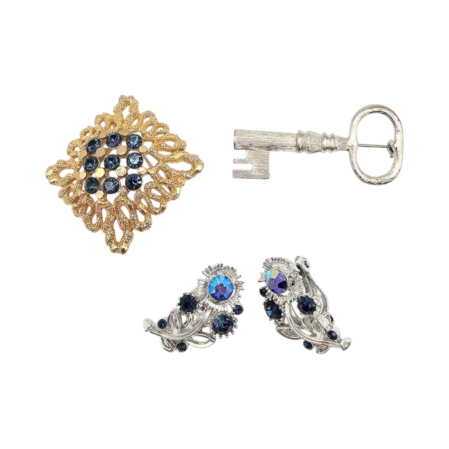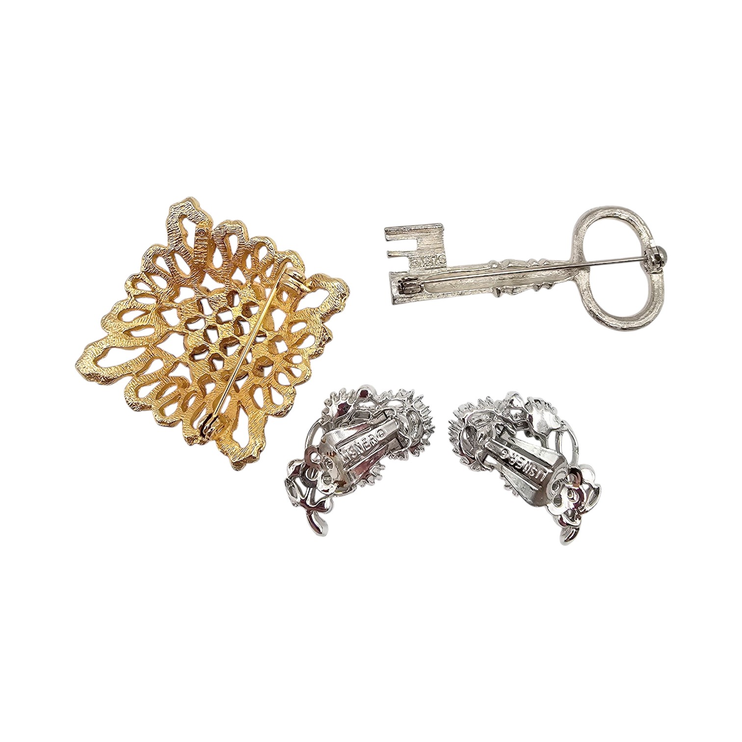 Lisner Lot 2 Rhinestone Brooches Earrings
