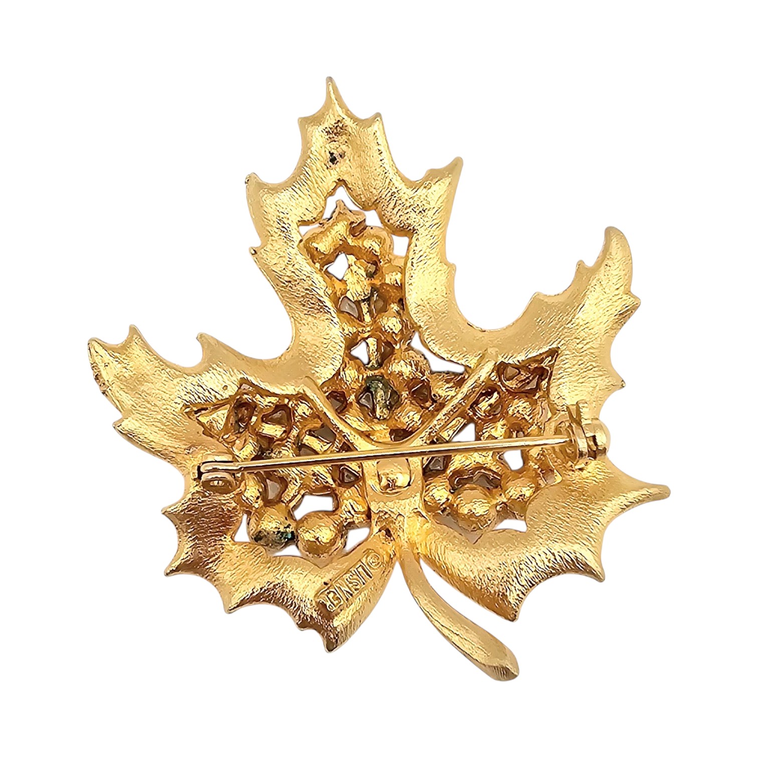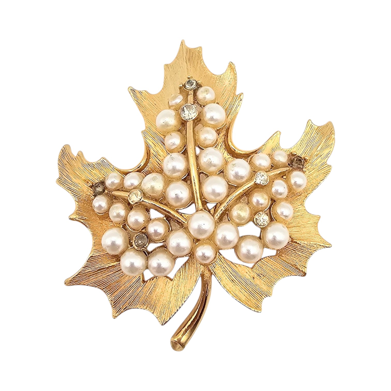 Lisner Faux Pearl Gold Tone Leaf Brooch