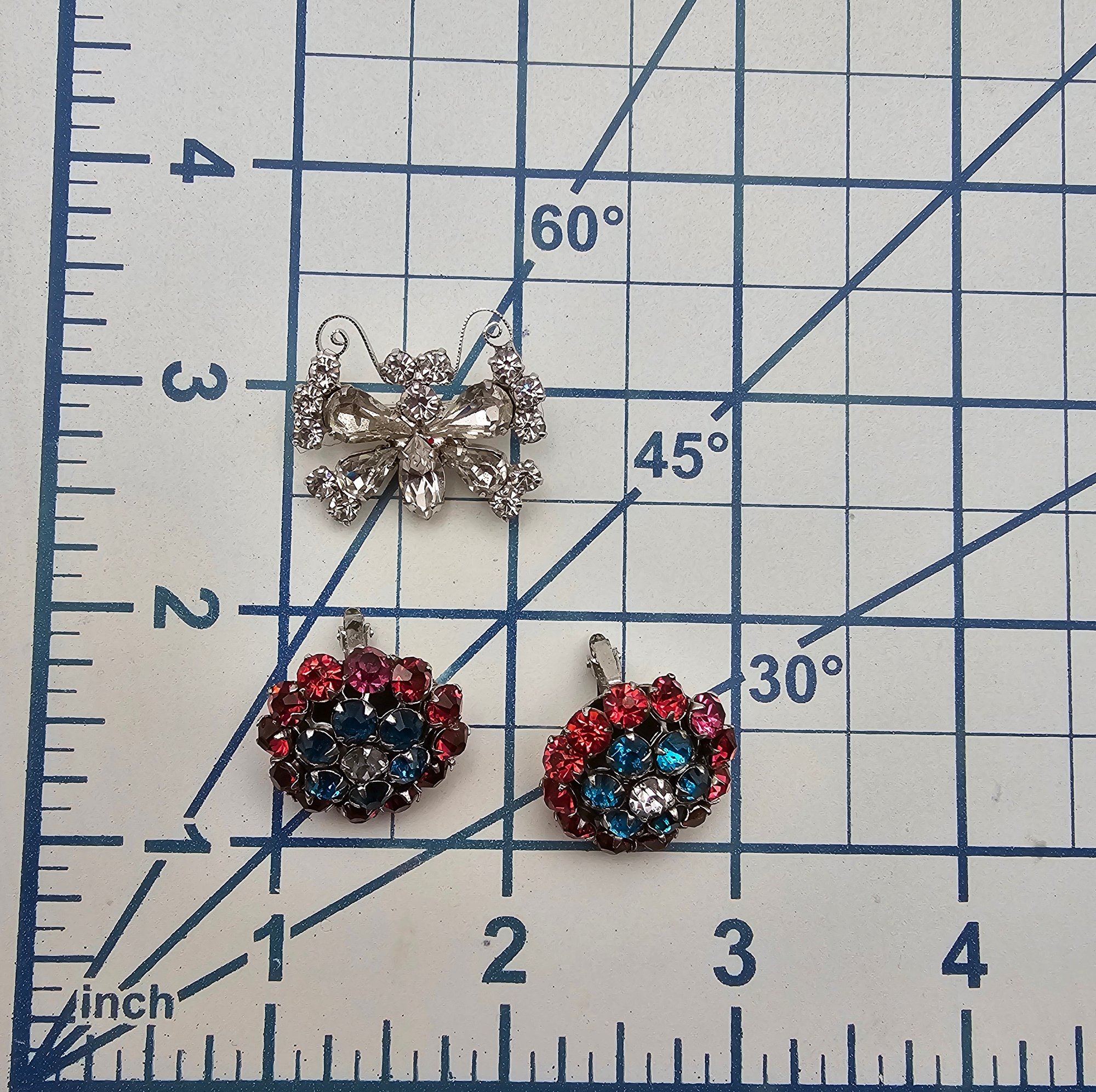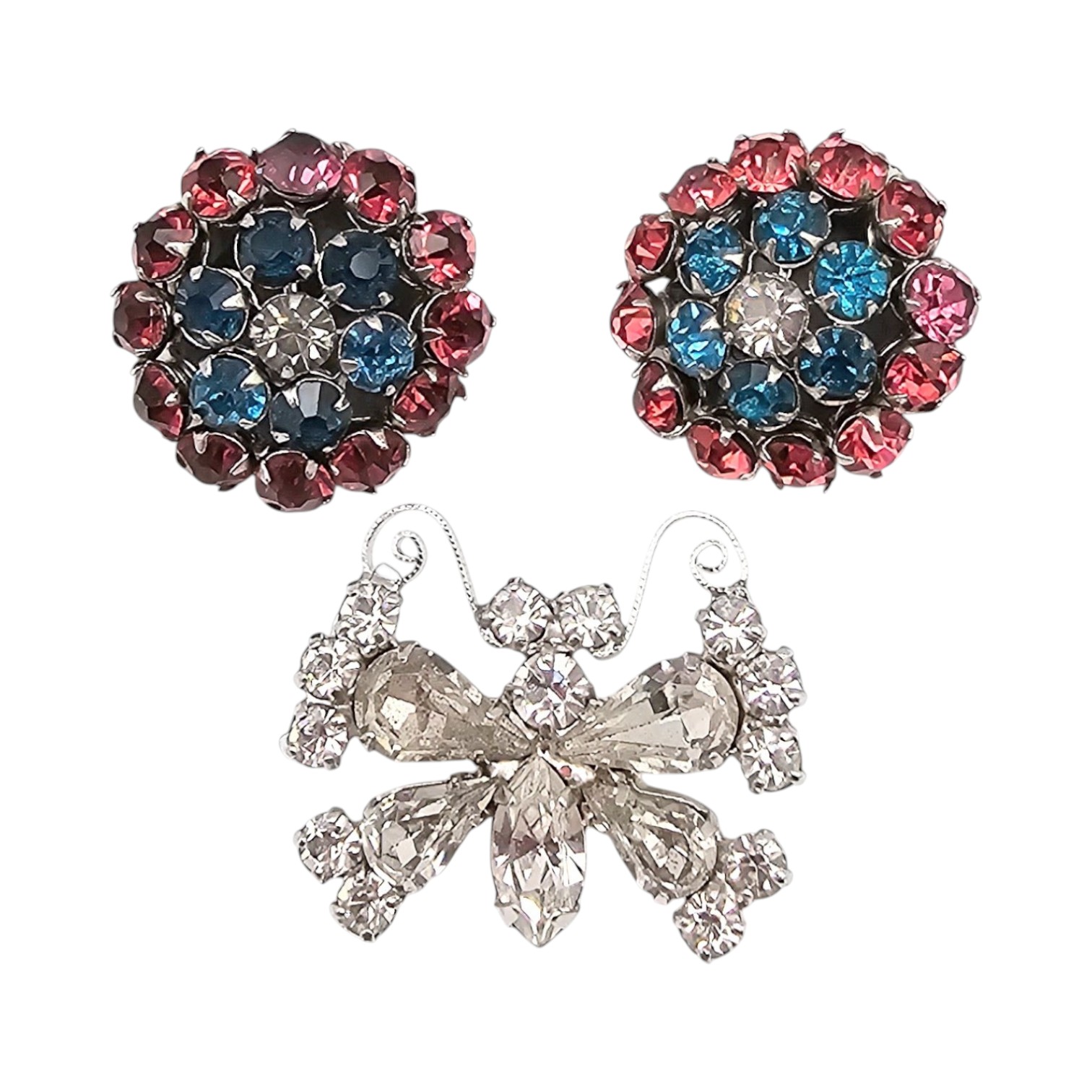 B David Rhinestone Lot Earrings Butterfly Brooch