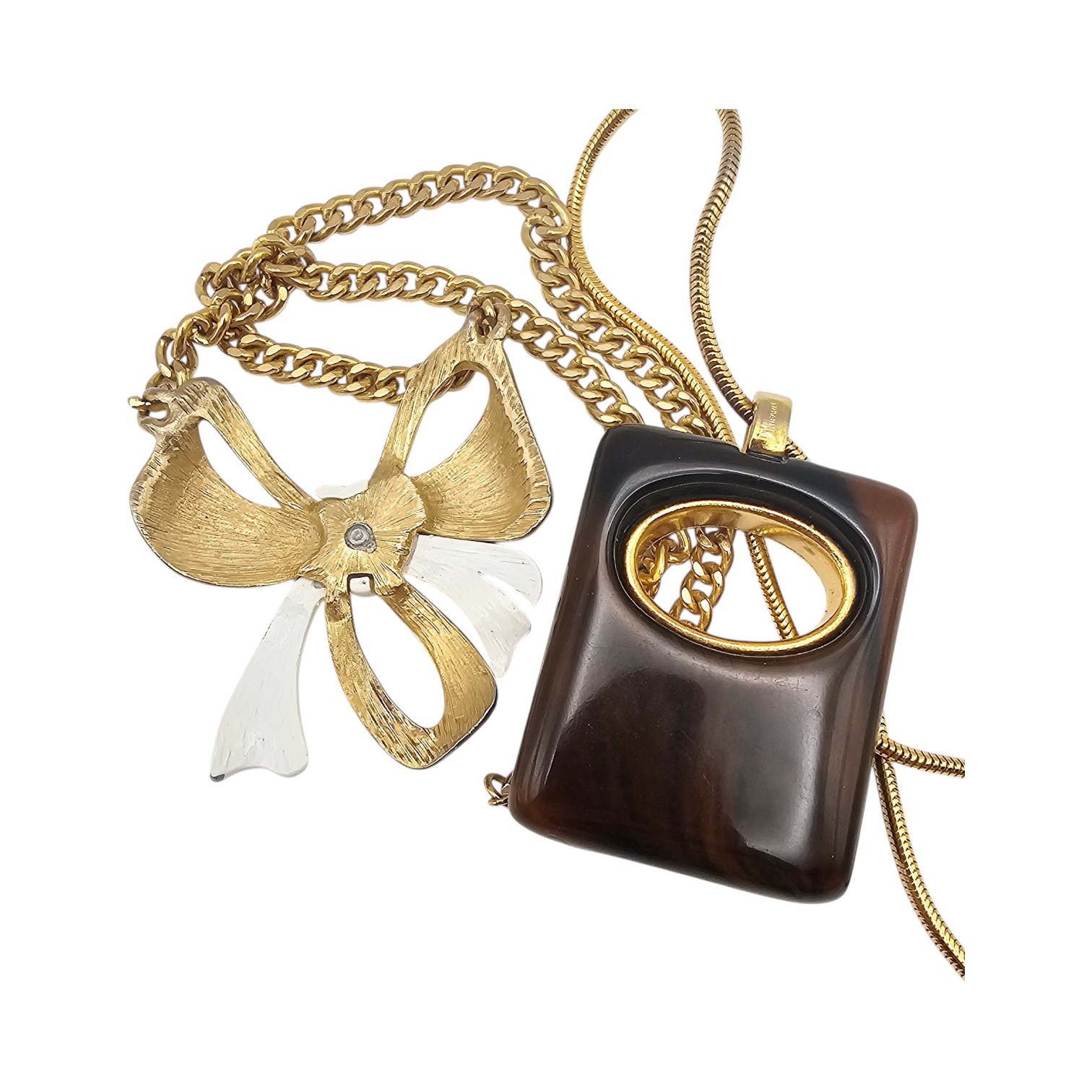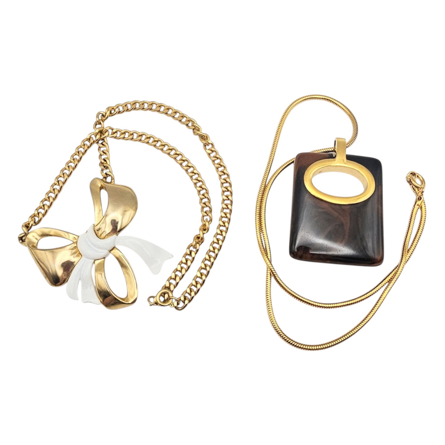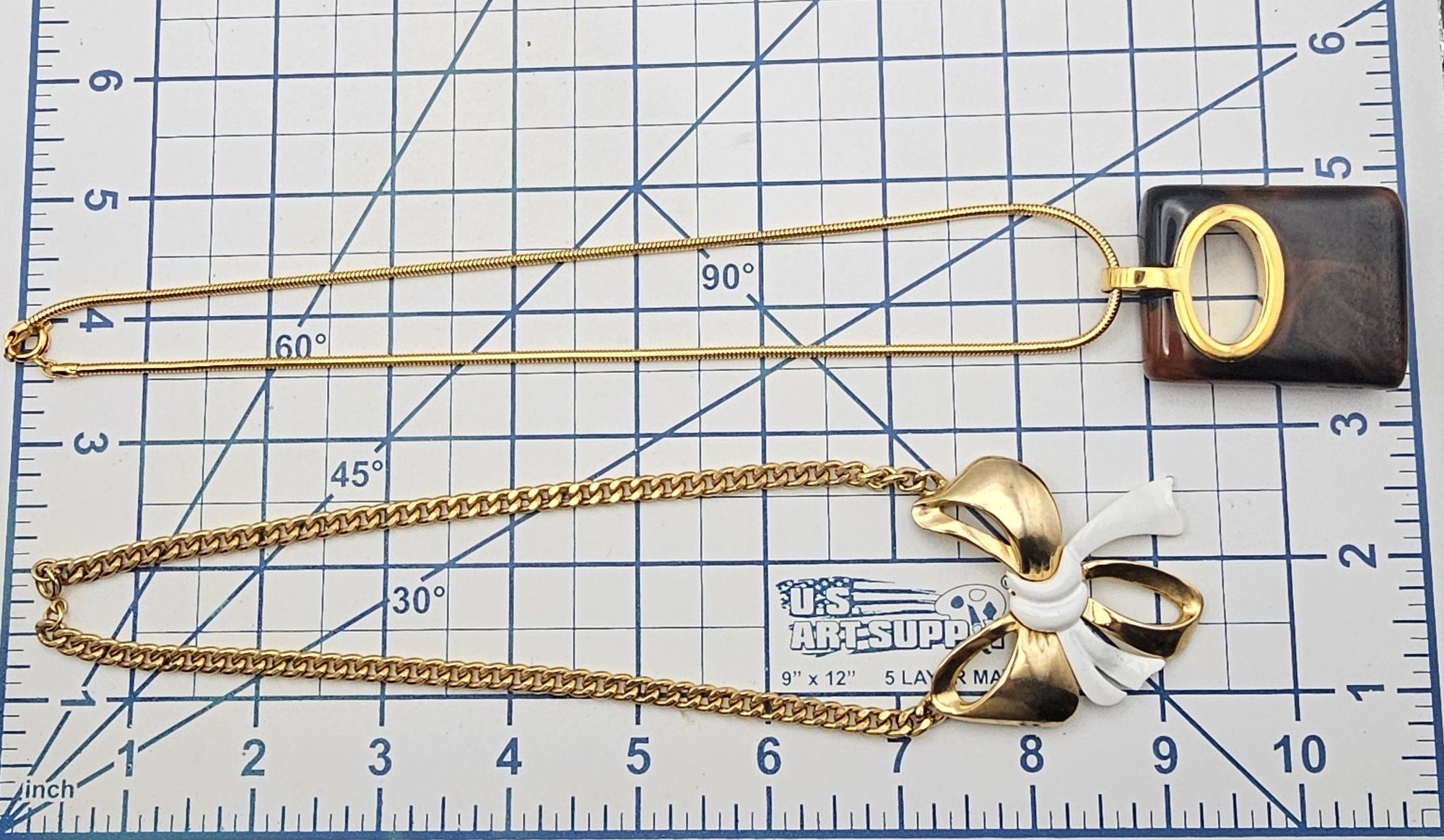 Lot 2 Gold Tone White Enamel Brown Swirl Necklaces