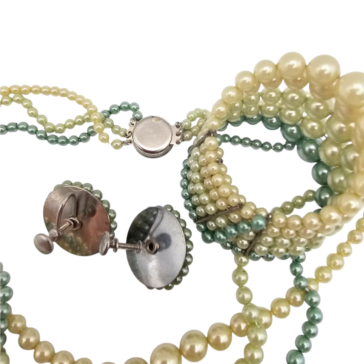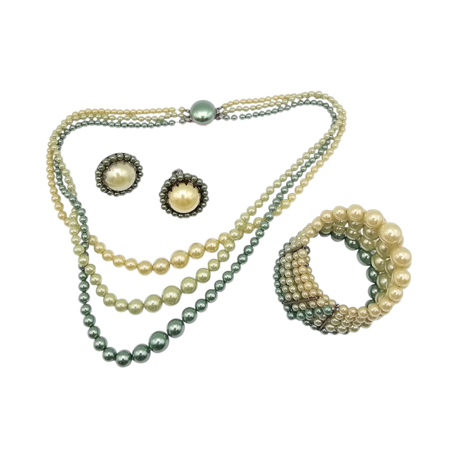 Vintage dyed faux Pearl 3 strand Necklace Wrap Bracelet earrings set