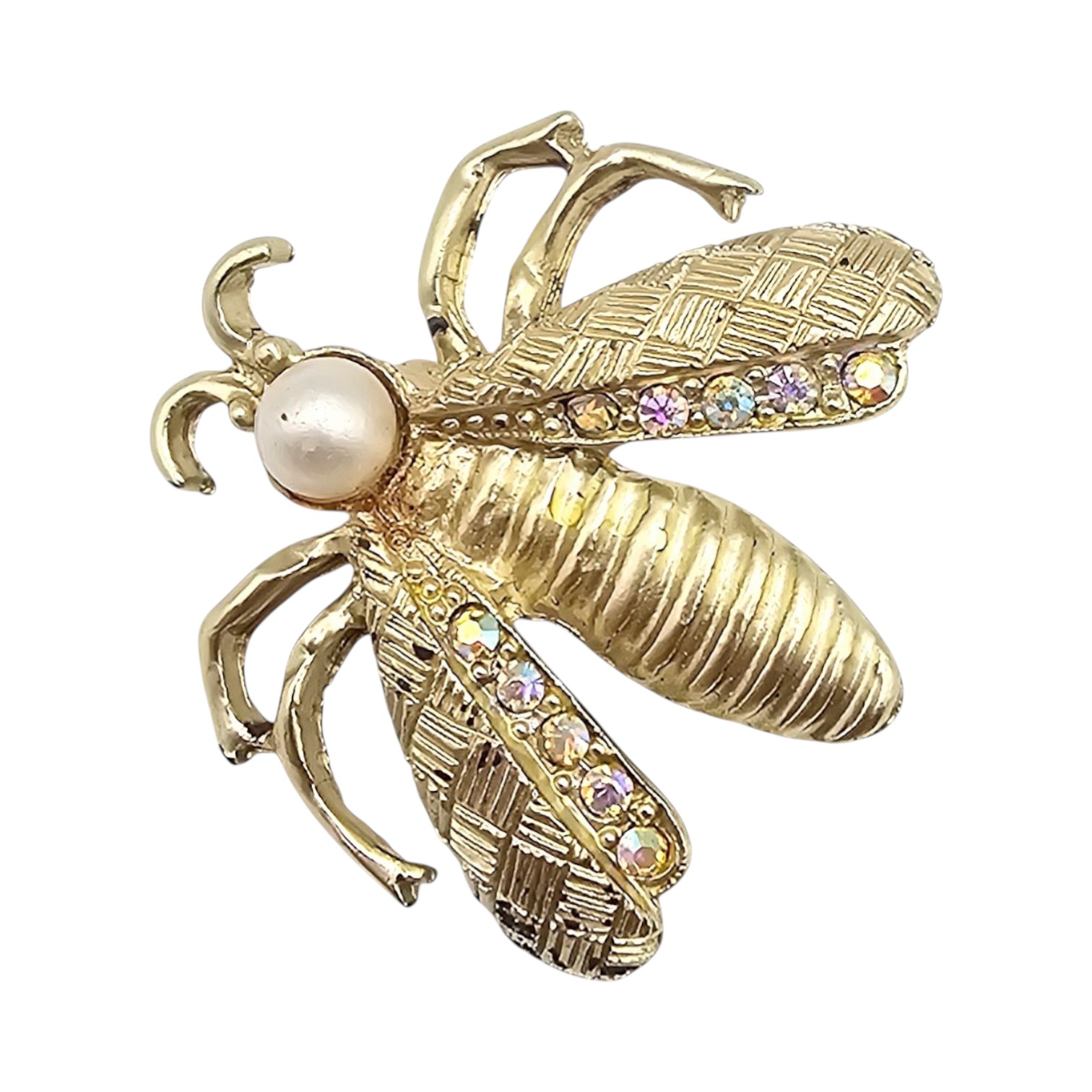 Faux Pearl Gold Tone flying bug Brooch