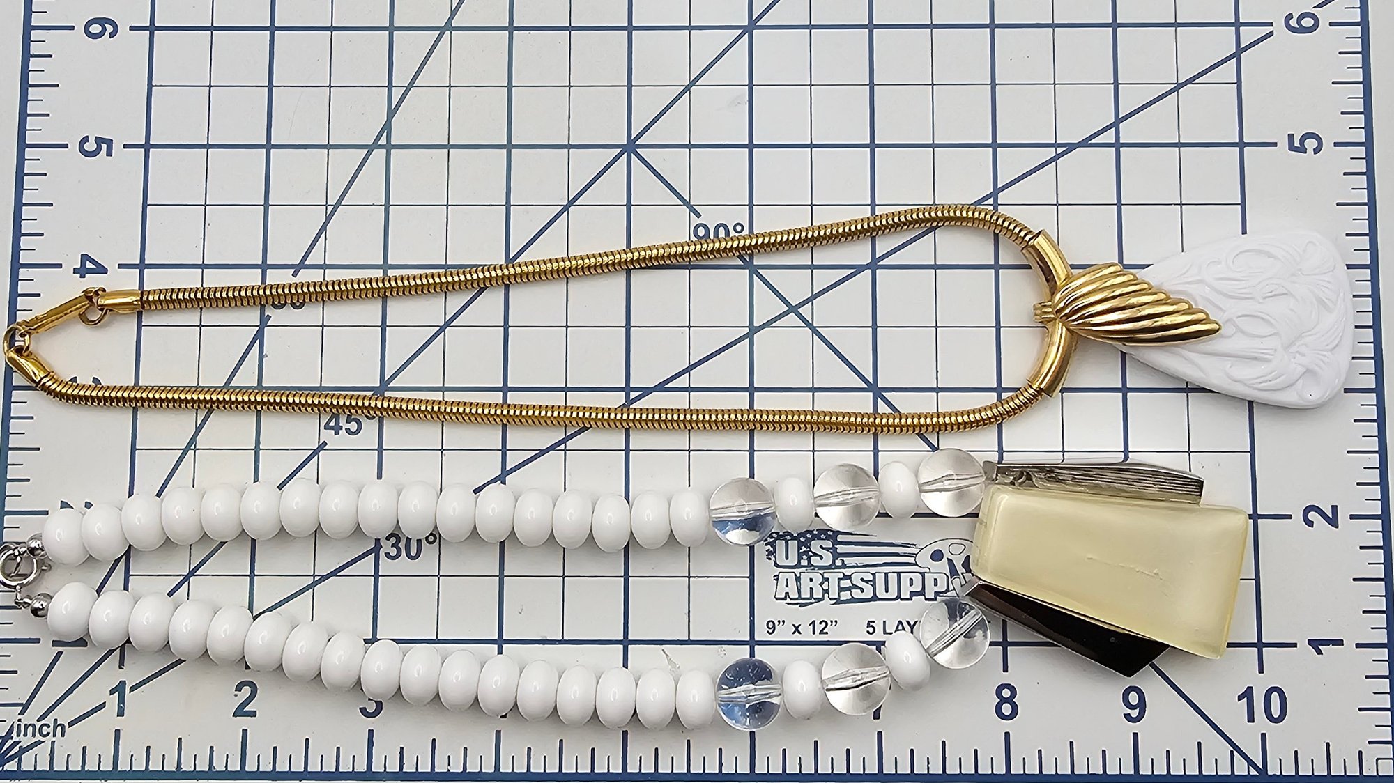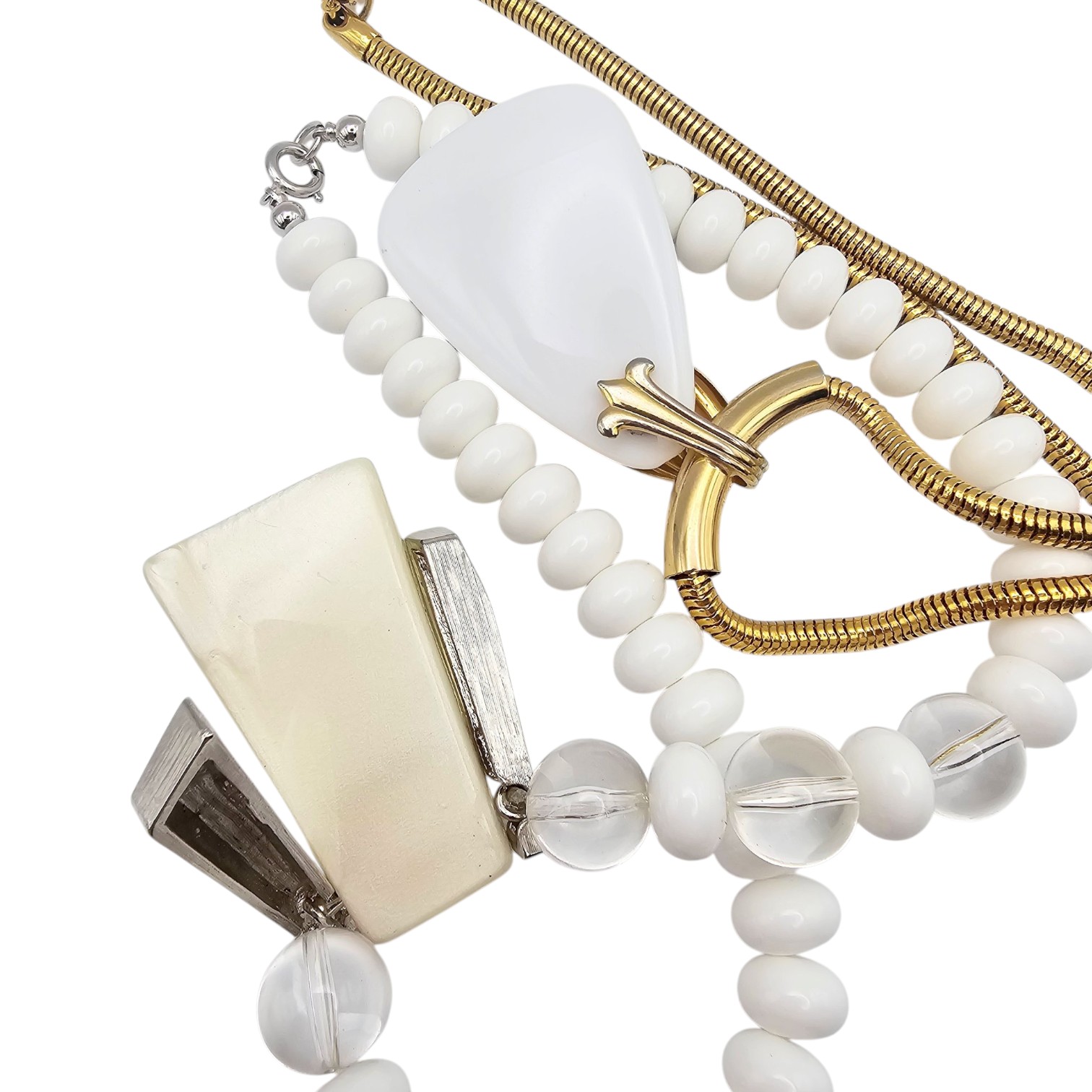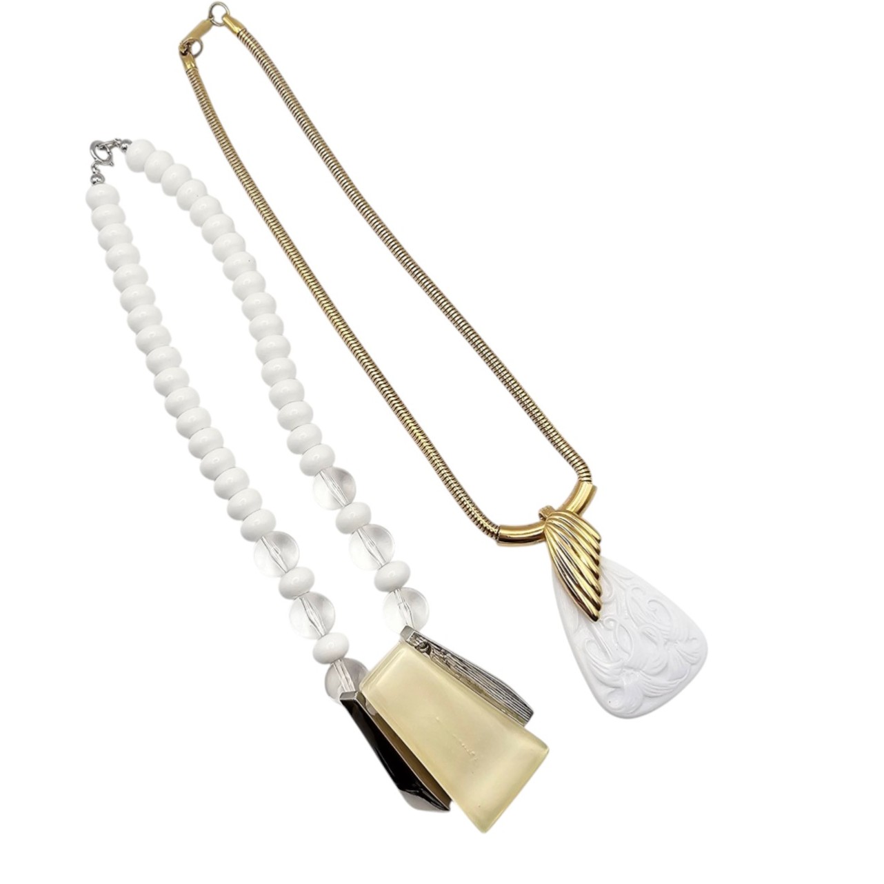 Lot 2 Gold Tone White Necklaces