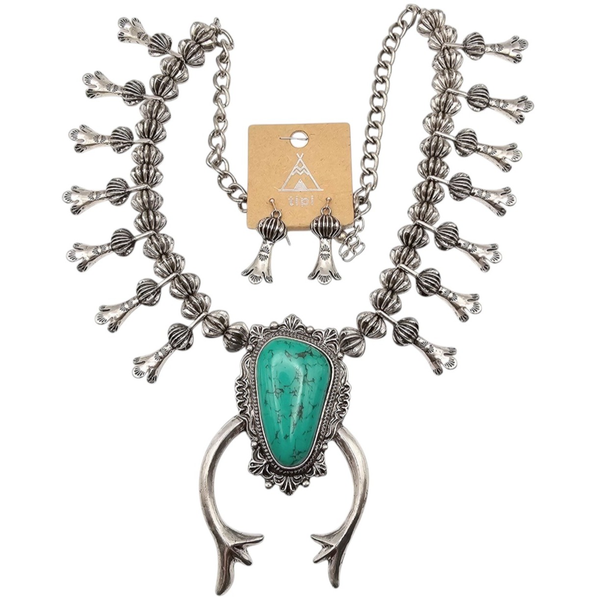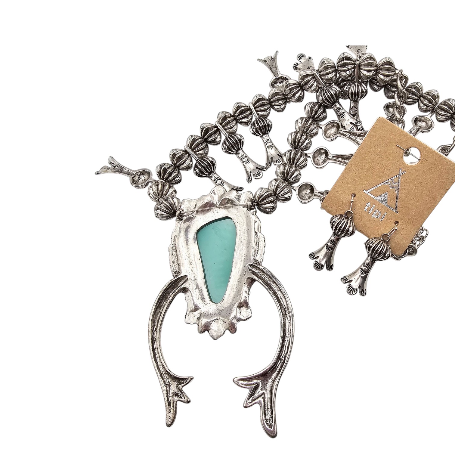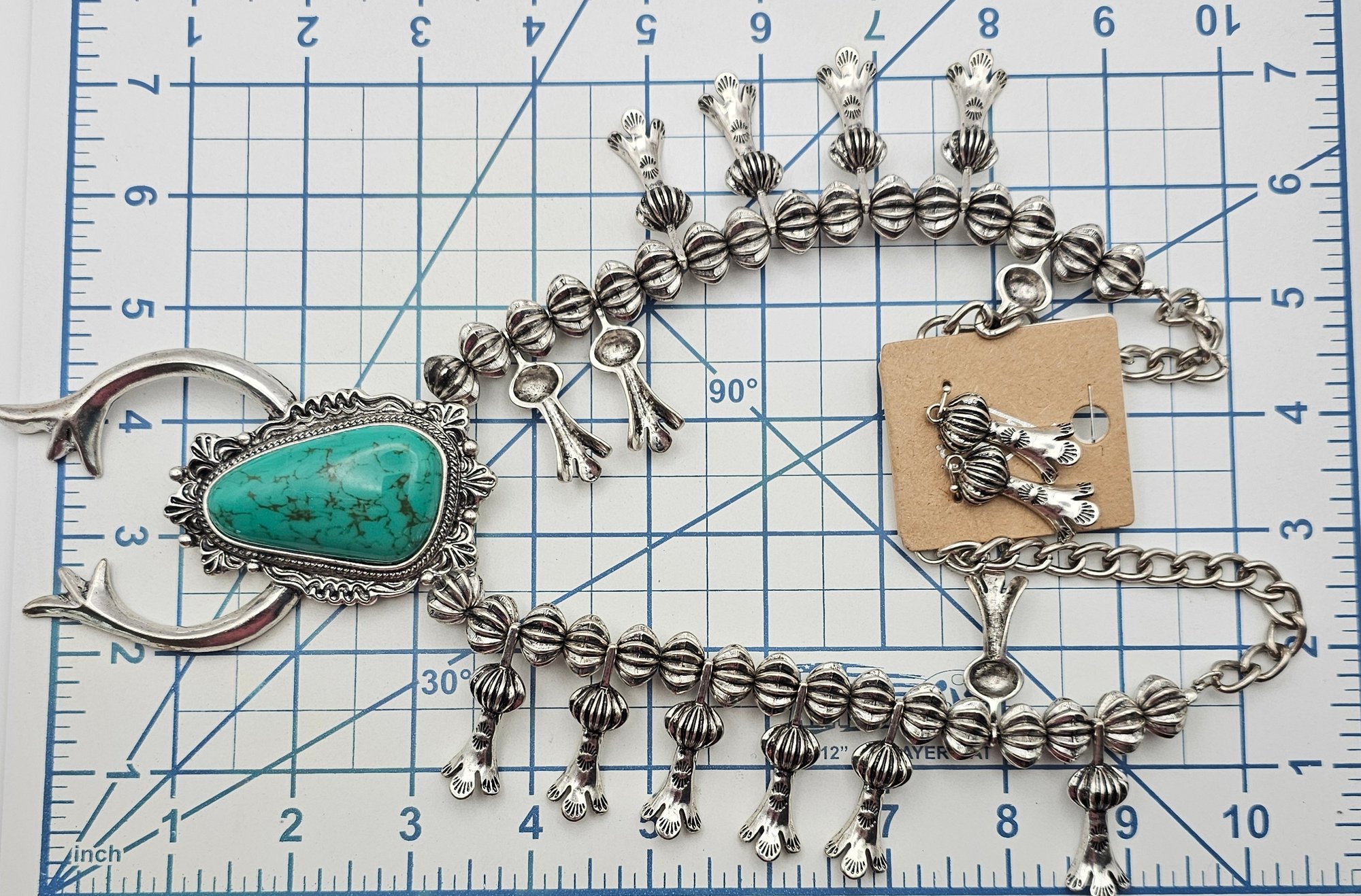 Faux Turquoise fashion jewelry southwestern squash Blossom Necklace earrings set