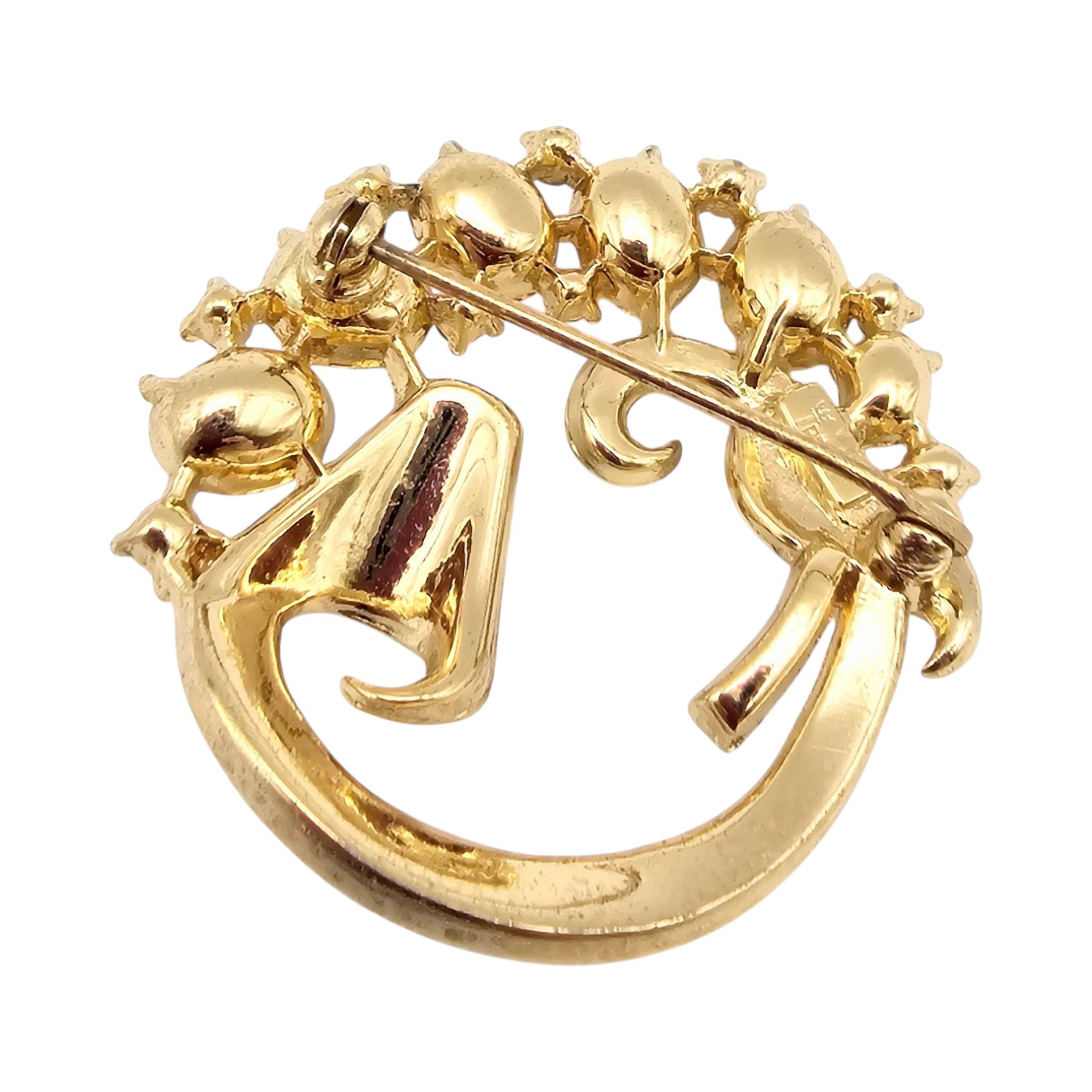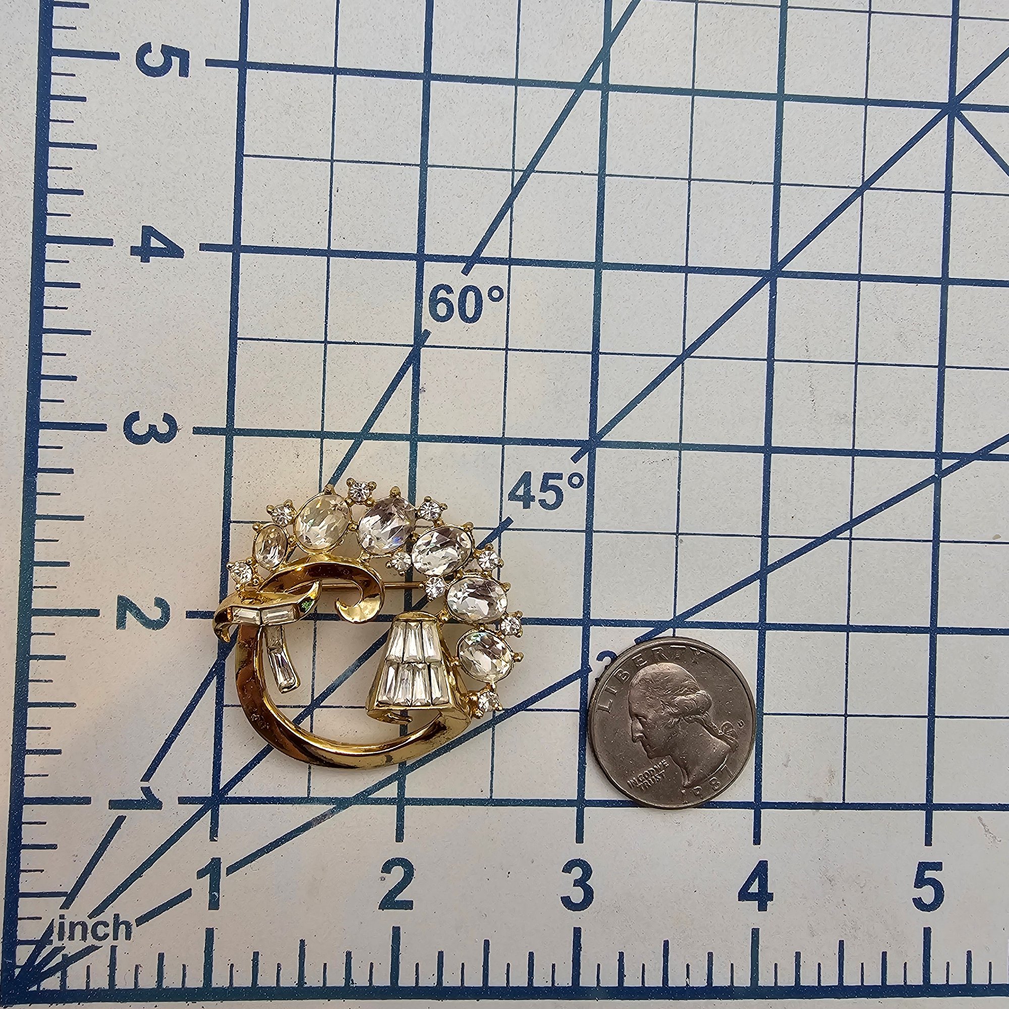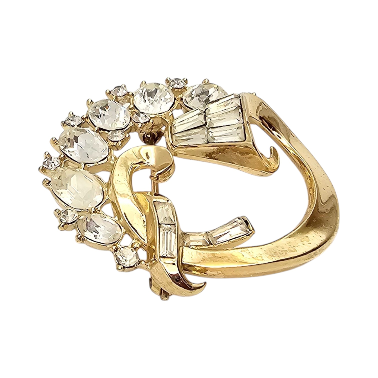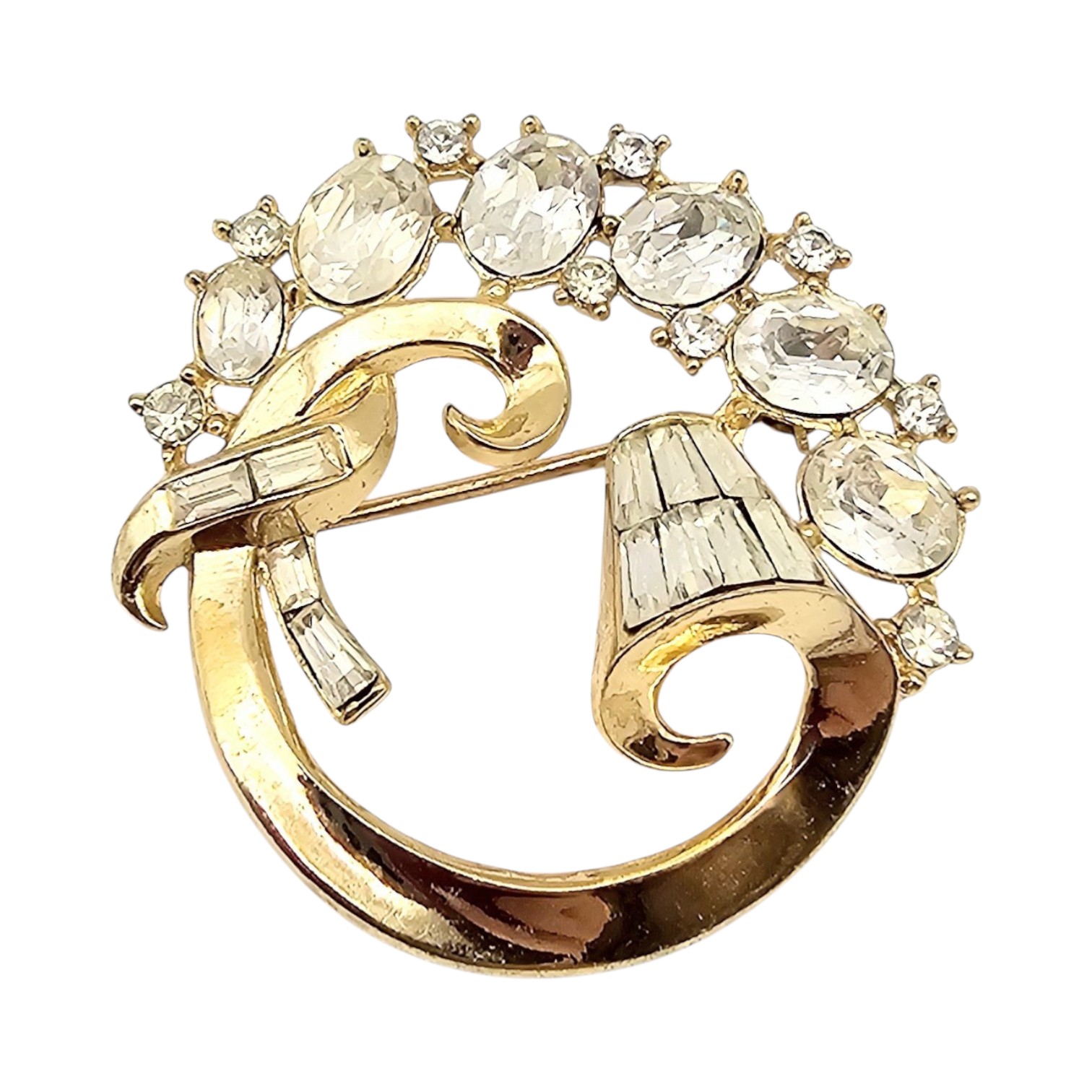 Crown Trifari Rhinestone Gold Tone Circle Brooch