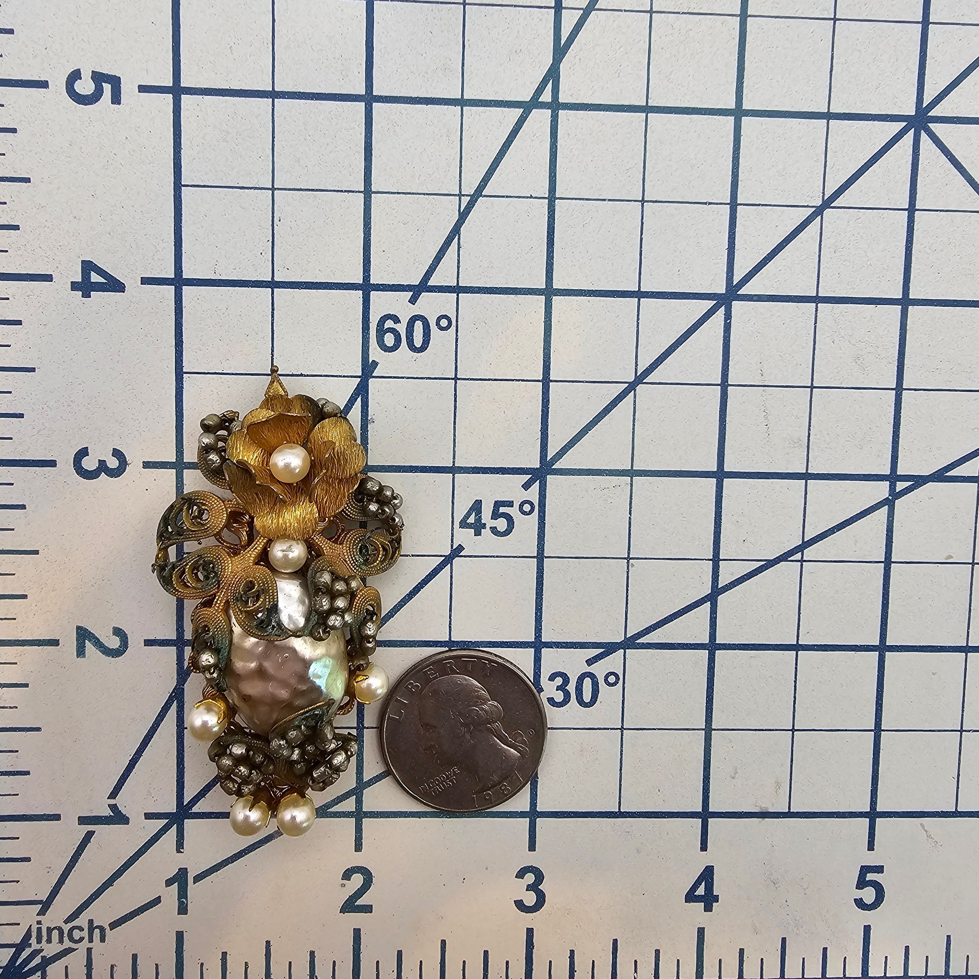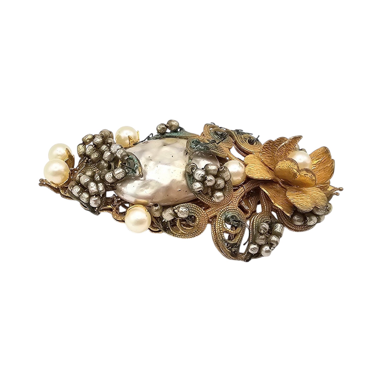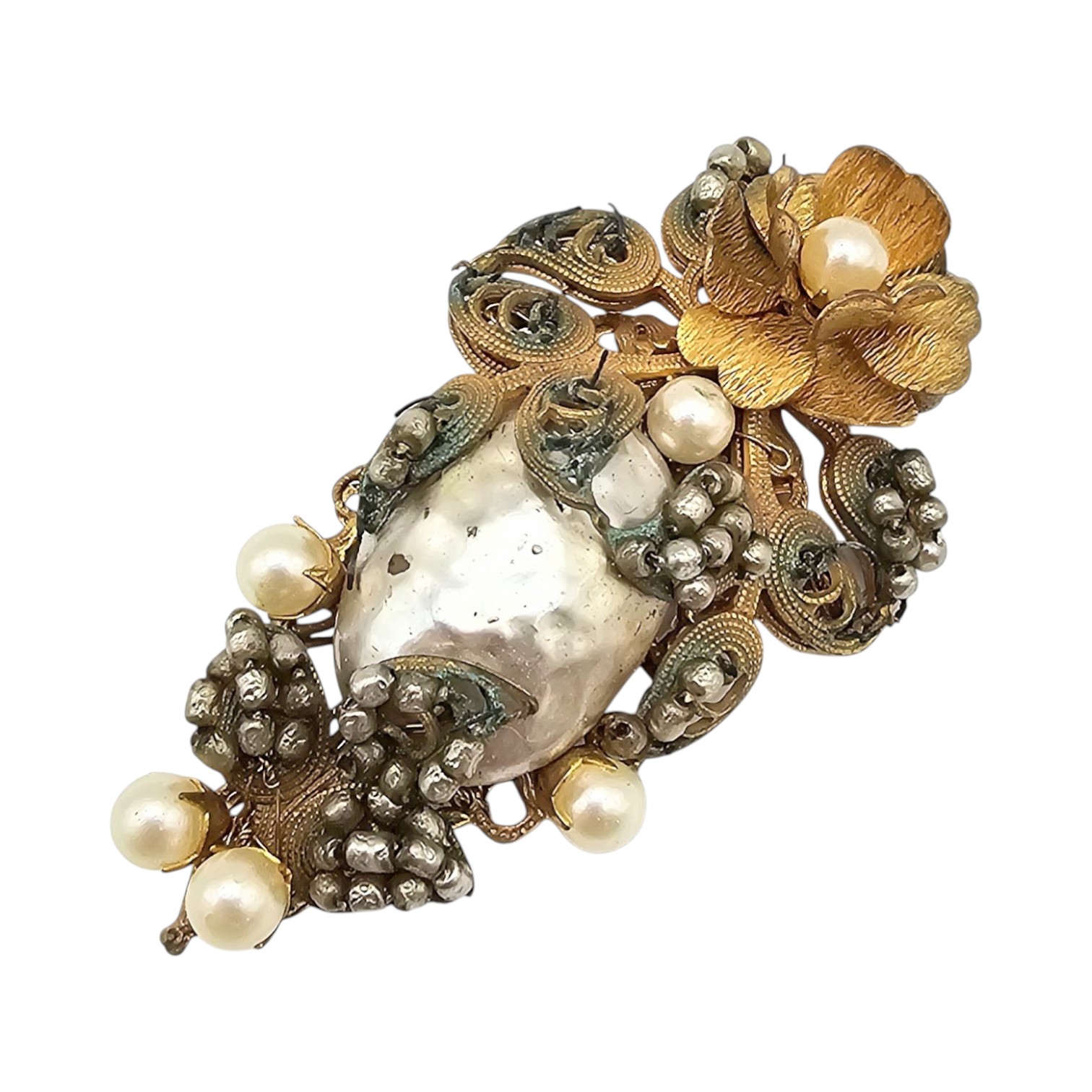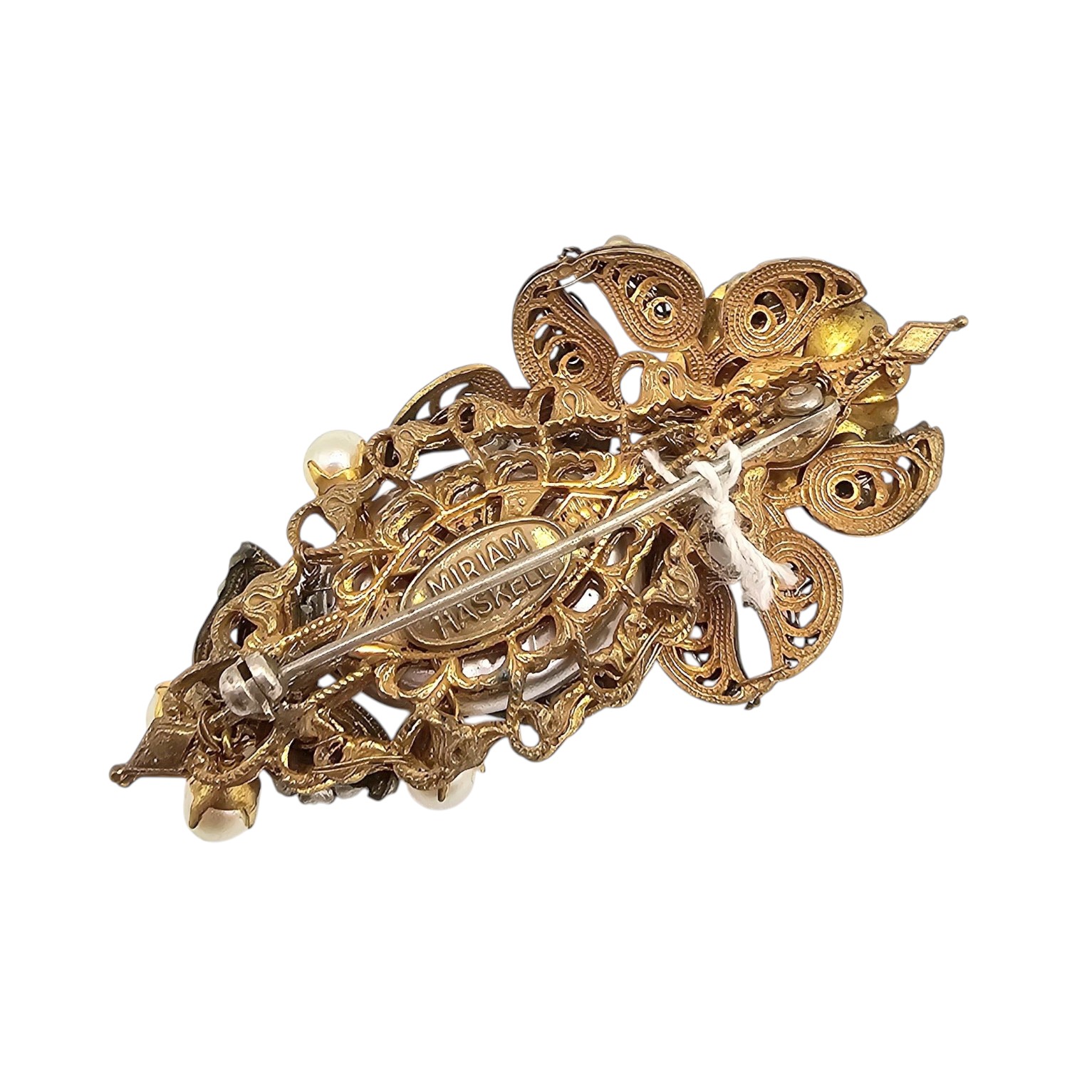 Vintage Miriam Haskell Faux Pearl Gold Tone Oval Brooch