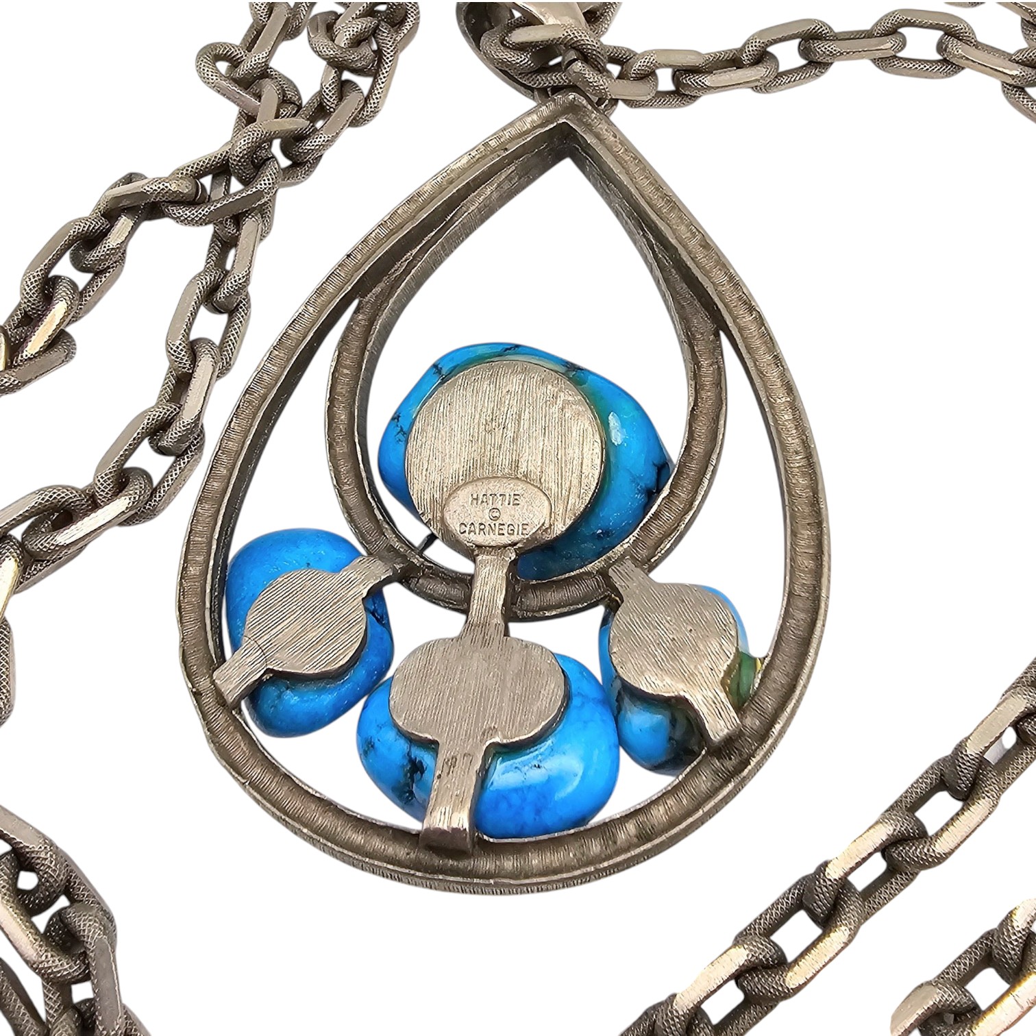 Hattie Carnegie Vintage Faux Turquoise Silver Tone Necklace