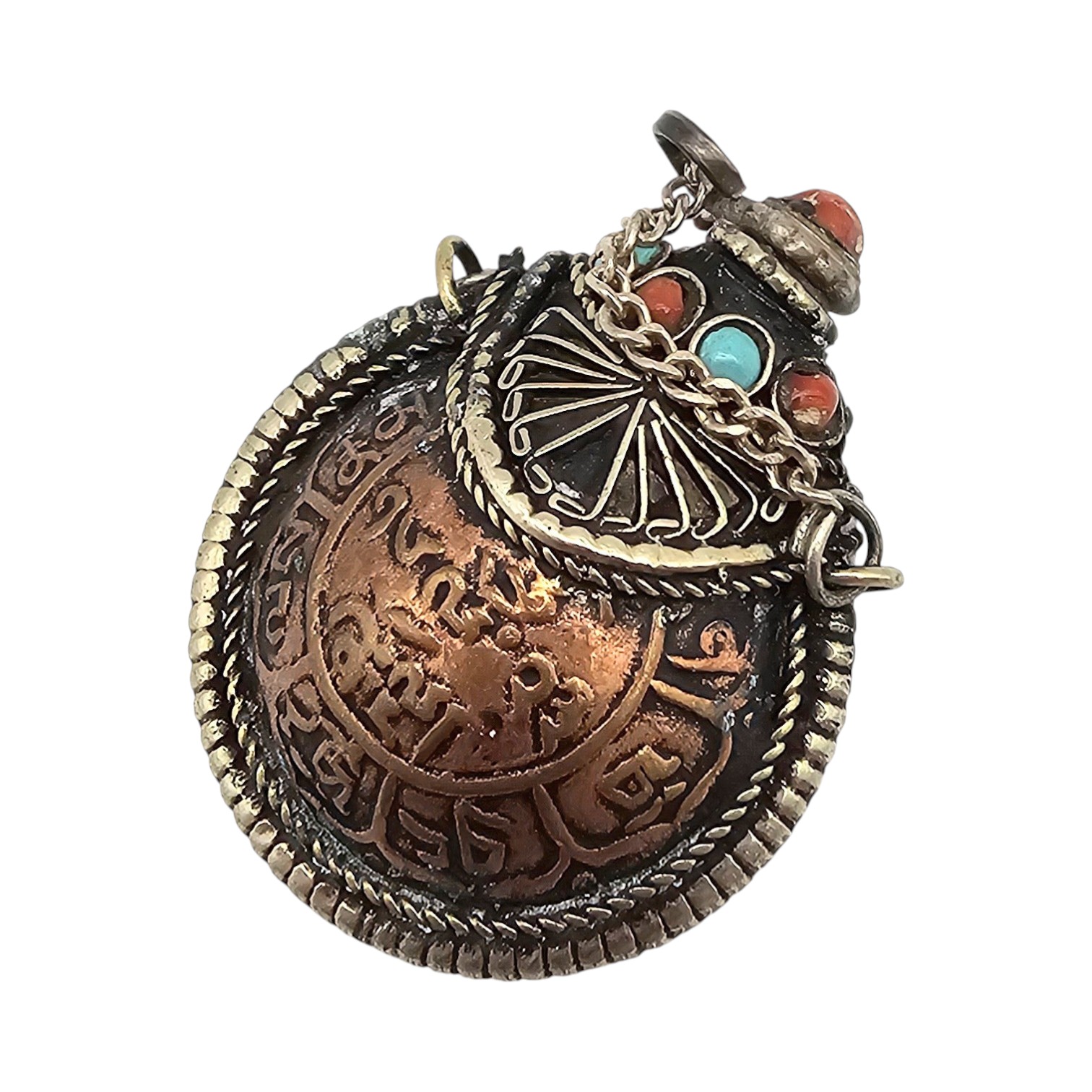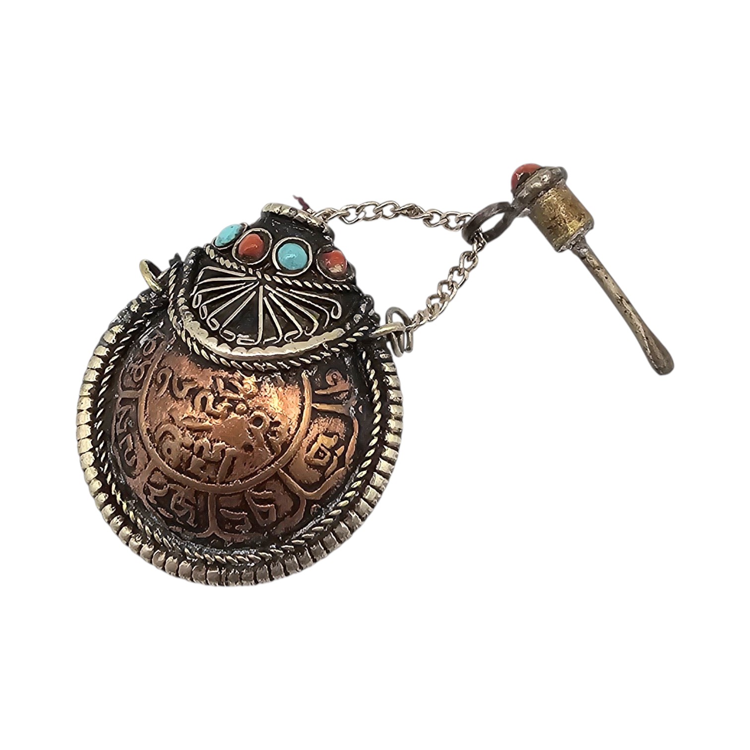 Tibetan Turquoise Coral Silver Plate Copper Snuff Bottle