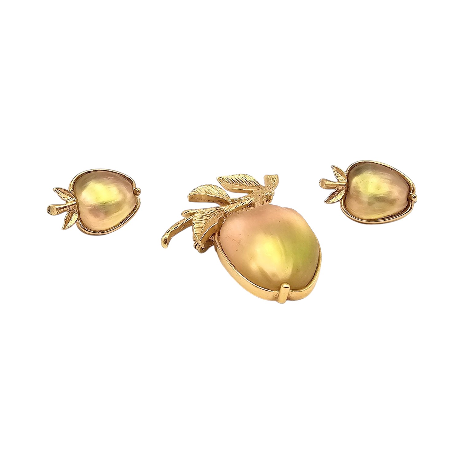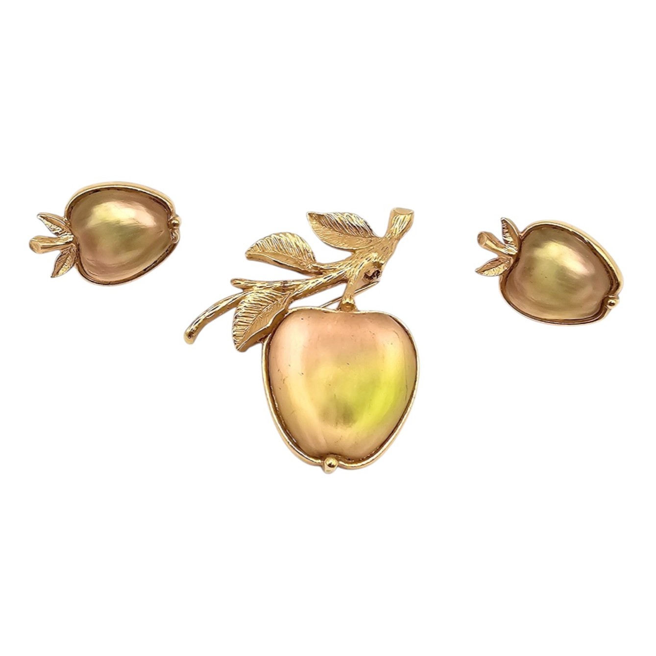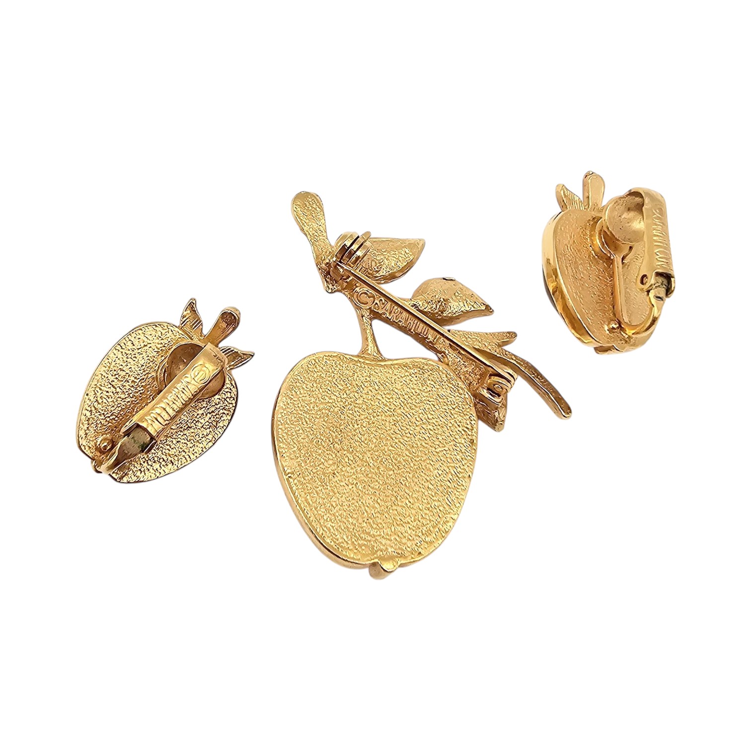 Sarah Coventry Gold Tone Apple Brooch Earrings Set