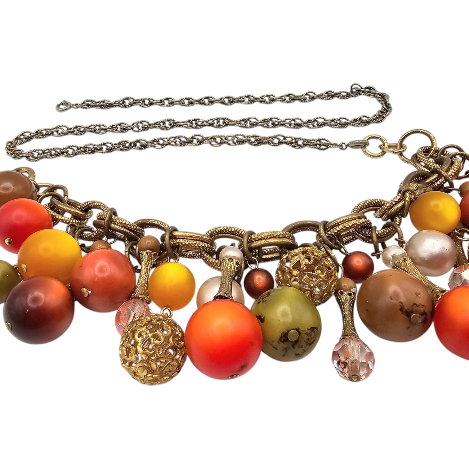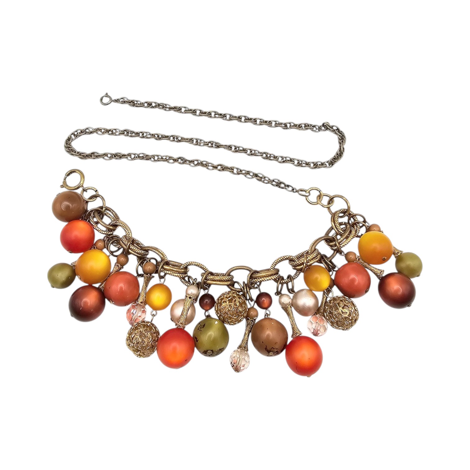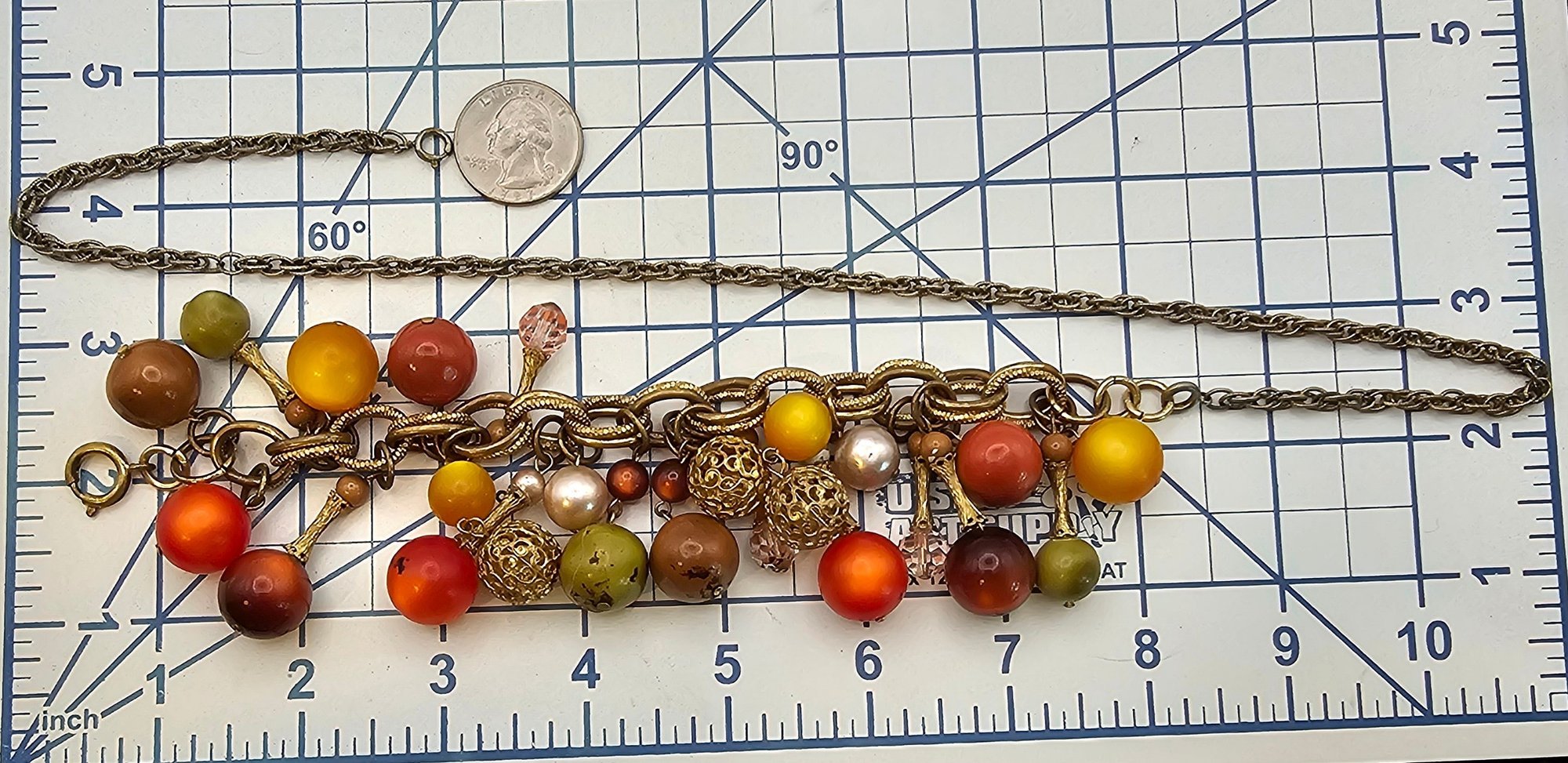 Vintage Germany Plastic/Lucite Gold Tone Bead Necklace