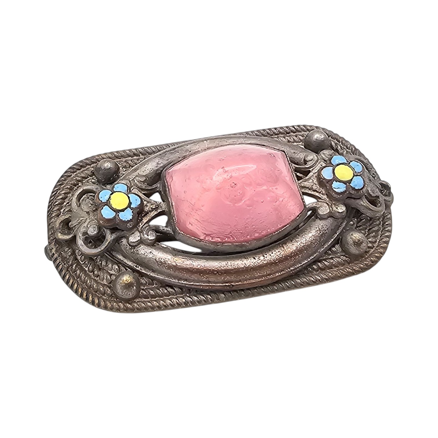 Czech Vintage Pink Glass Rhinestone Brooch