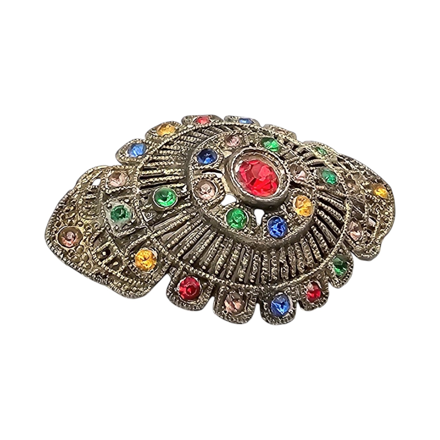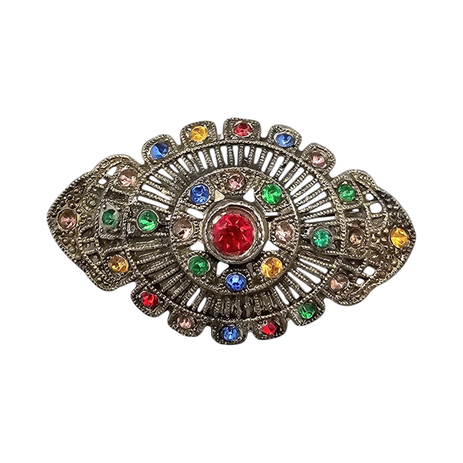 Czech Vintage Rhinestone Open Work Brooch
