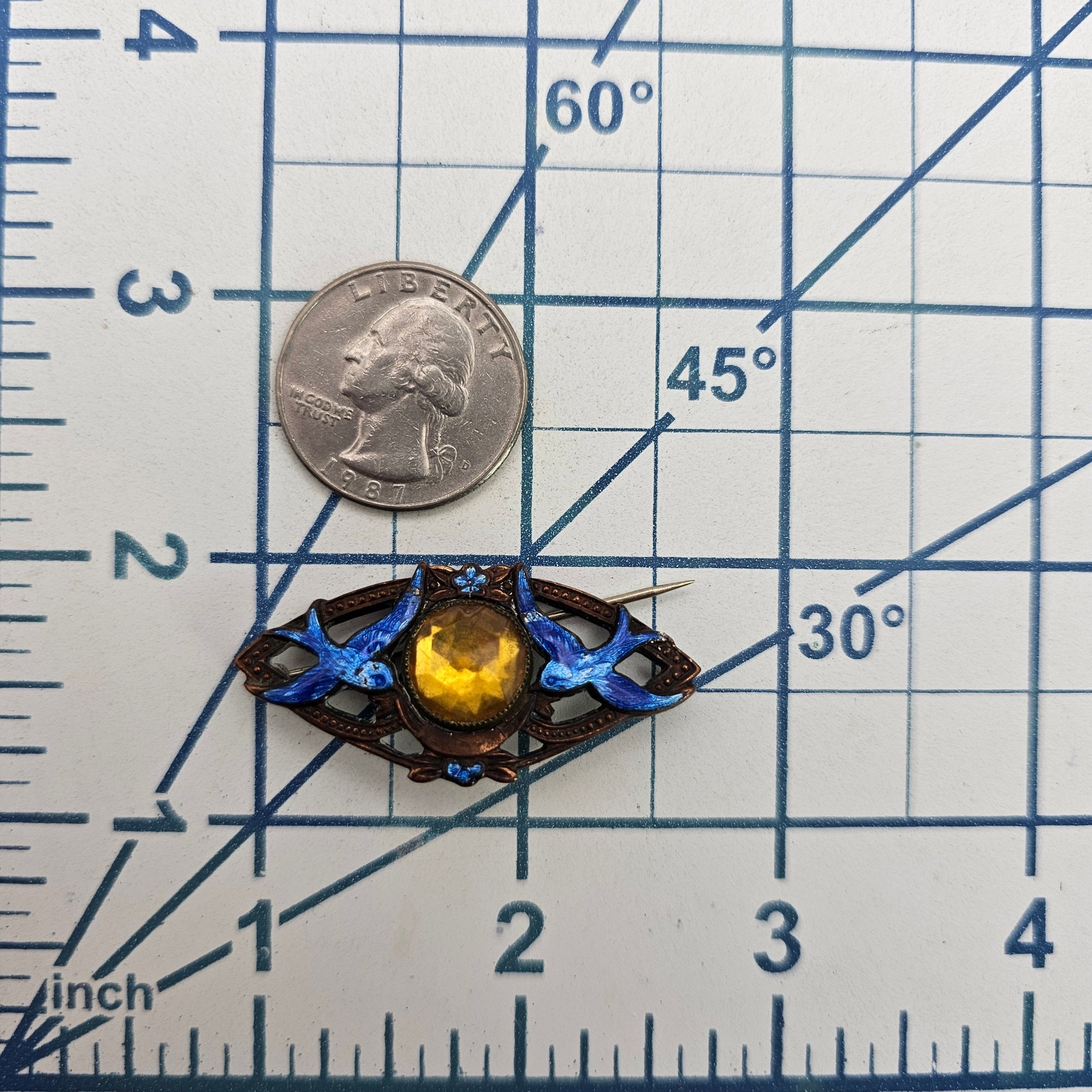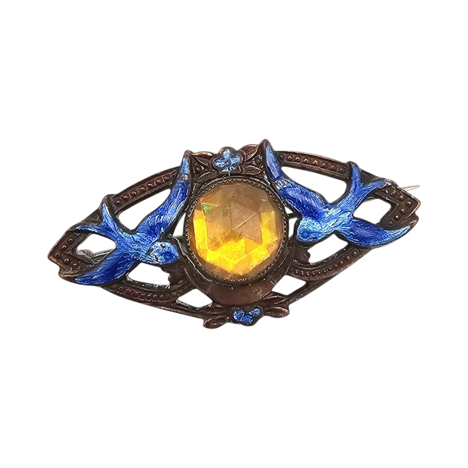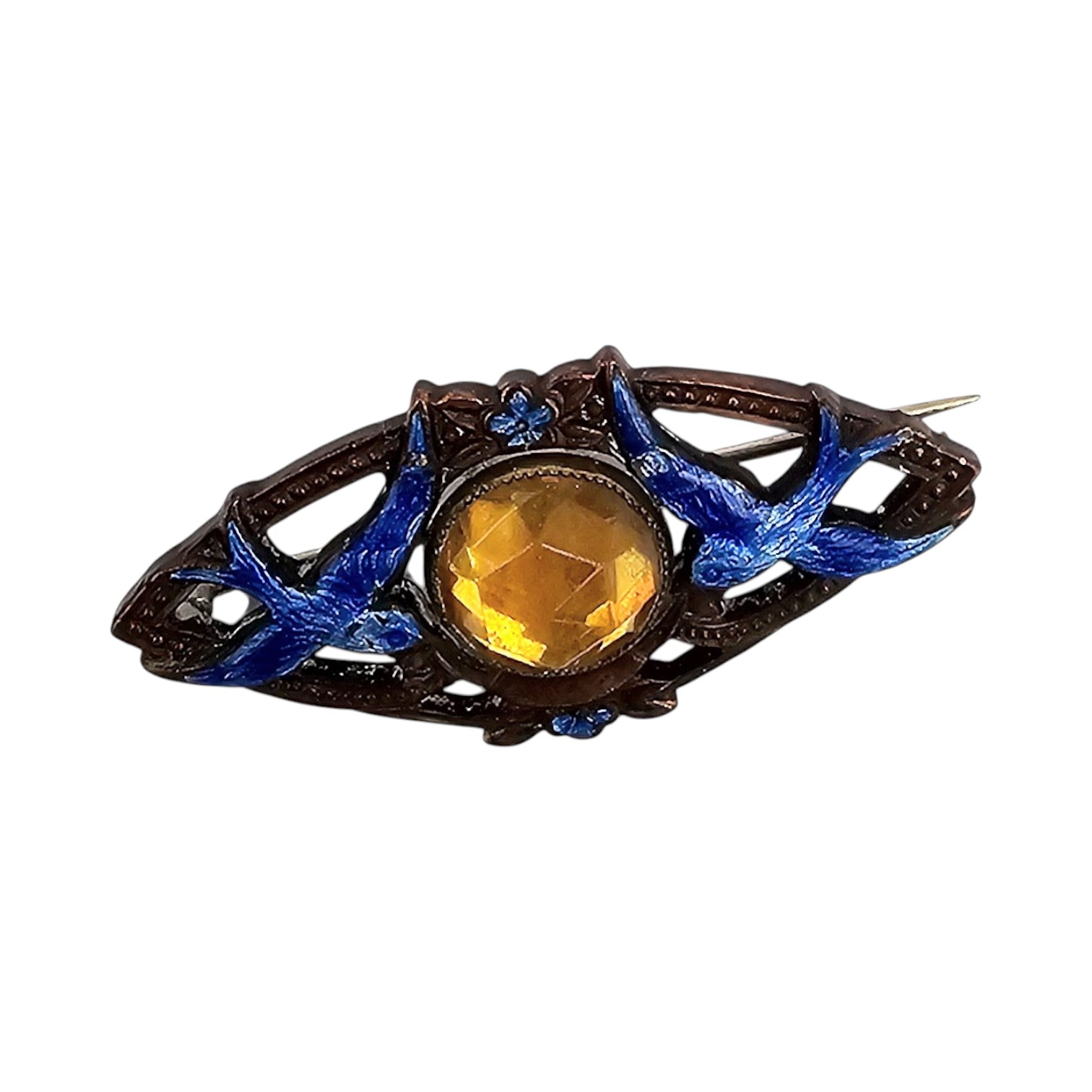 Czech Vintage Enamel Rhinestone Bird Brooch