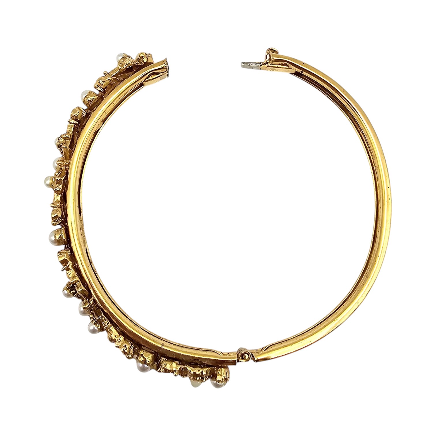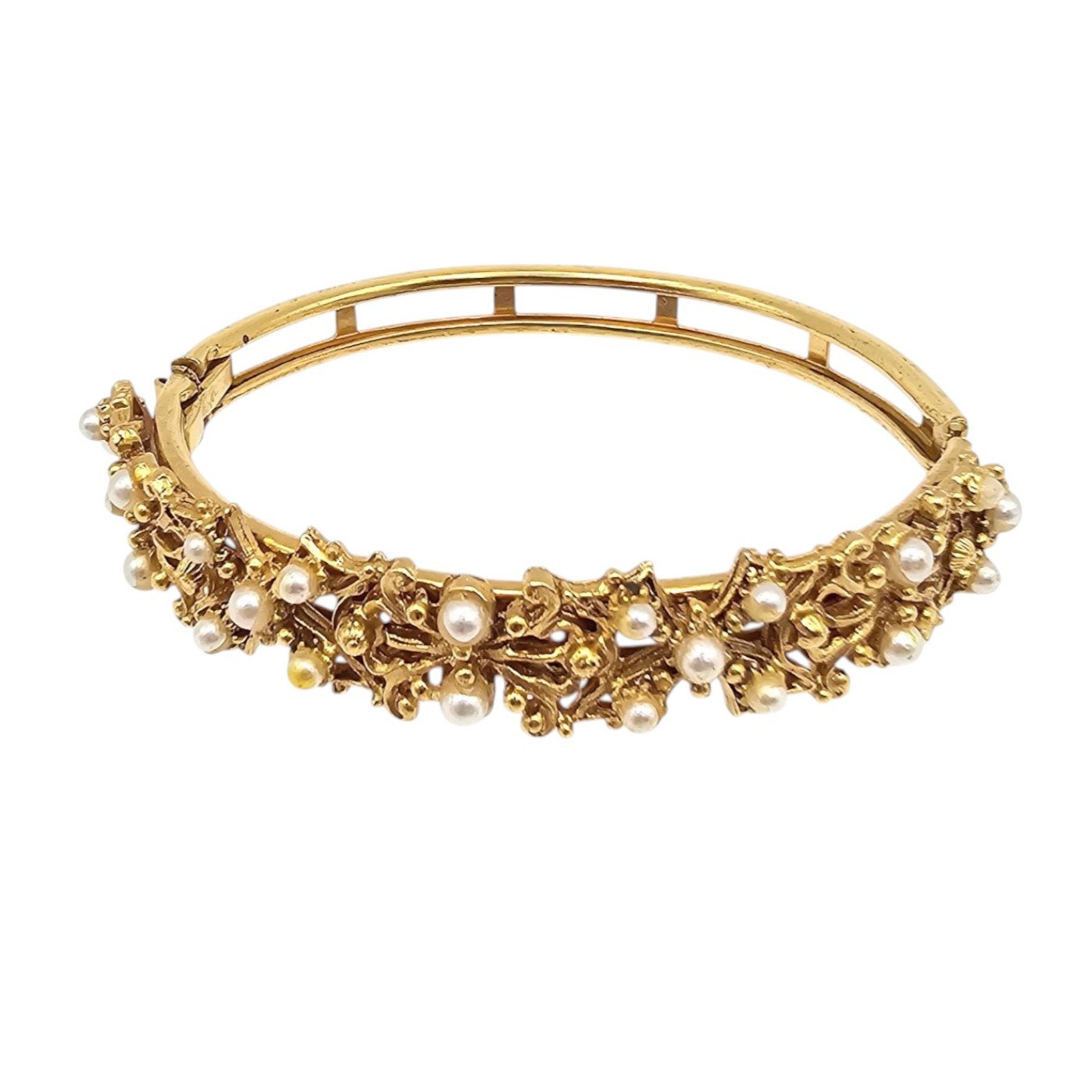 Florenza Vintage Faux Pearl Gold Tone Hinged Bangle Bracelet