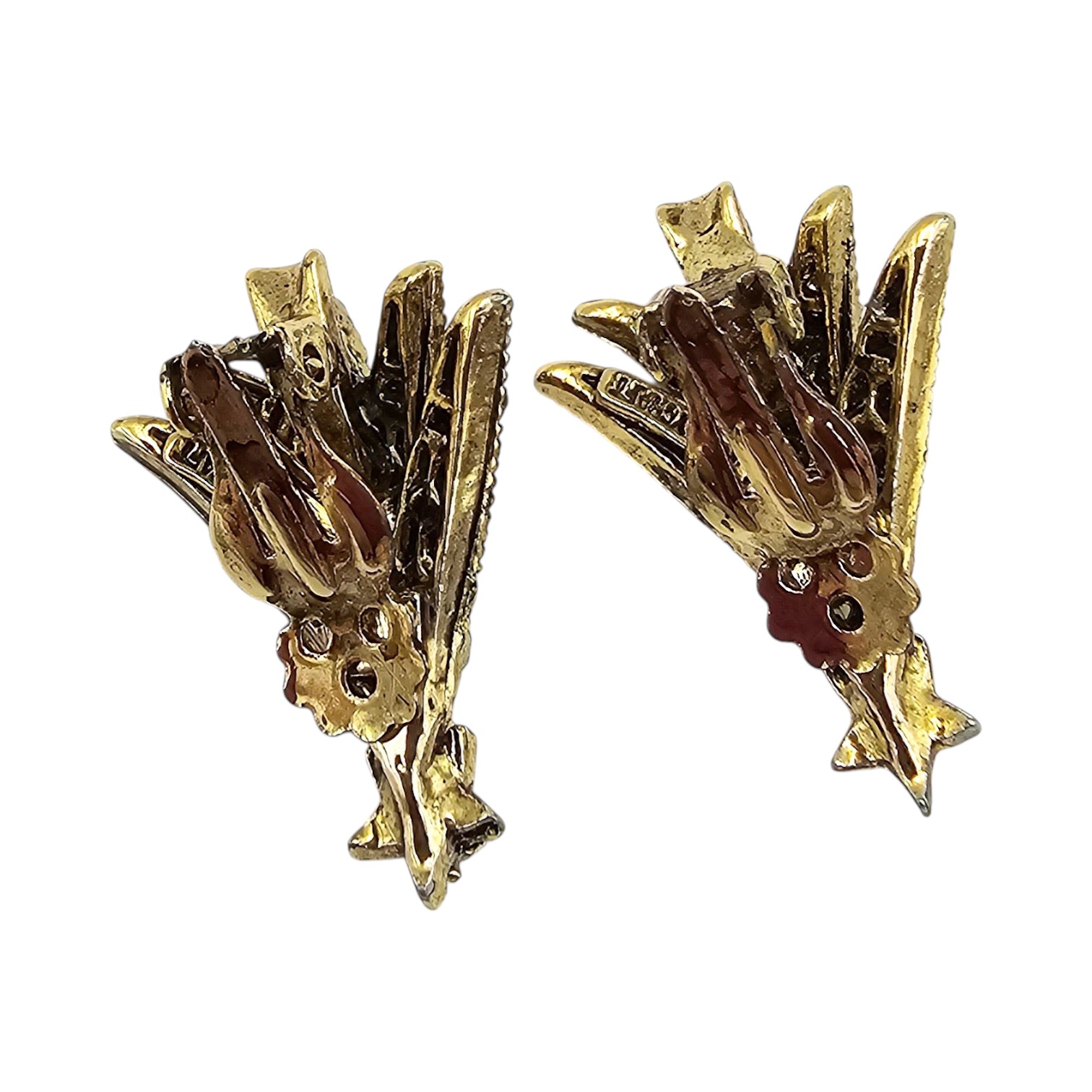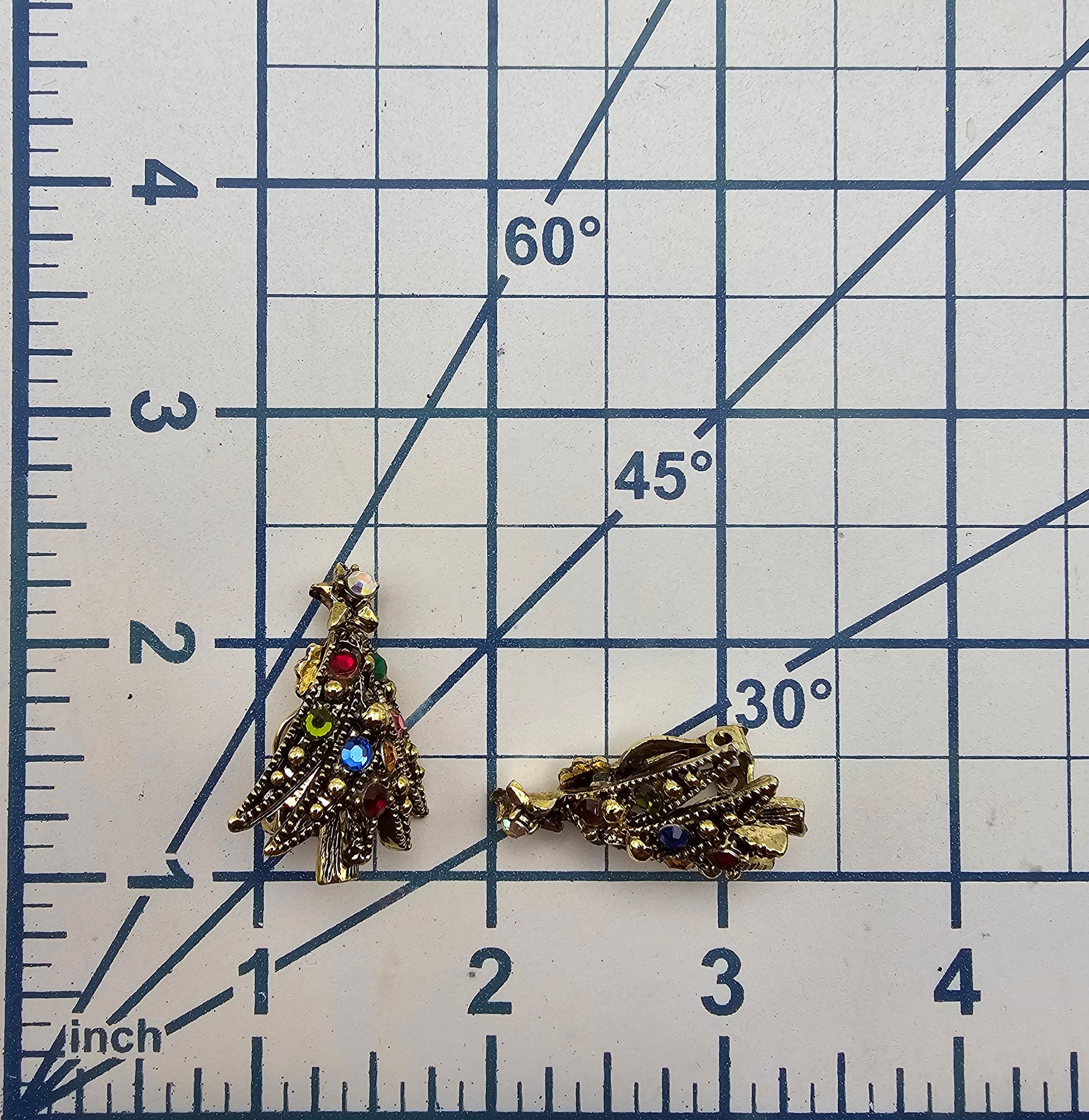 Hollycraft Colorful Rhinestone Gold Tone Christmas Tree Earrings