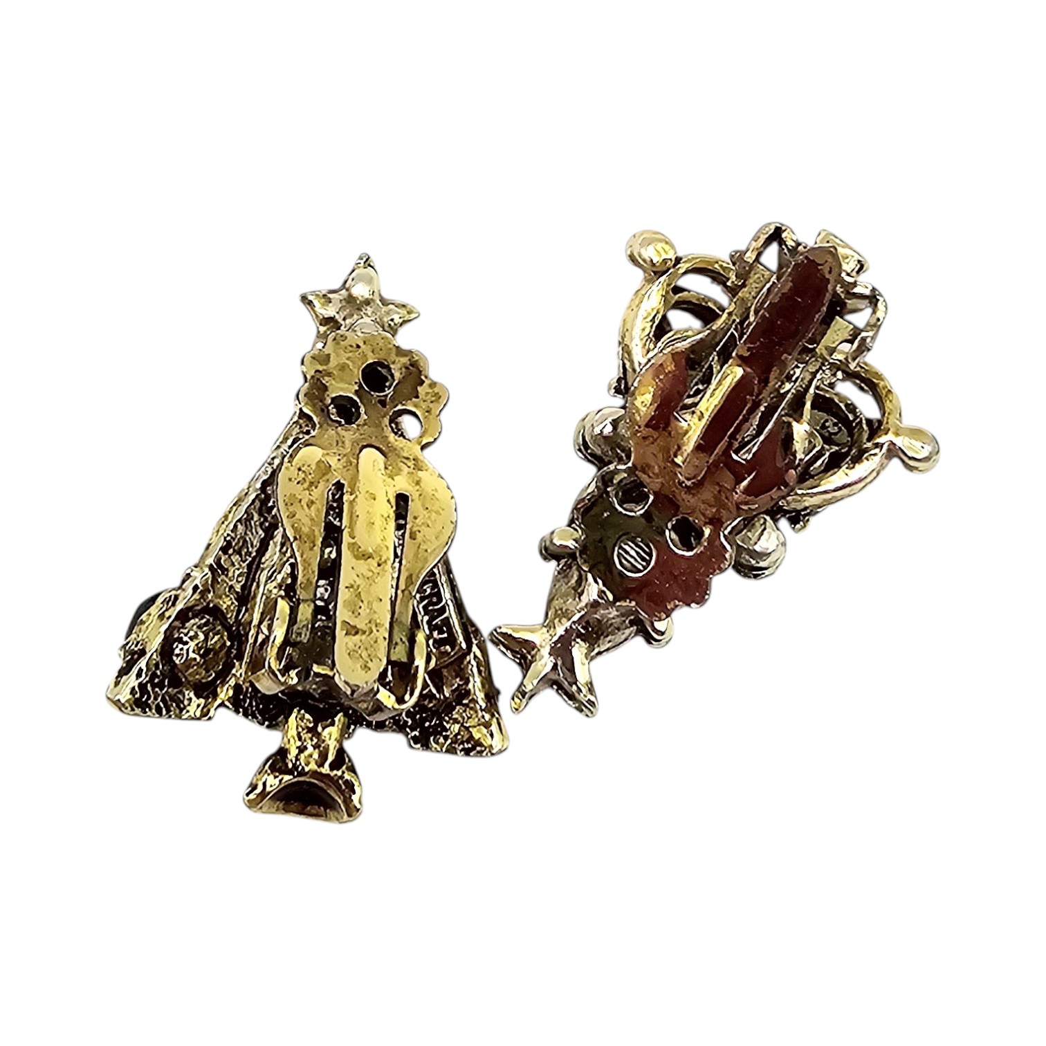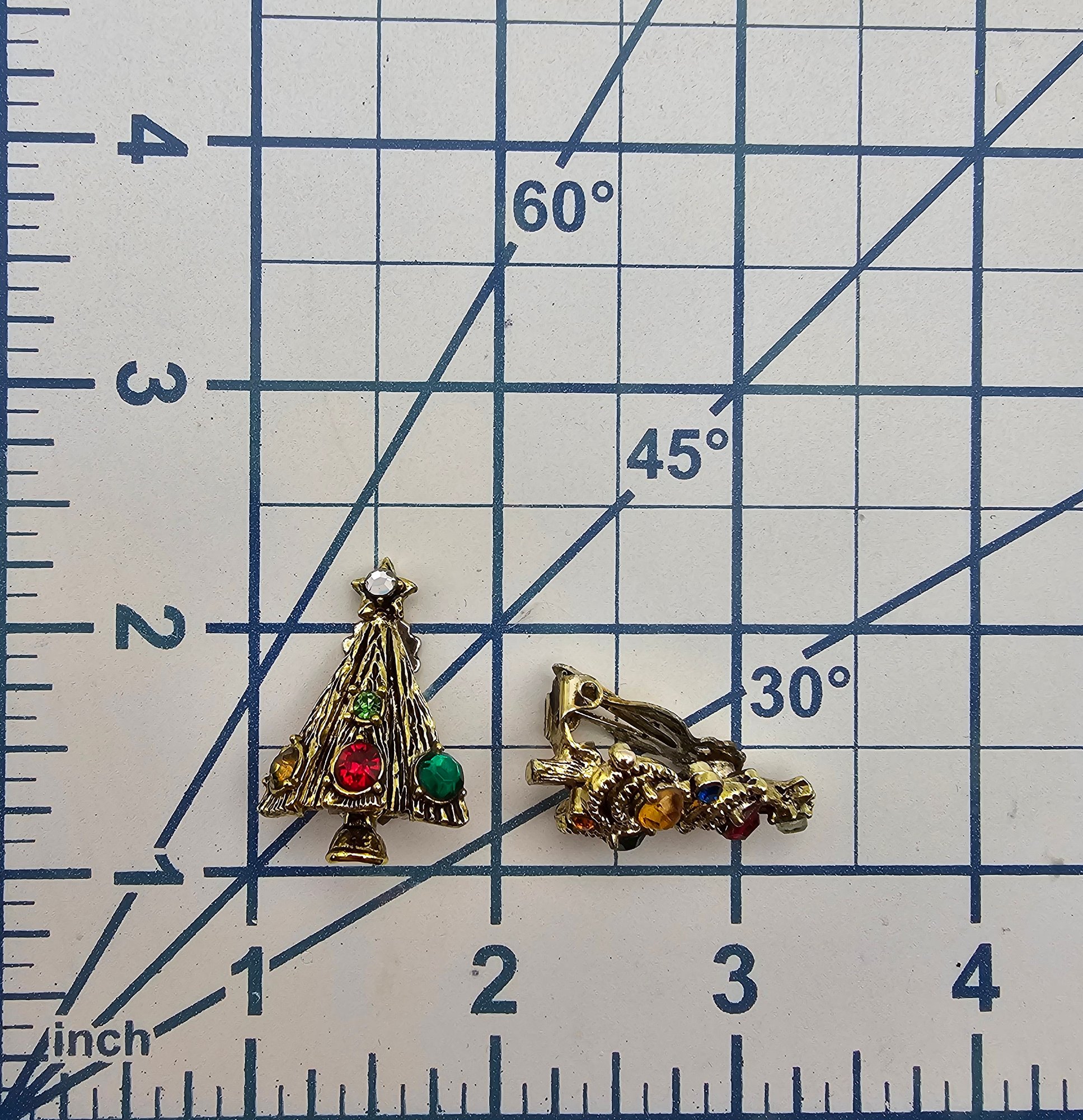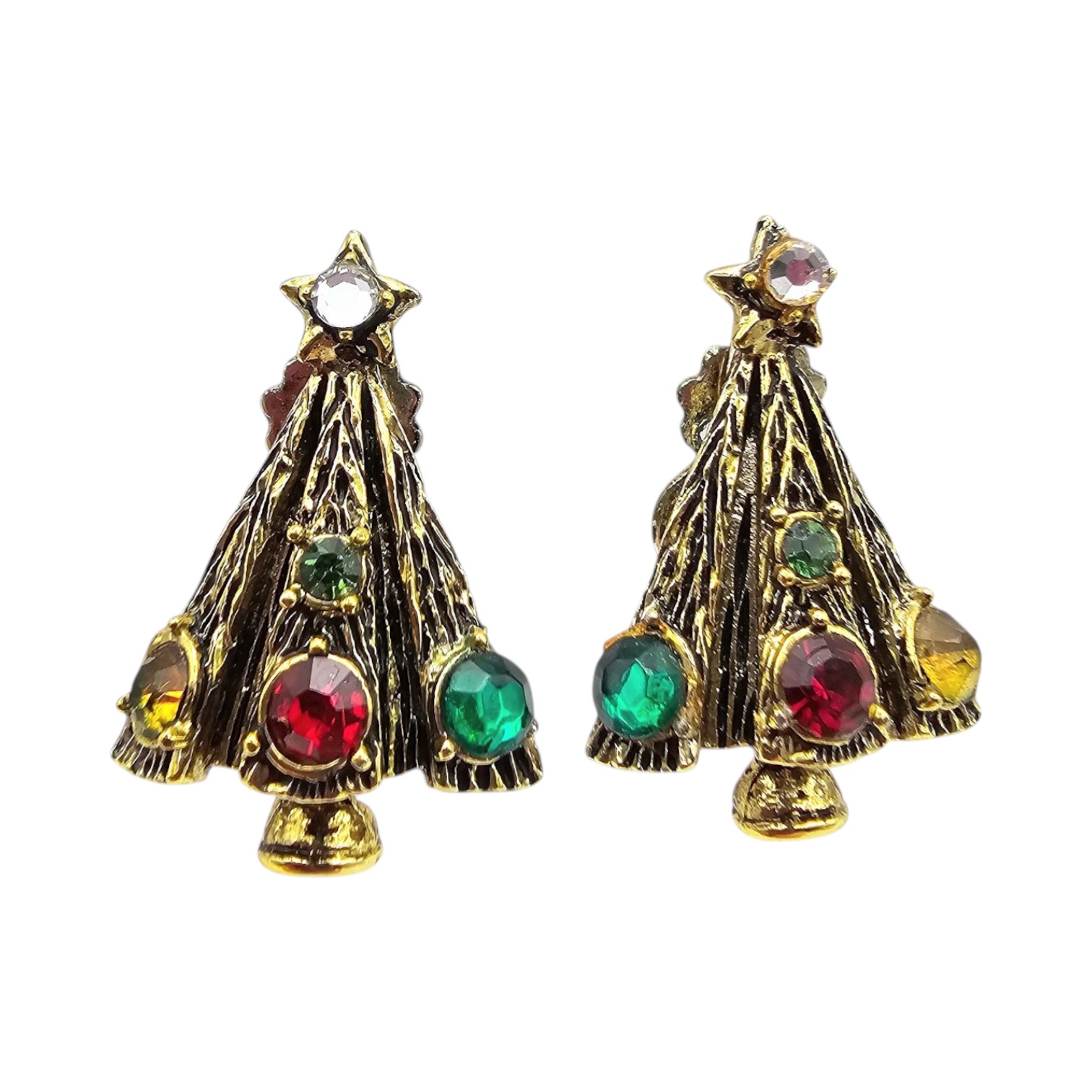 Hollycraft Bright Rhinestone Gold Tone Christmas Tree Earrings