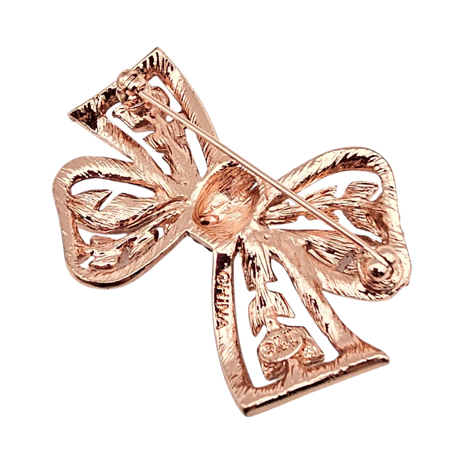 Kenneth J Lane Pink Rhinestone Gold Tone Bow Brooch