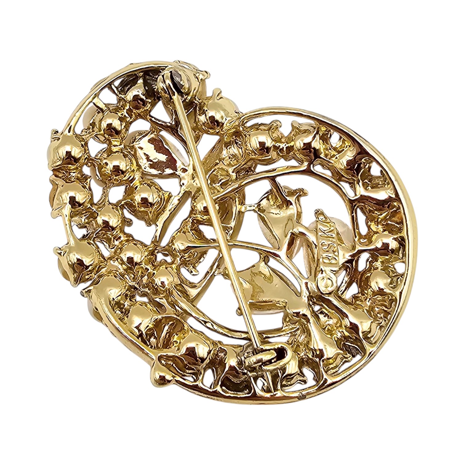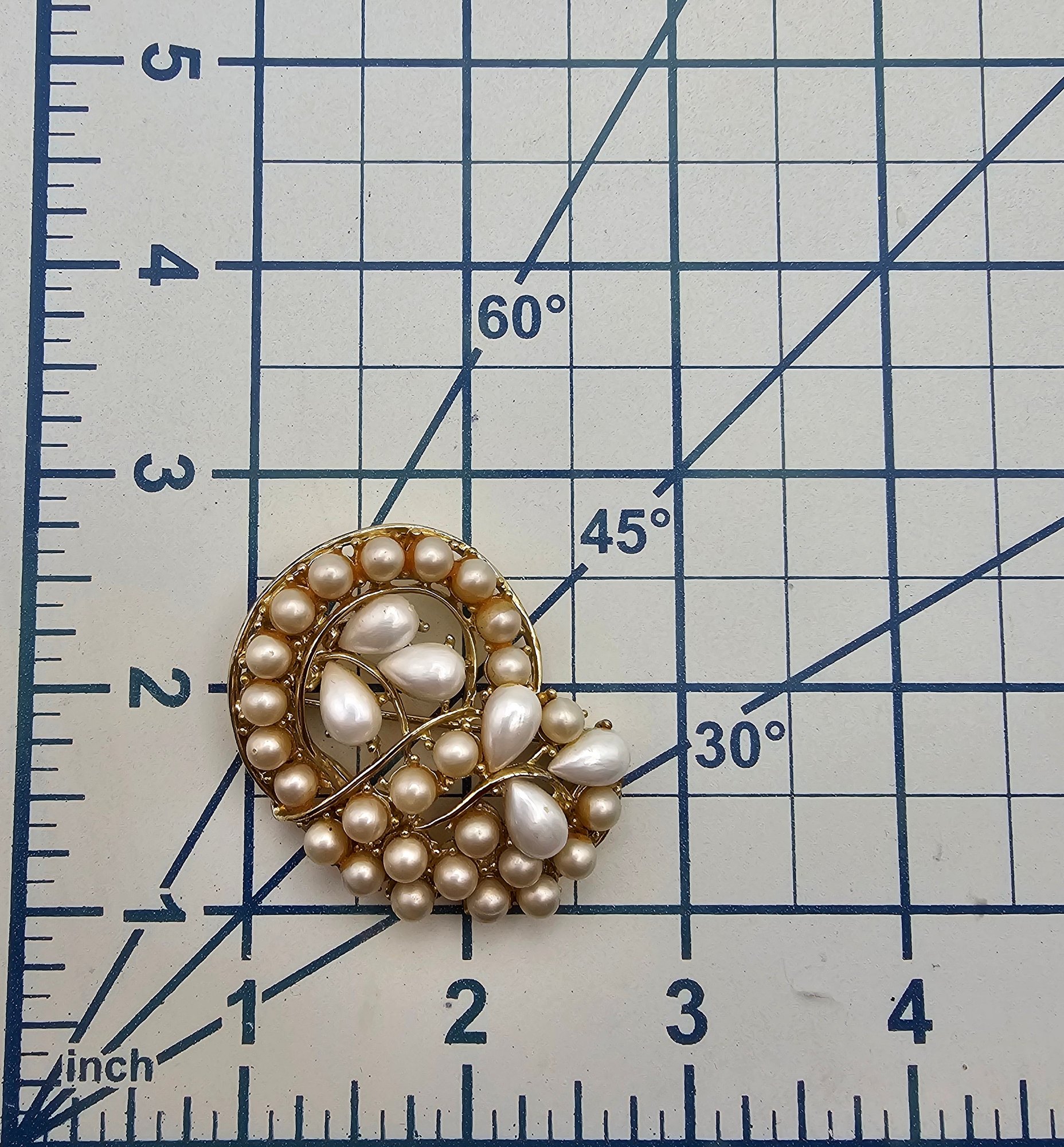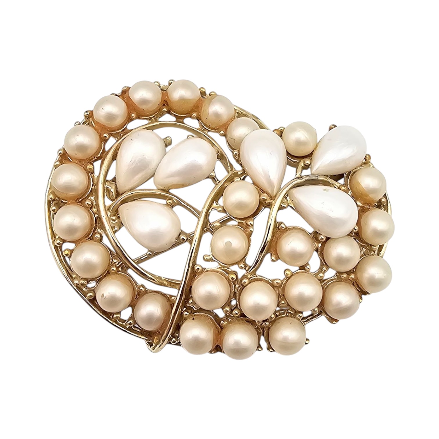 BSK Faux Pearl Gold Tone Paisley Brooch