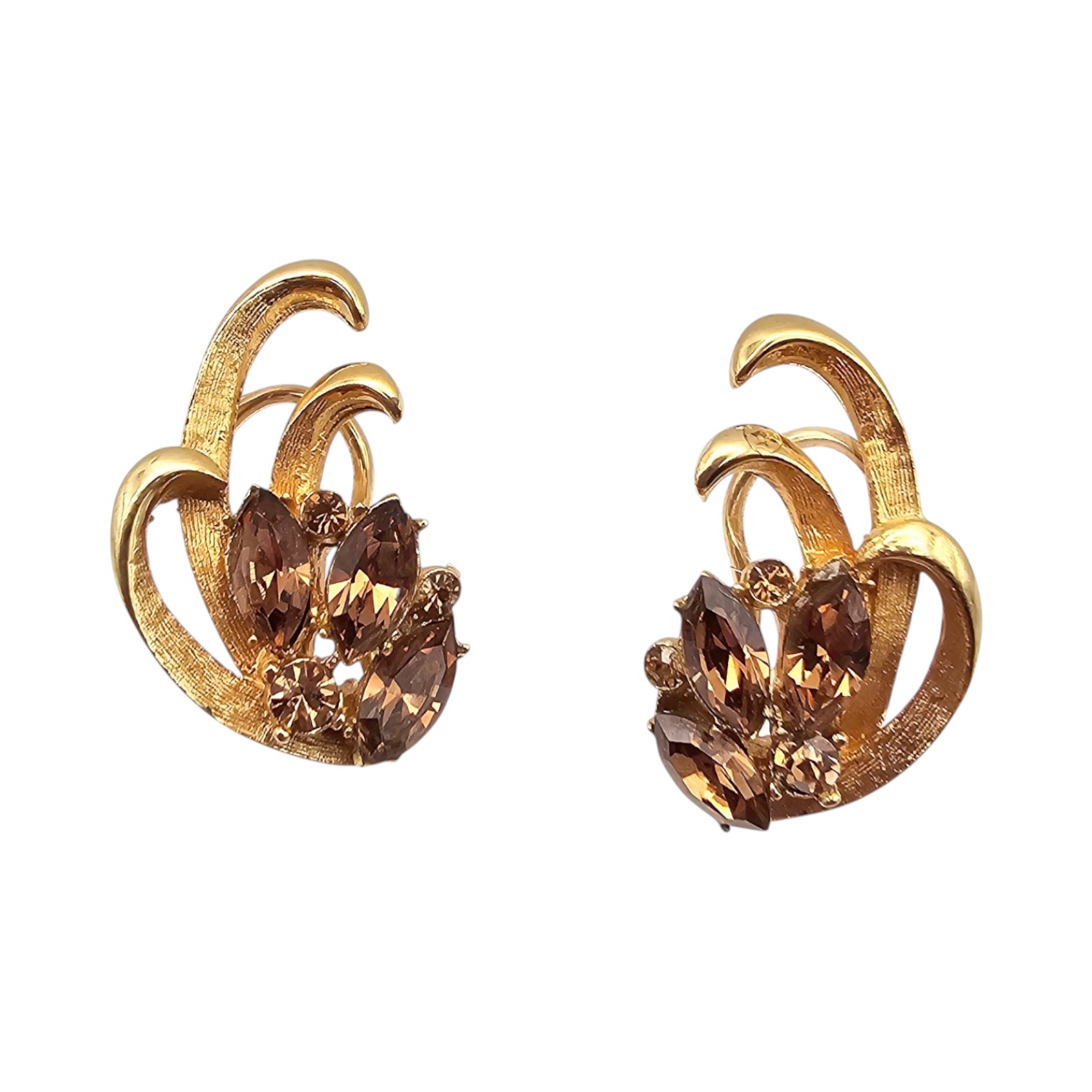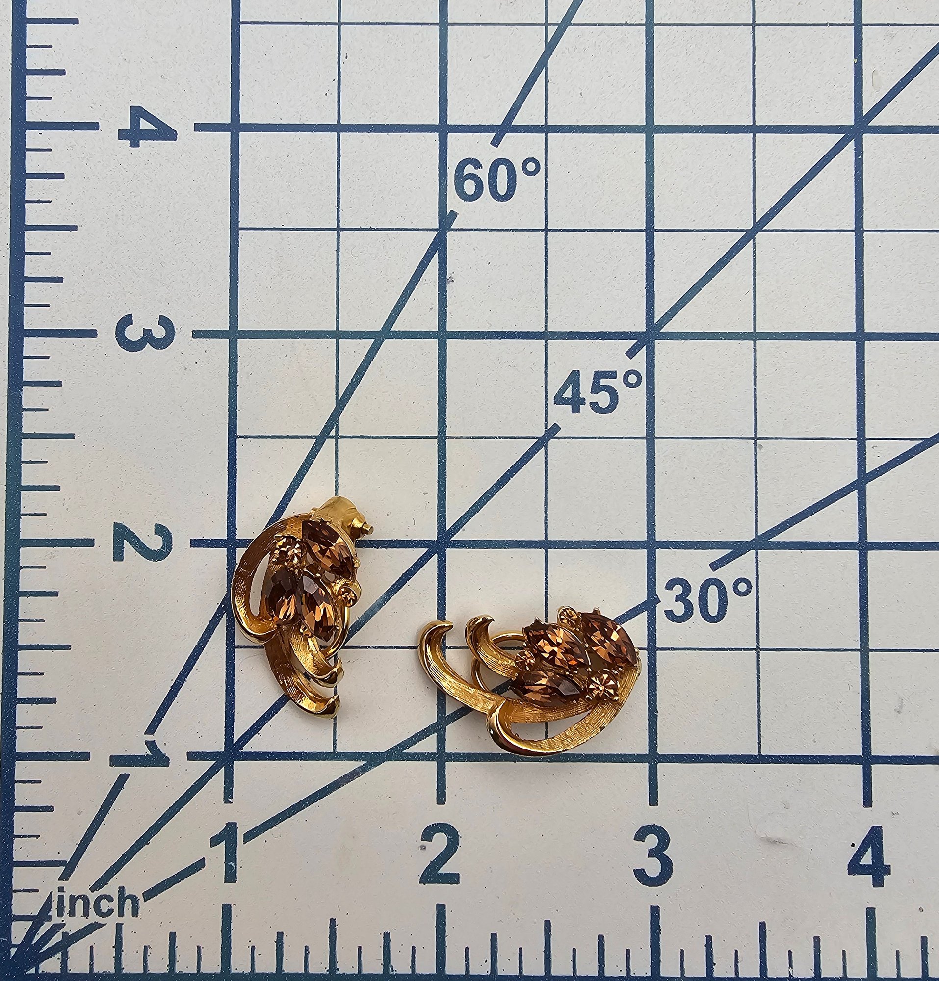 BSK Amber Color Rhinestone Gold Tone Earrings