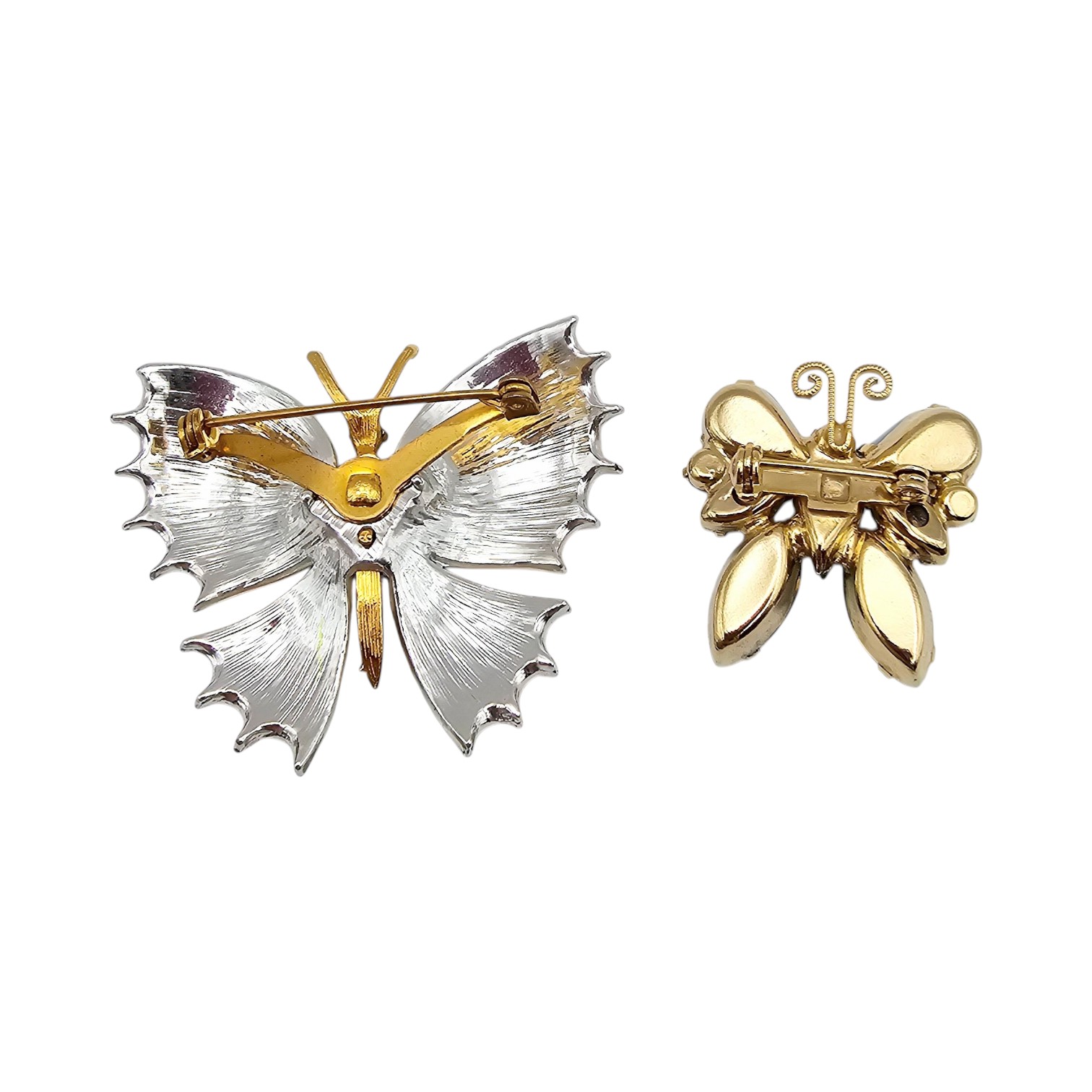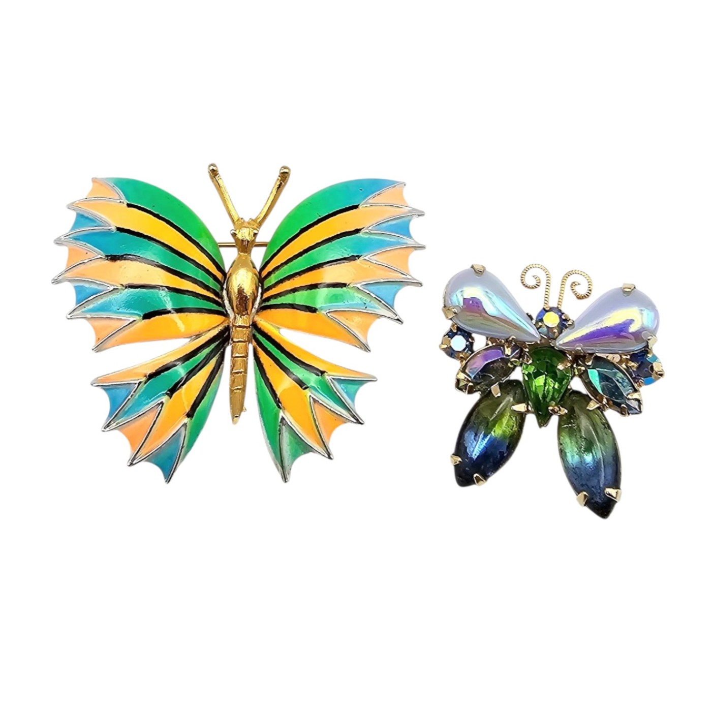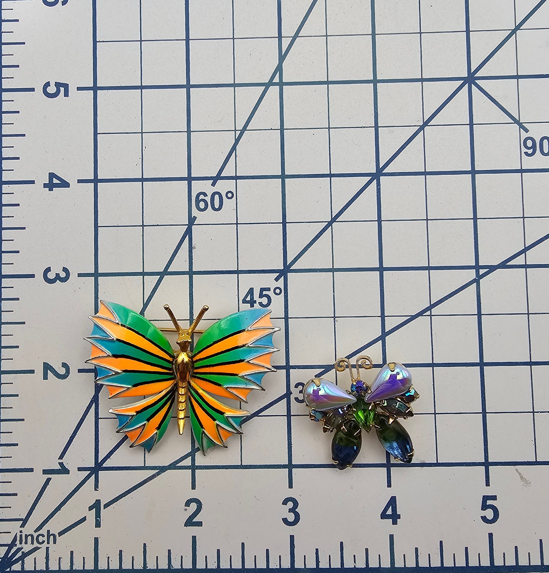 Vintage Lot 2 Rhinestone Enamel Butterfly Brooches