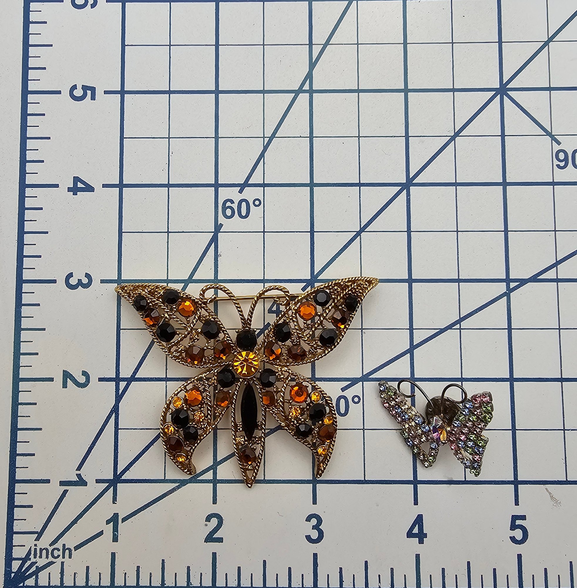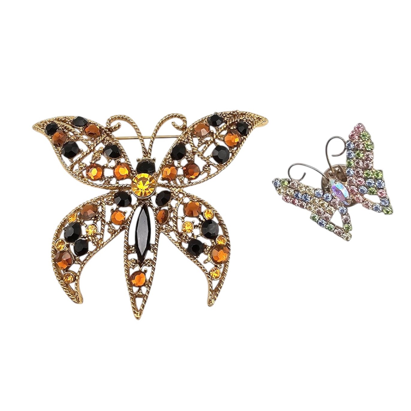 Vintage Lot 2 Rhinestone Butterfly Brooches