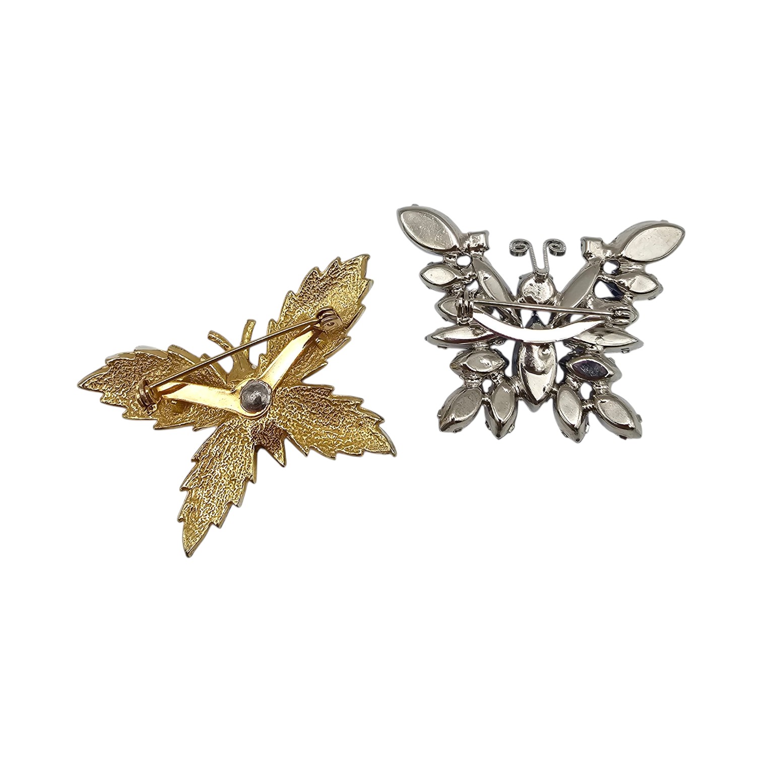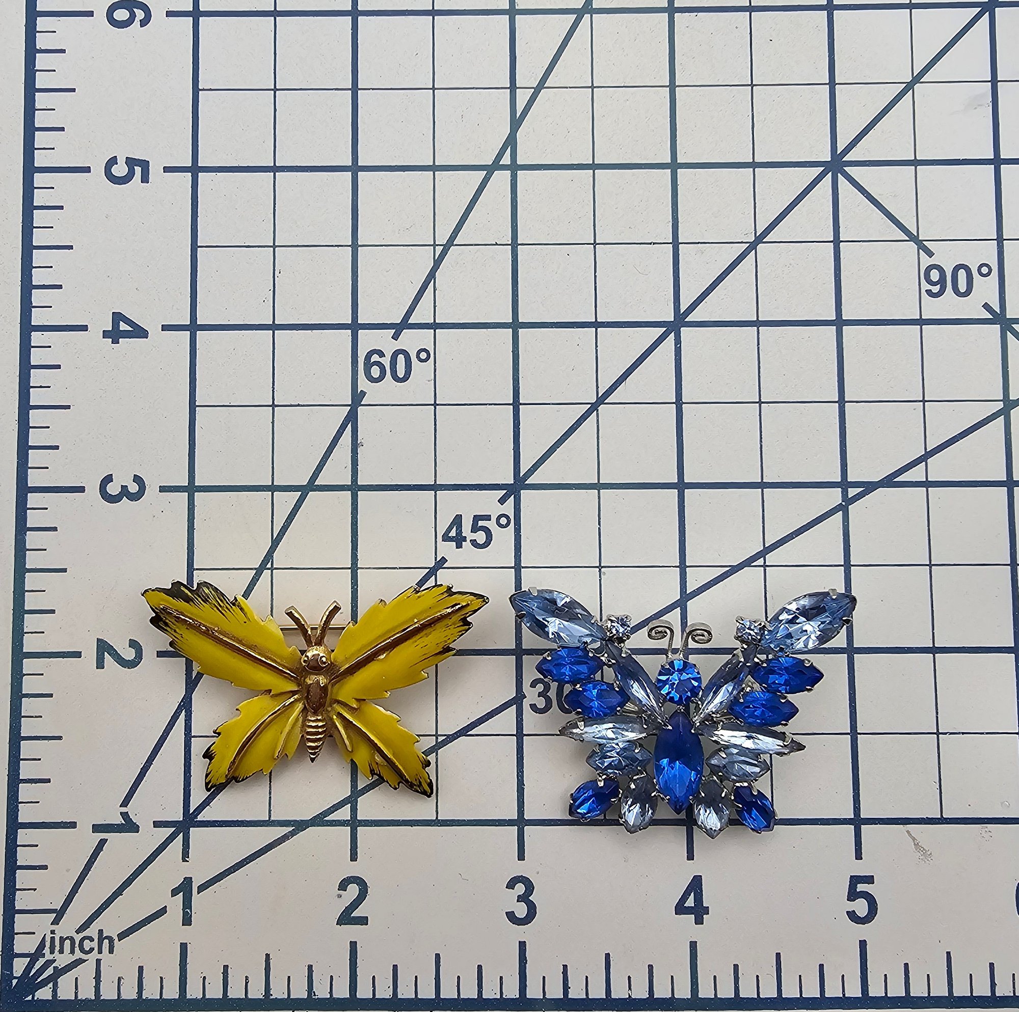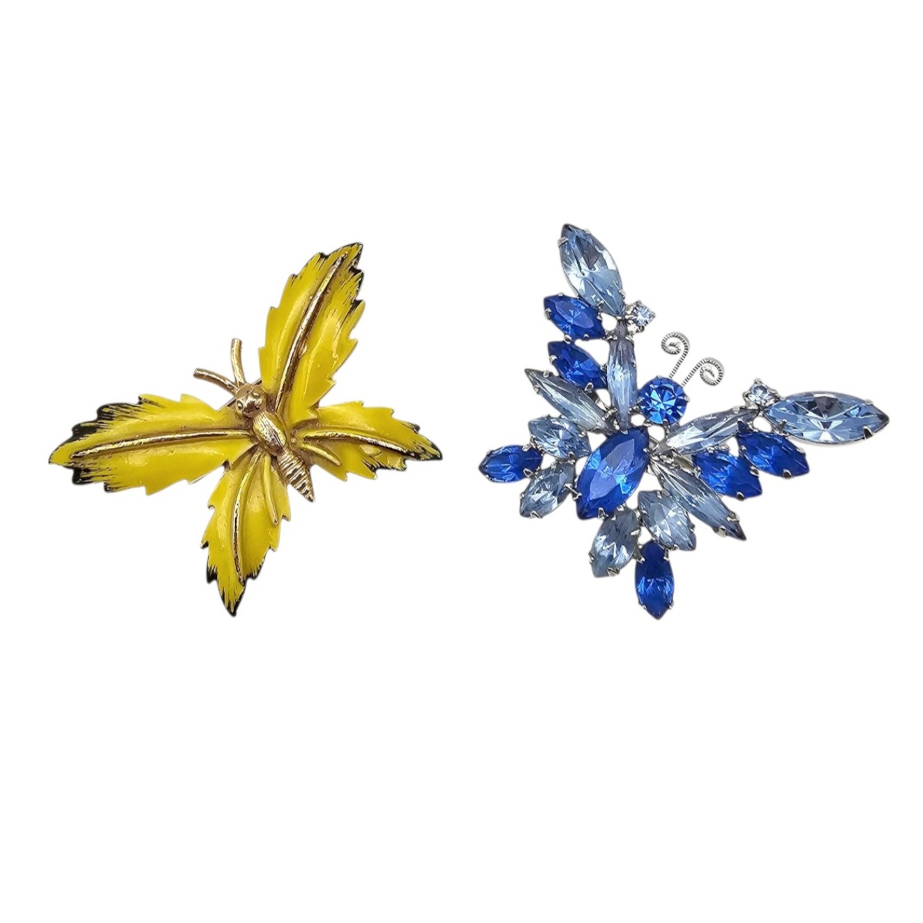 Lot 2 Enamel Rhinestone Butterfly Brooches