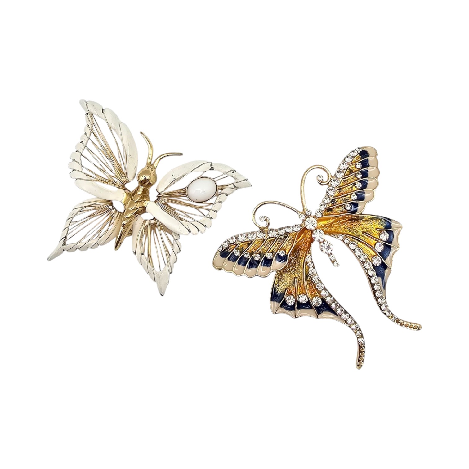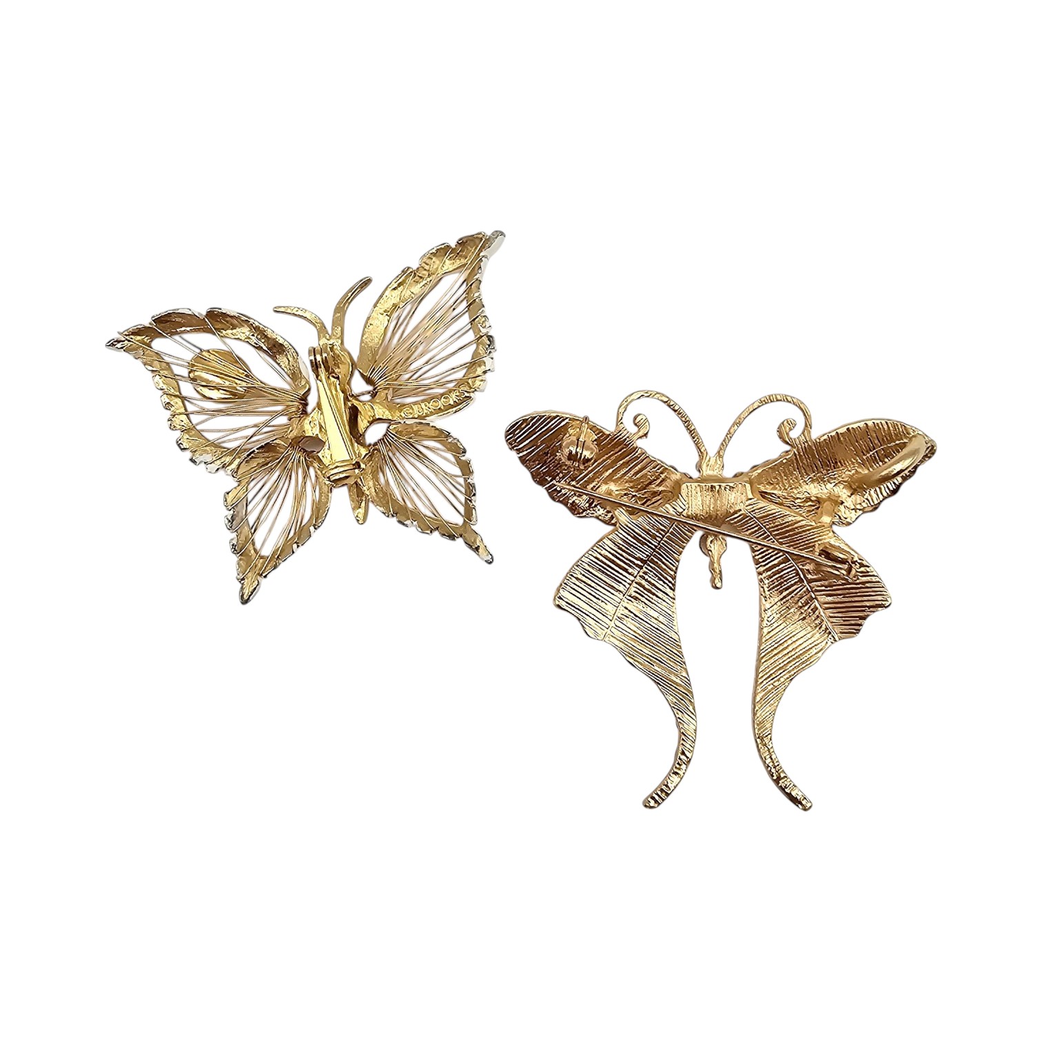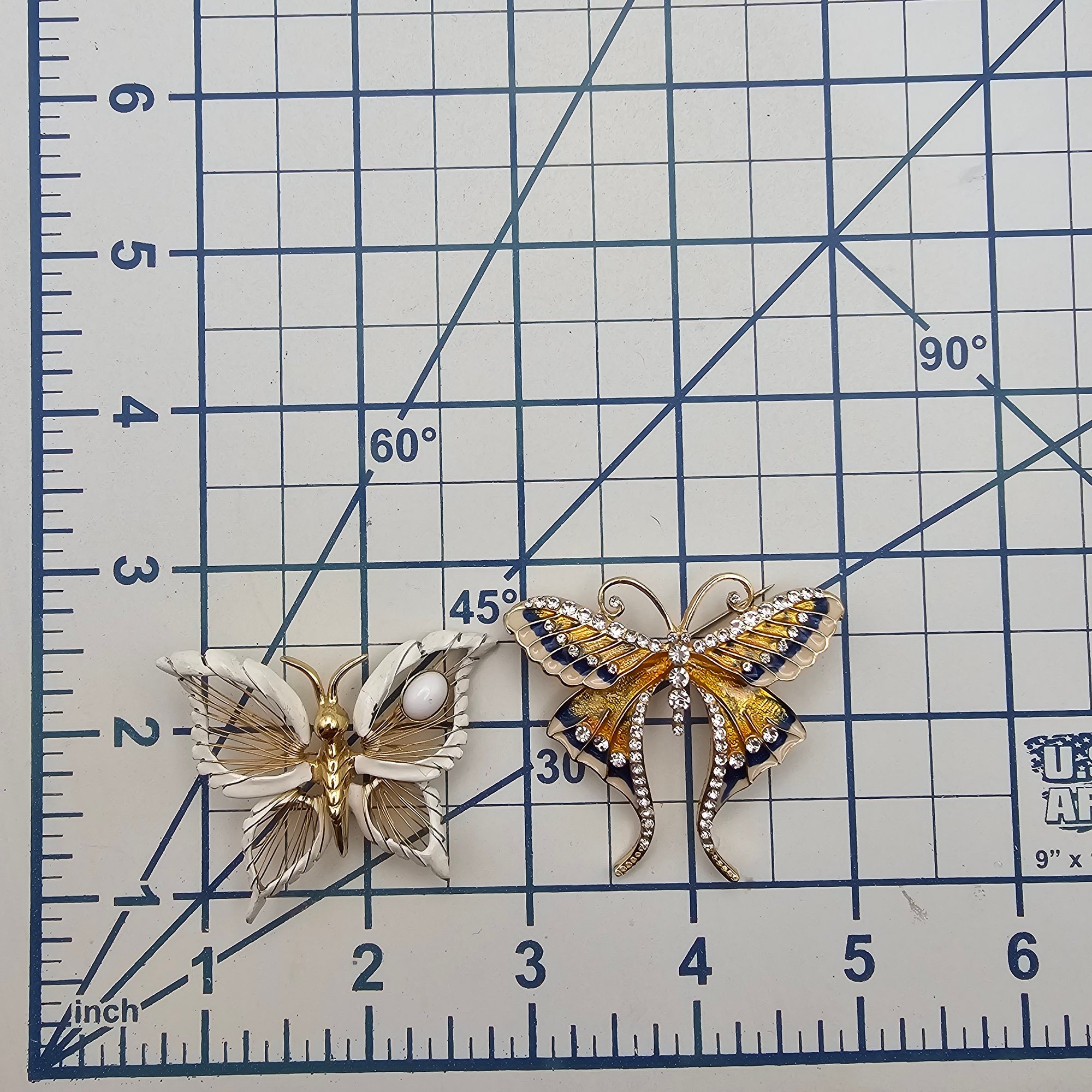 Vintage Lot 2 Enamel Gold Tone Brooches