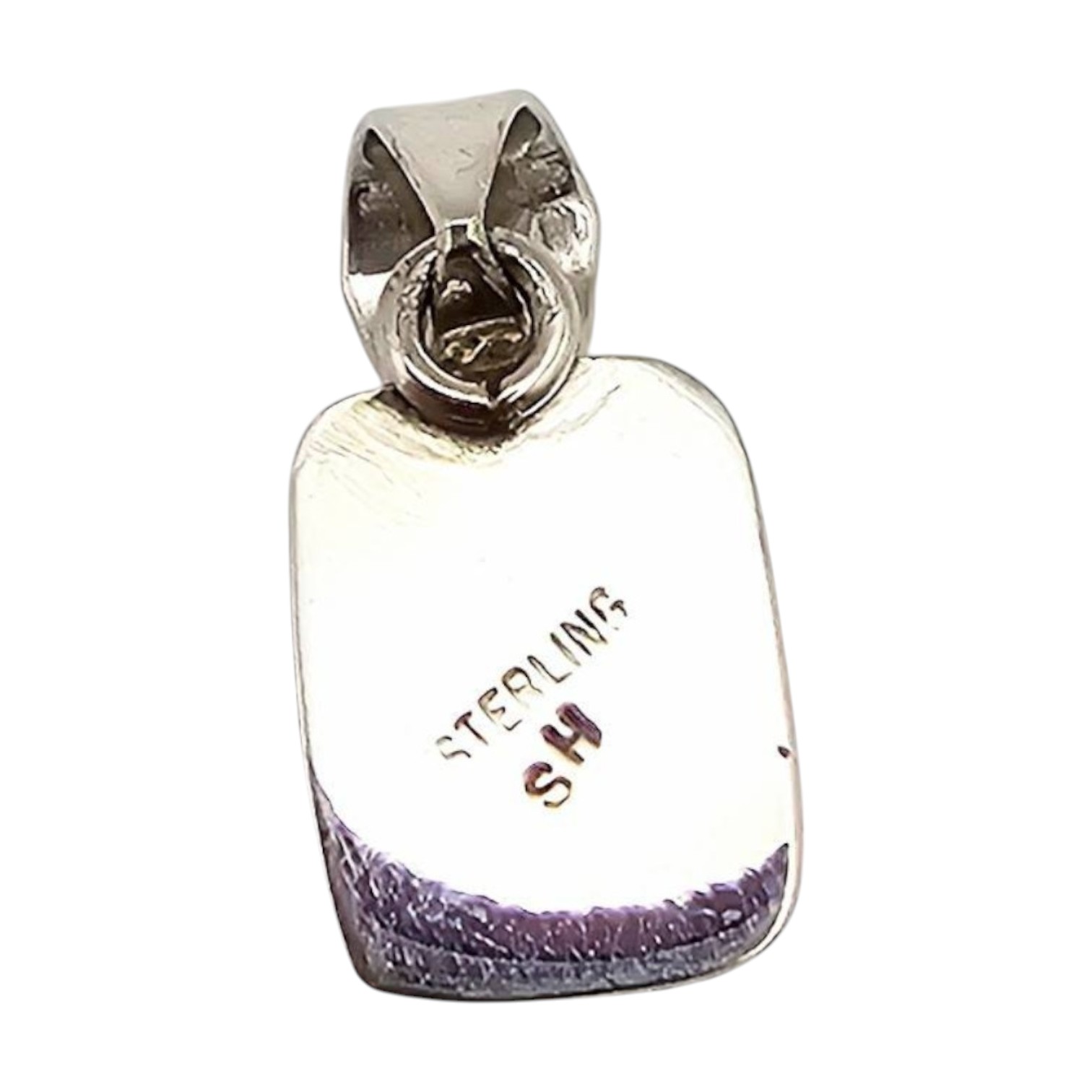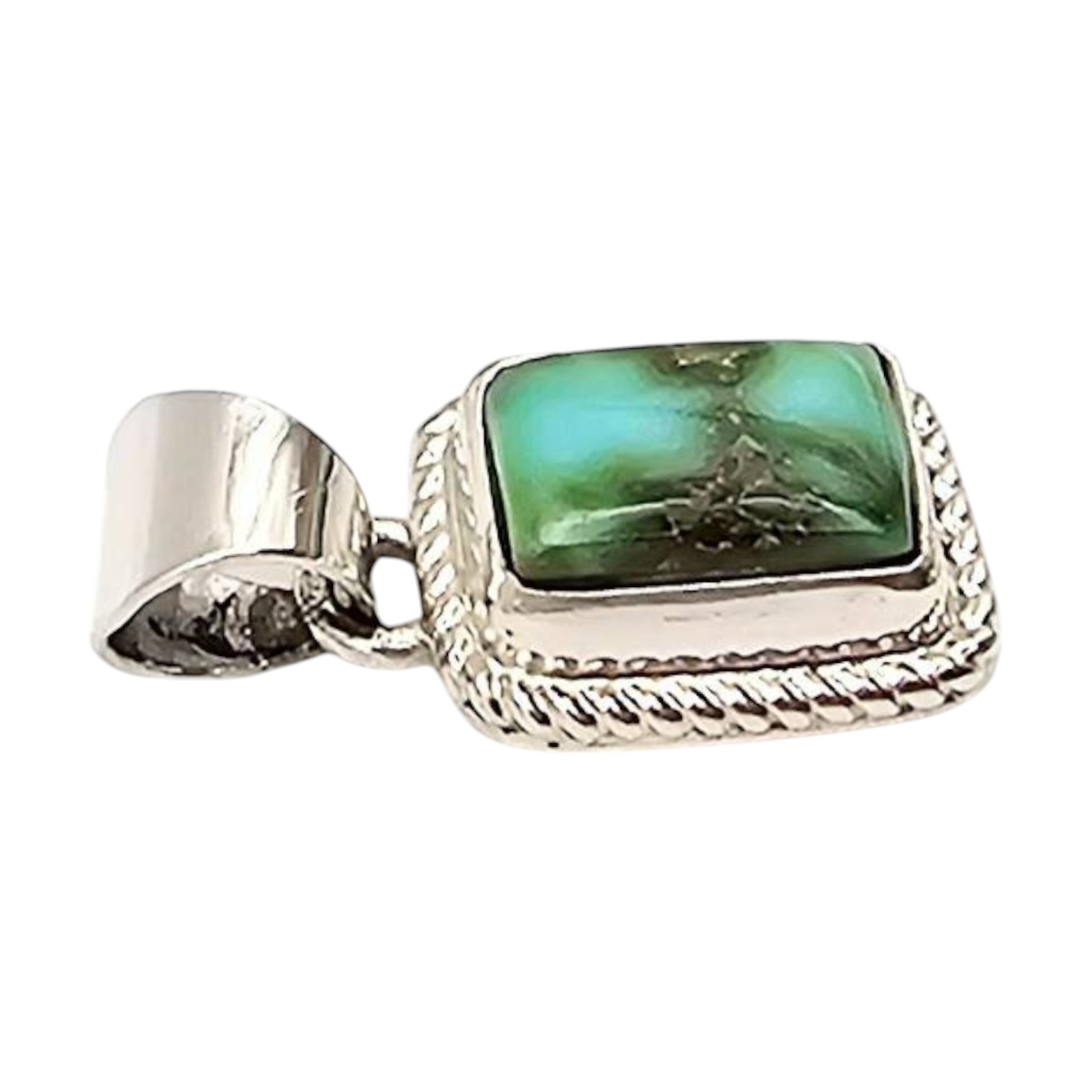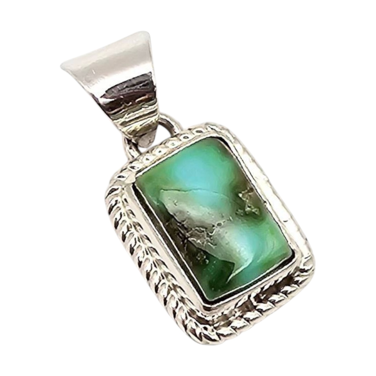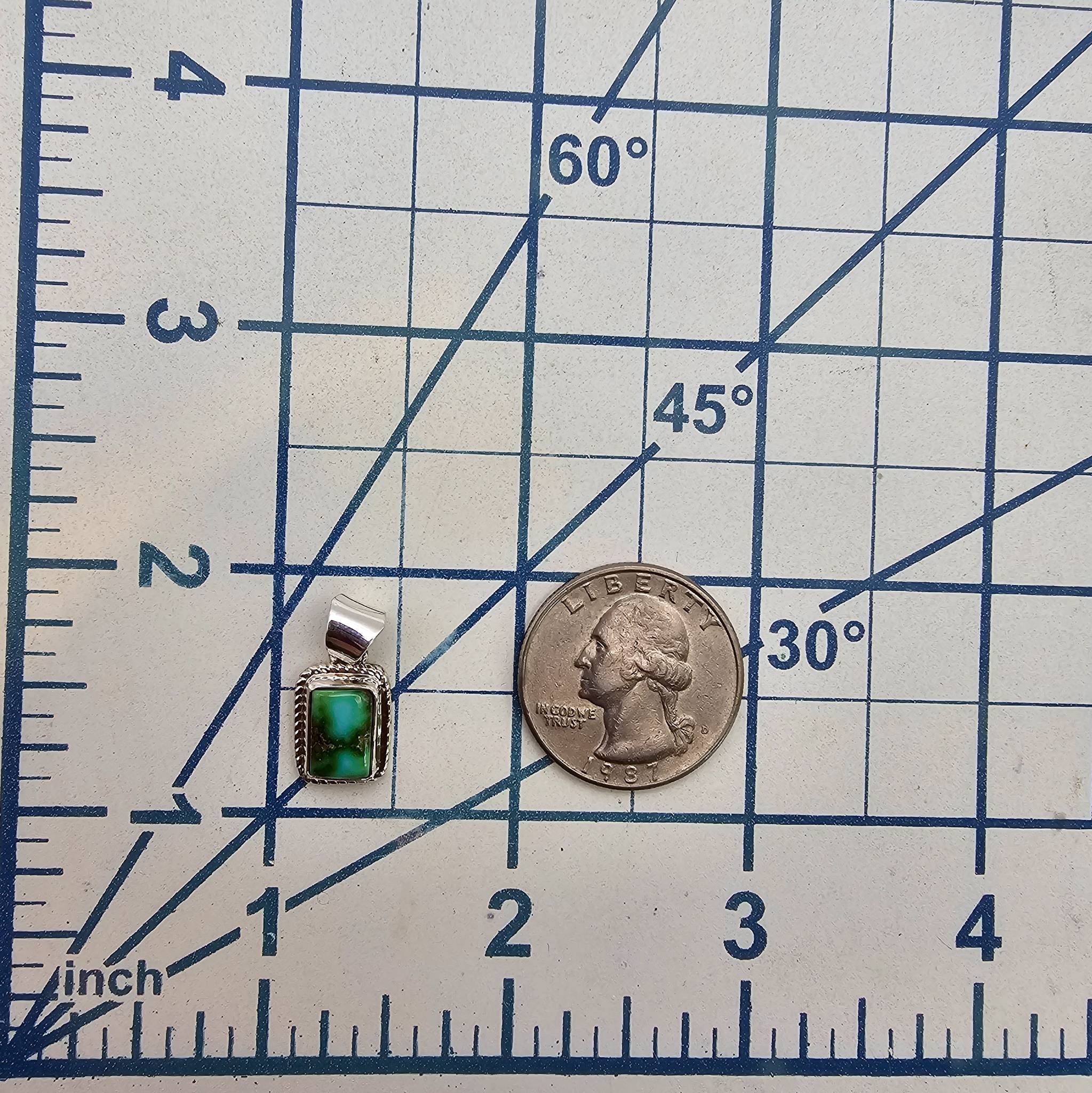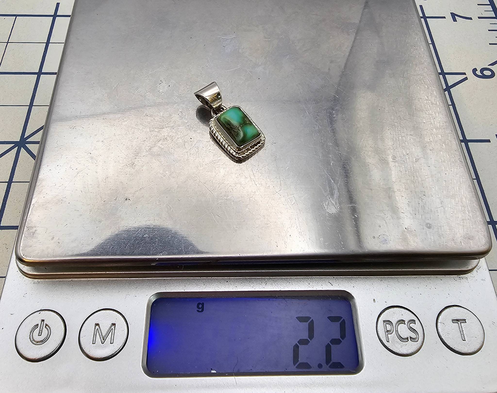 Sterling silver pendant handcrafted by Navajo artisan Shirley Henry, featuring a rectangular Sonoran Gold turquoise stone with vibrant green and gold matrix weighing 2.2g.