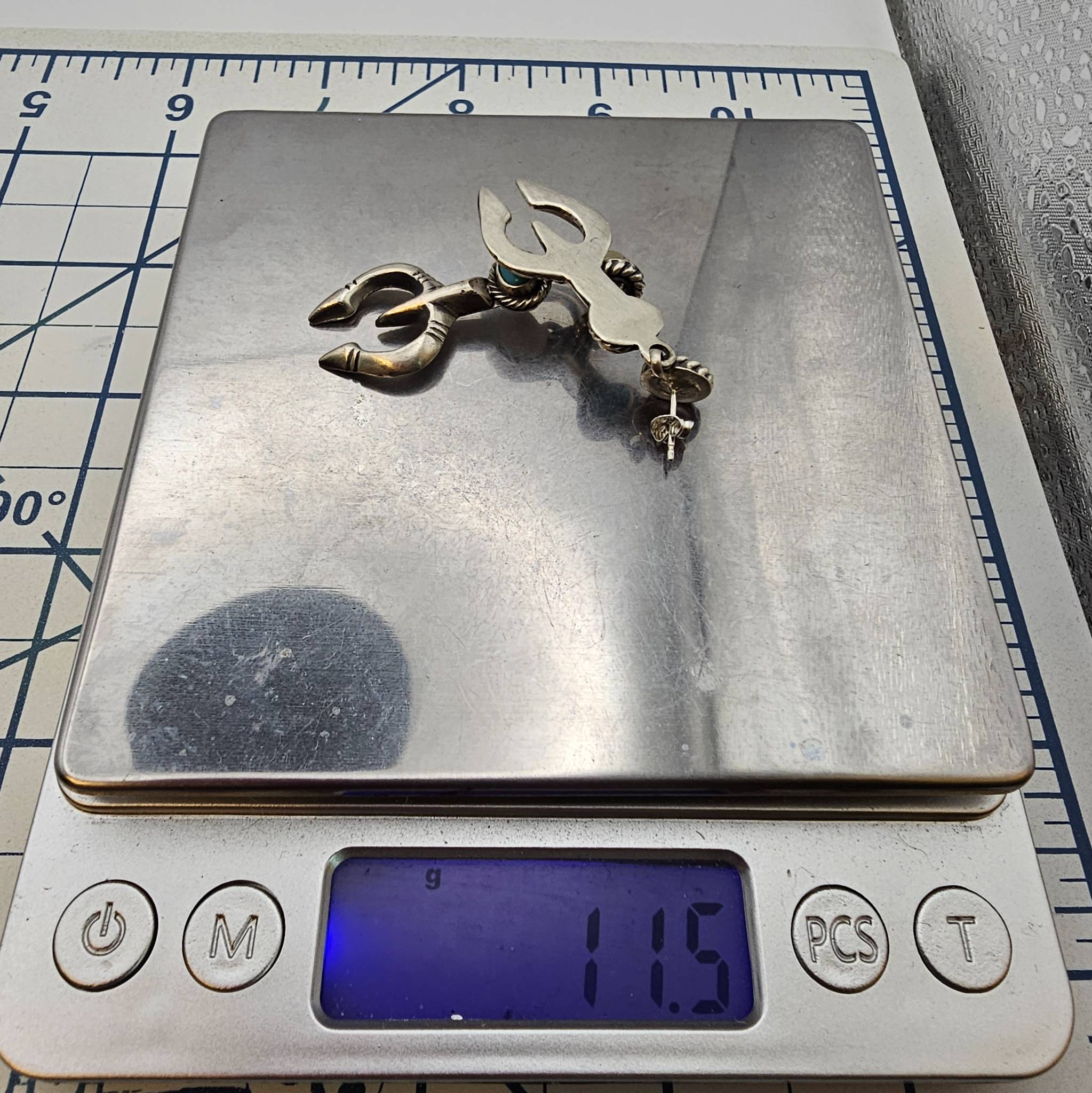 Navajo handmade sterling silver earrings by Annie Spencer featuring Kingman turquoise stones. The earrings have a traditional design with turquoise stones set in sterling silver, weighing 11.5 grams in total. They measure approximately 2 inches in length.