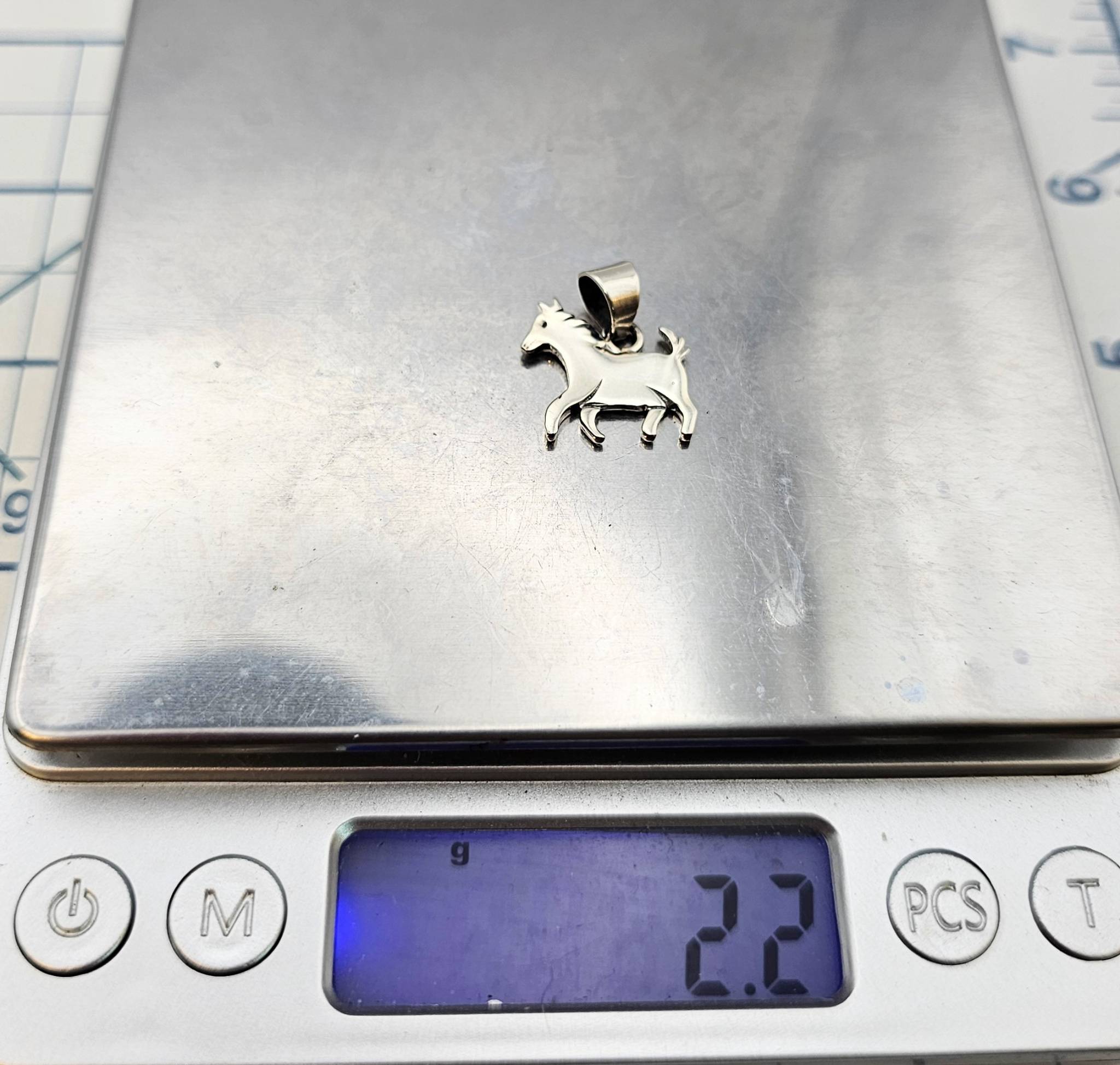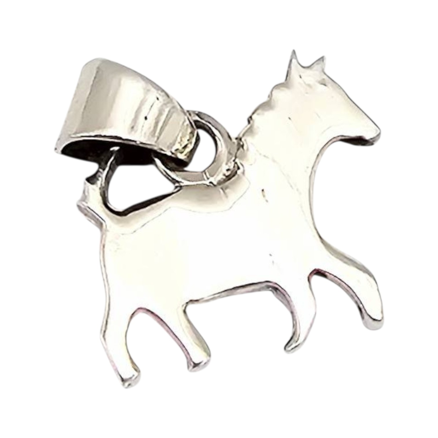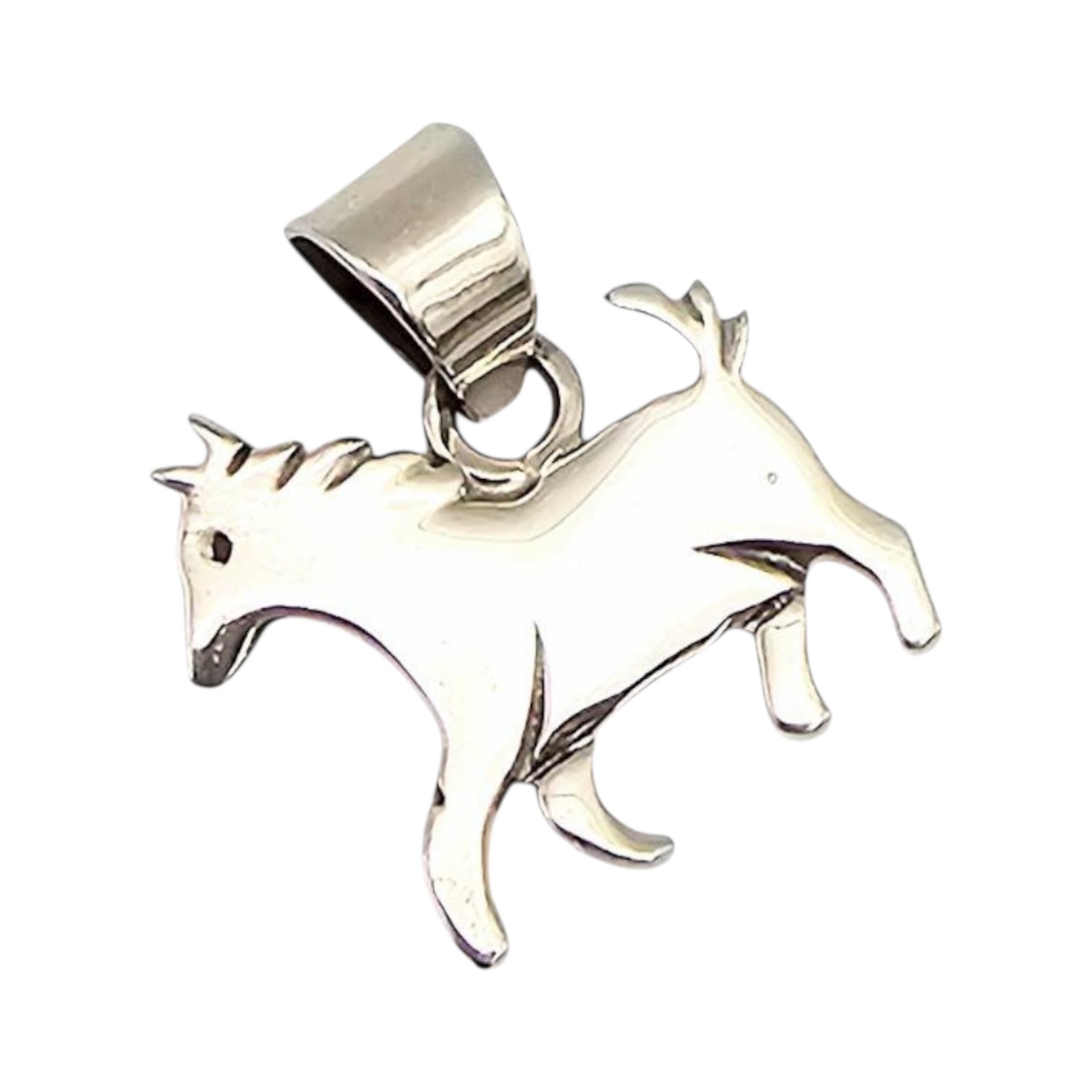A handmade sterling silver horse-shaped pendant crafted by Navajo artisan Allen Lee. The piece weighs 2.2 grams and features a bail for attachment to a chain.