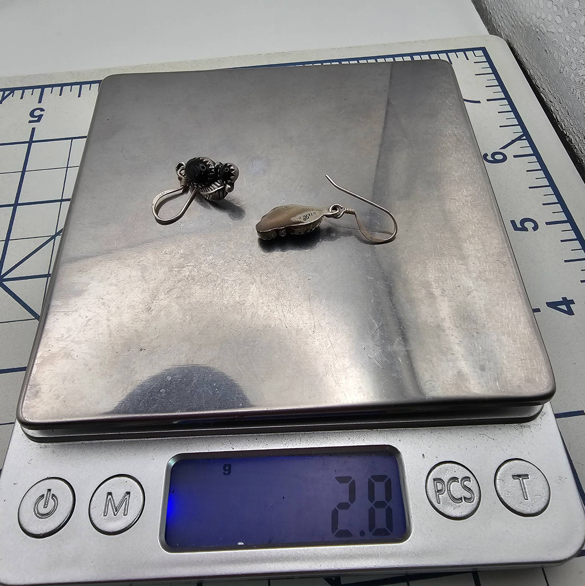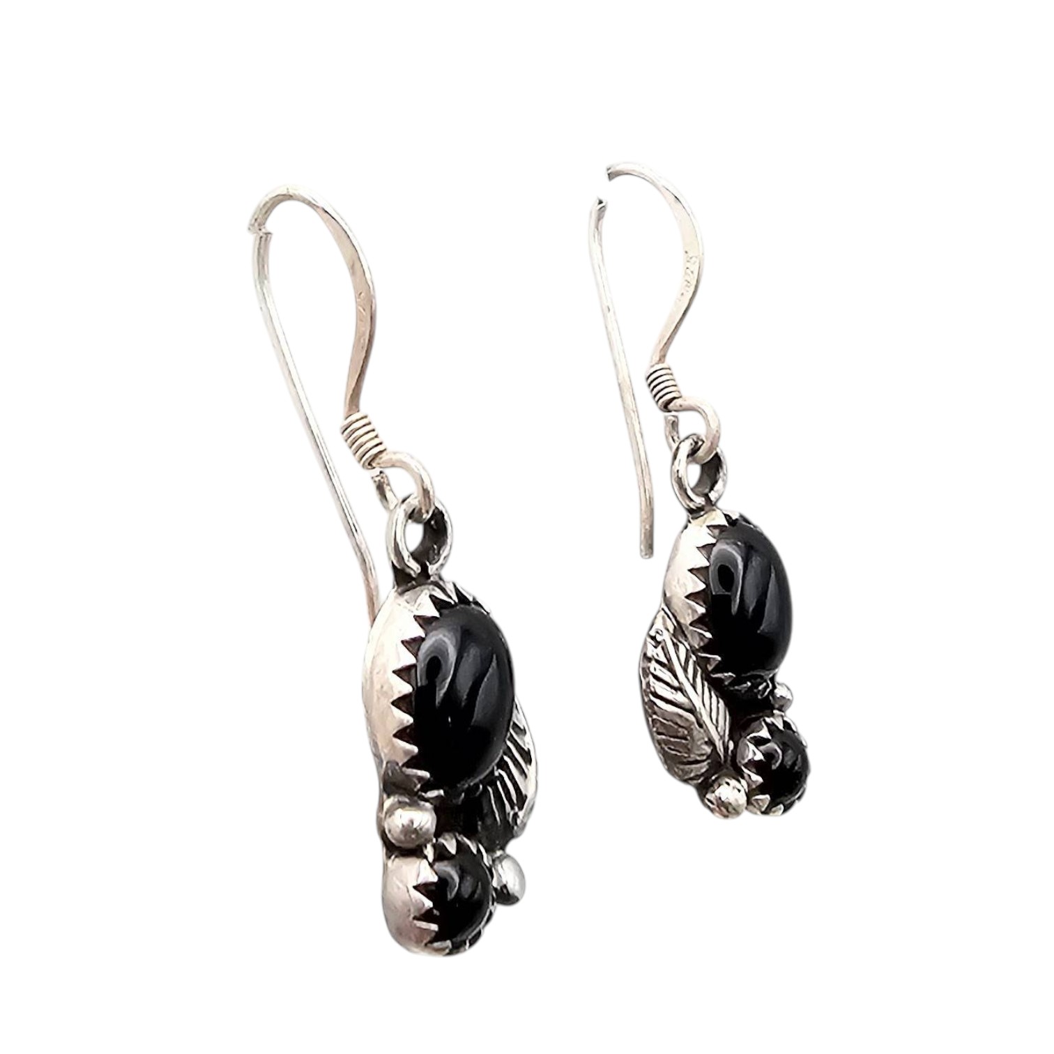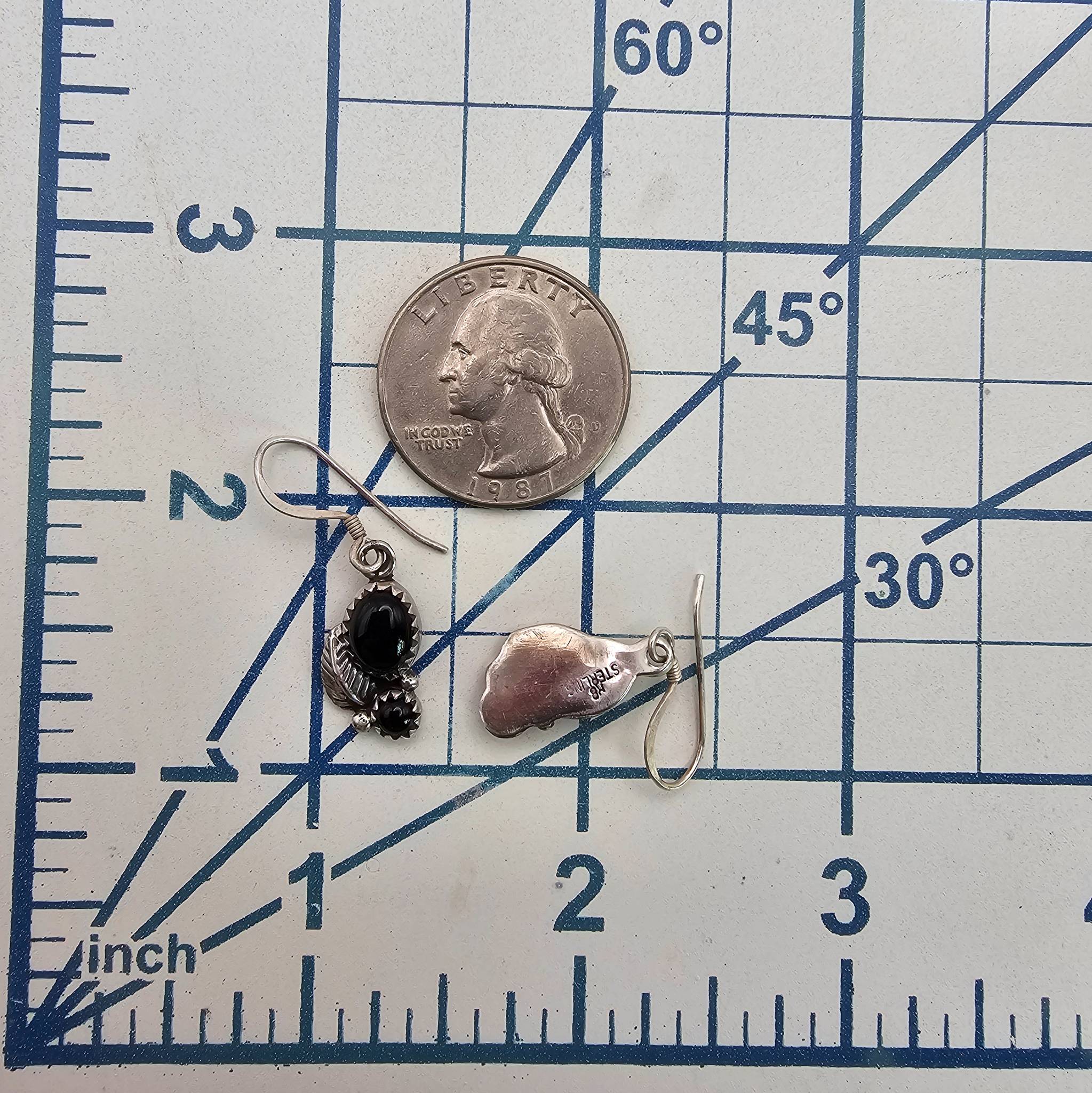 Navajo handmade sterling silver earrings by artisan Annie Spencer, featuring black onyx cabochons. Weight is 2.8 grams for the pair. Previously priced at $75.