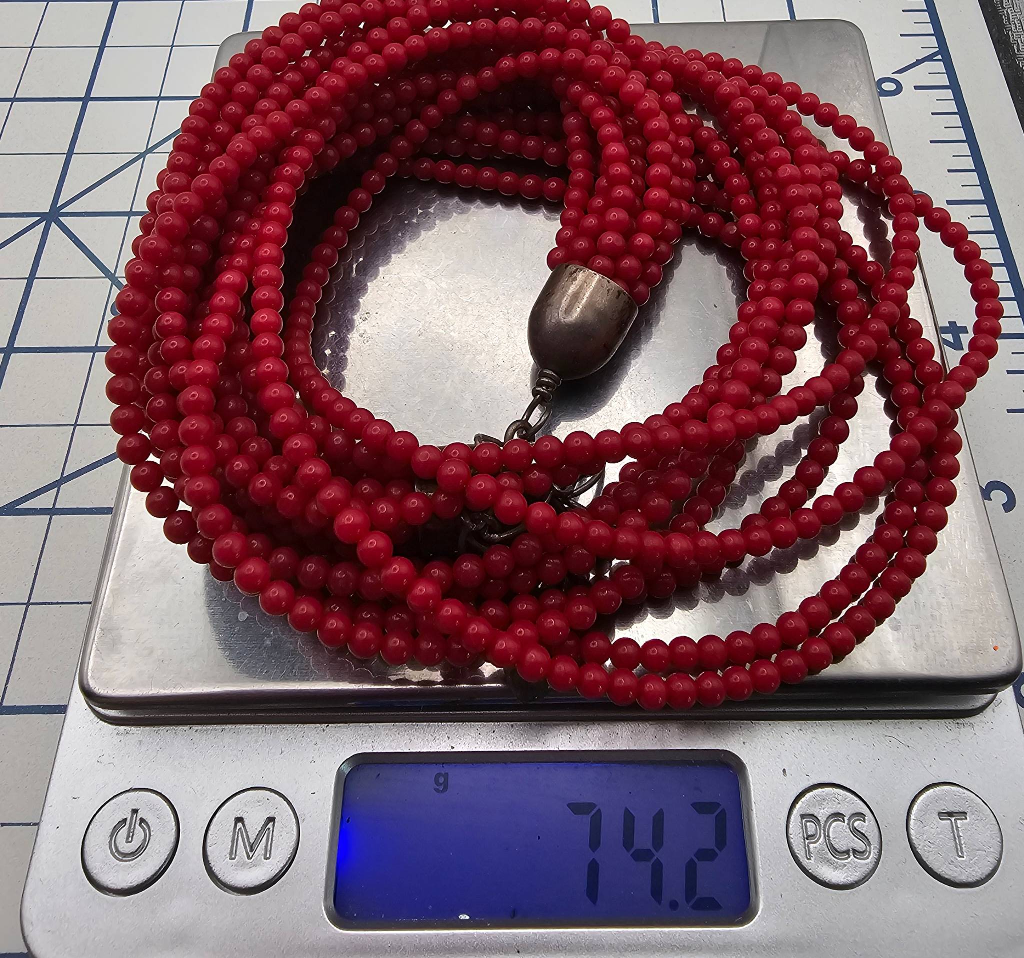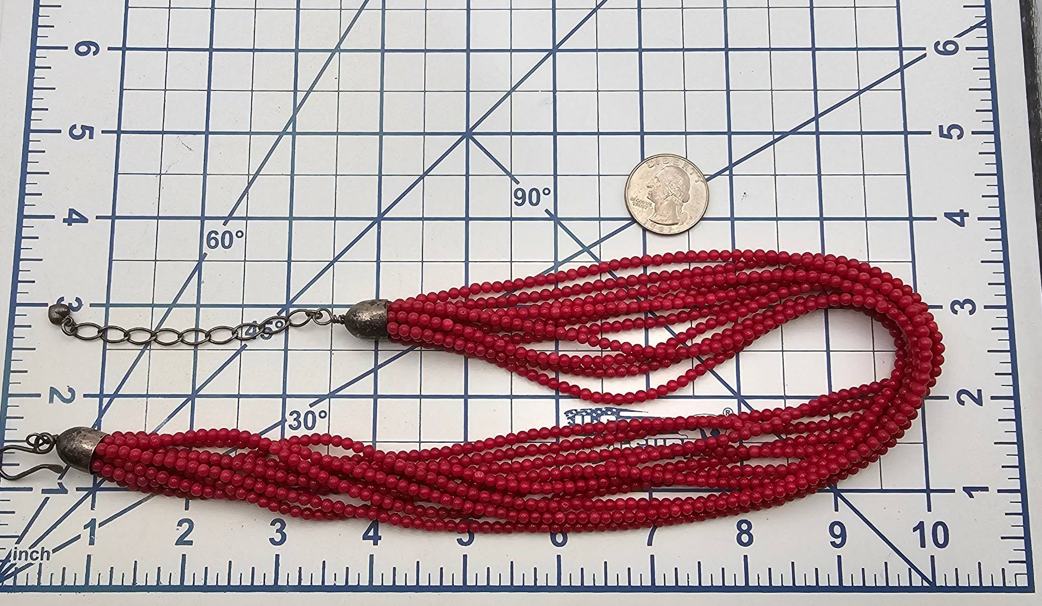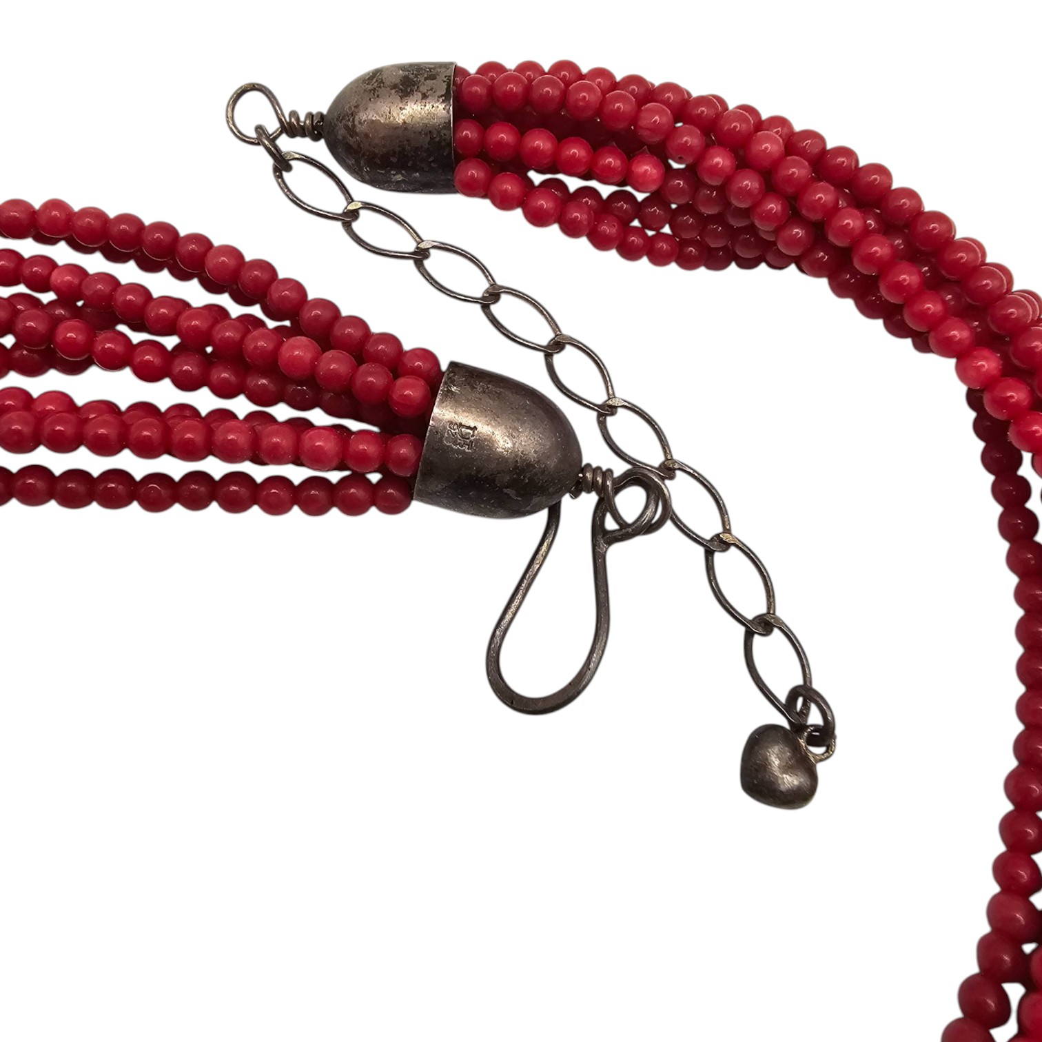 Jay King Mine Finds multi-strand necklace featuring vibrant red coral beads and sterling silver findings. Designed with a hook clasp and extender chain for adjustable length. Suitable for refined and bold statement wear.