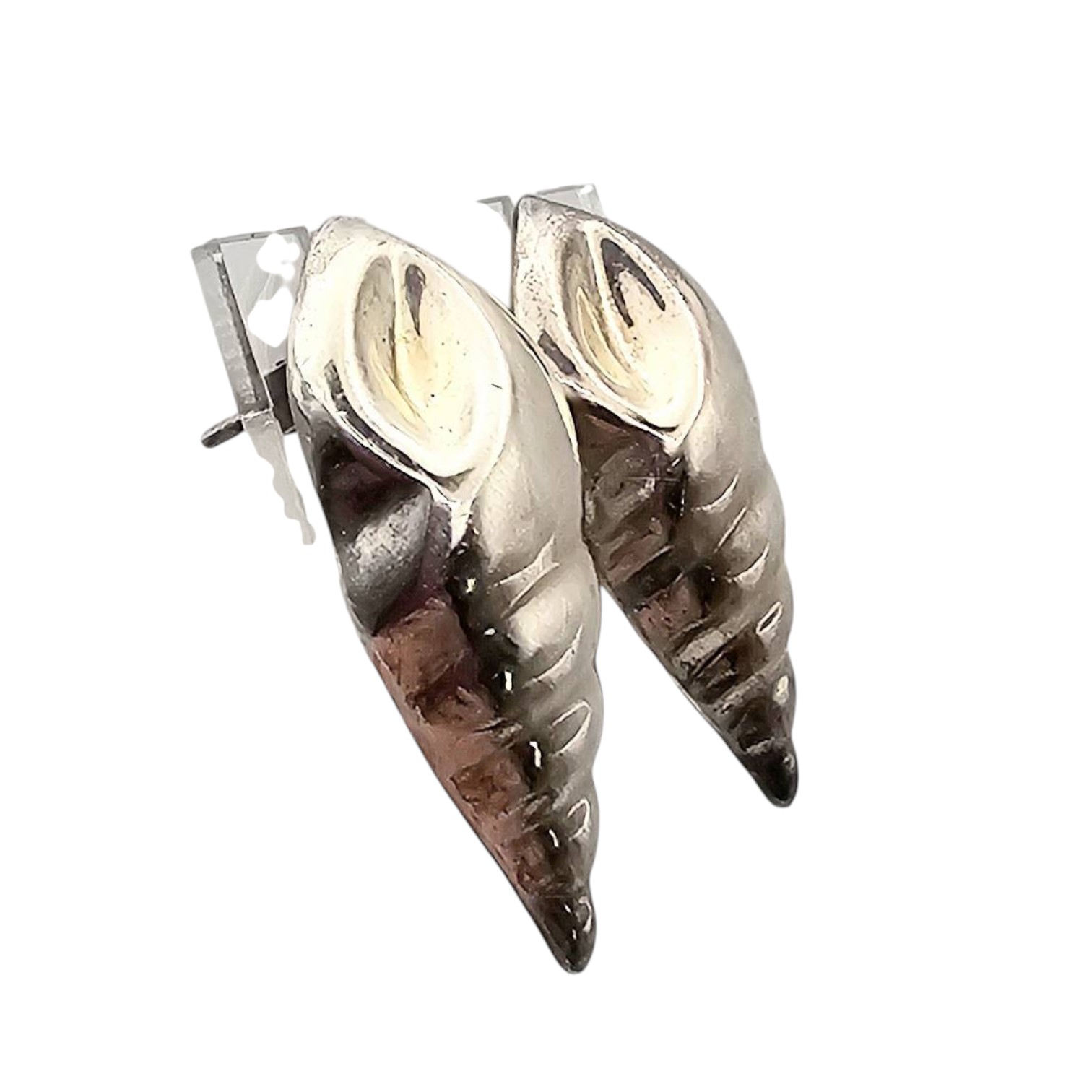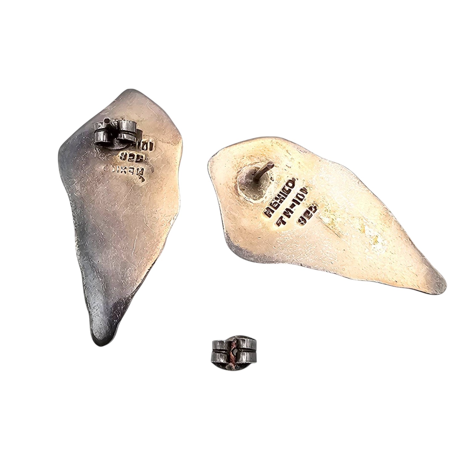 Earrings are approximately 1.5 inches long. Backing closure and marked with metal content and origin.