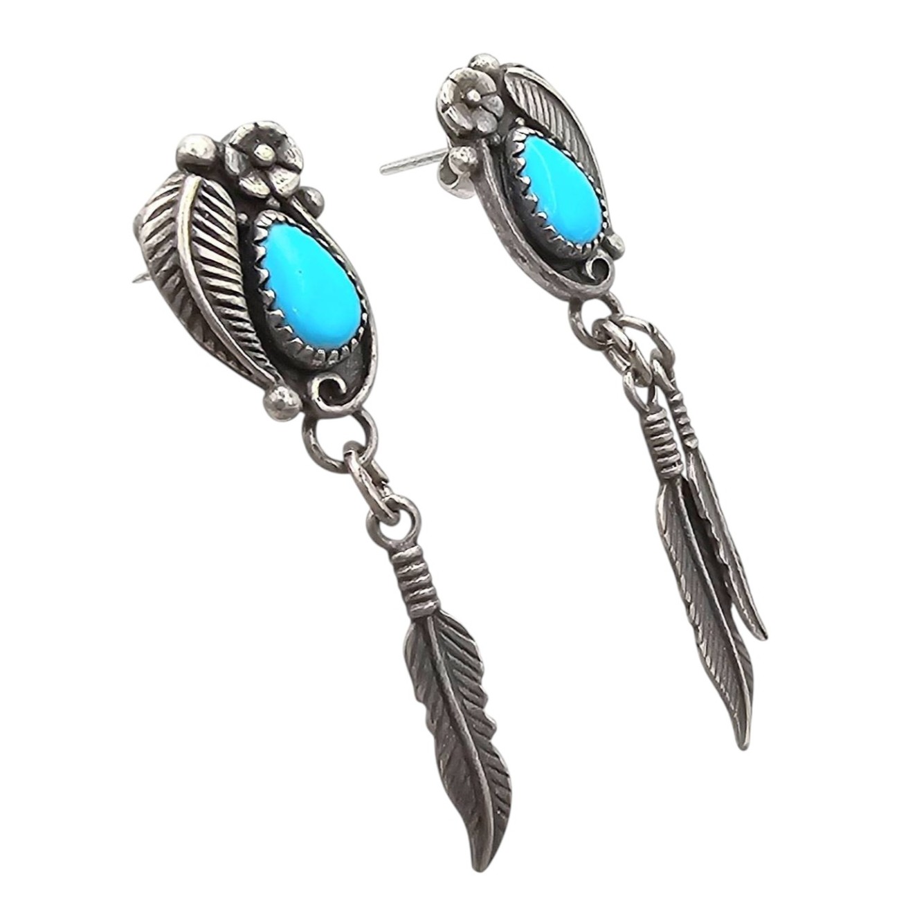 Wheeler Manufacturing Sterling Turquoise Feather Earrings