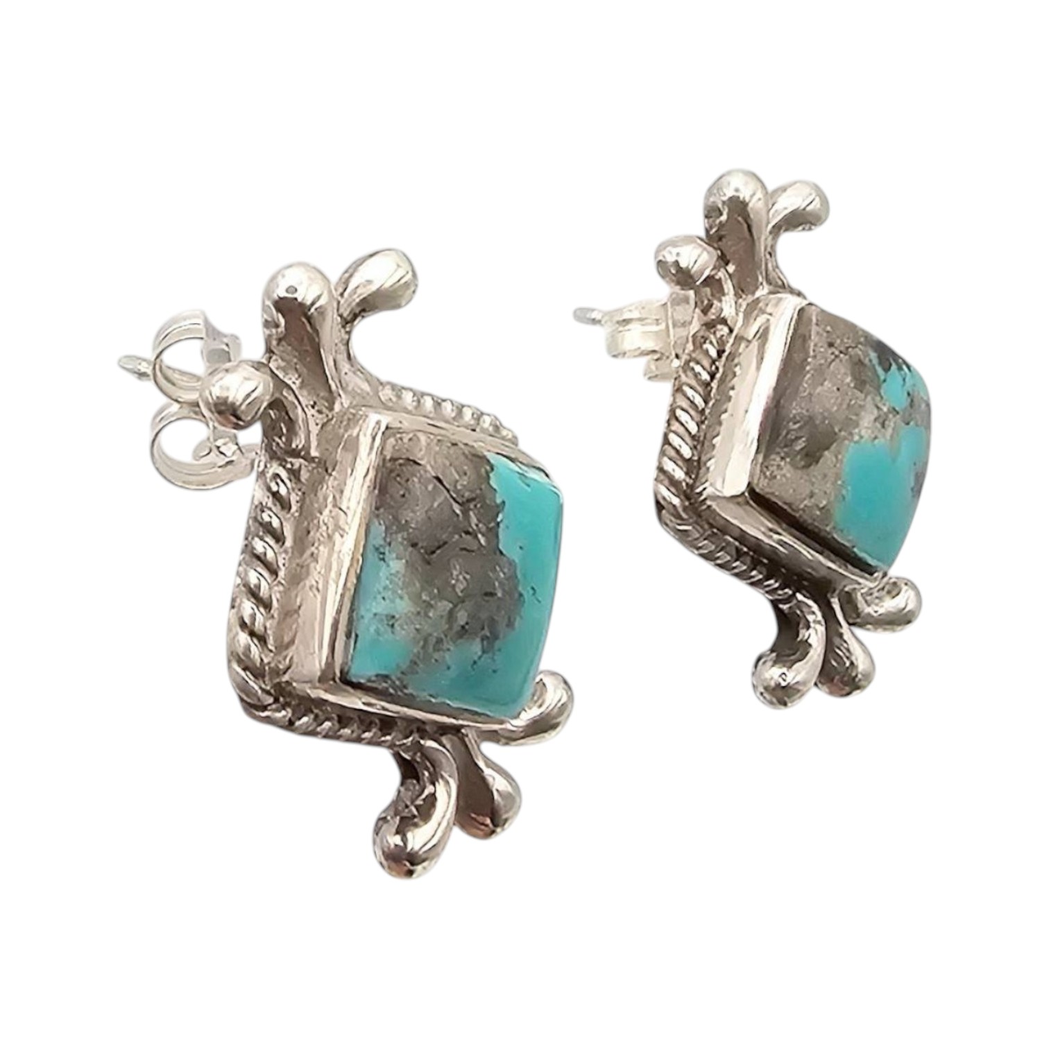 Louise Joe Navajo Sterling Kingman Turquoise Earrings