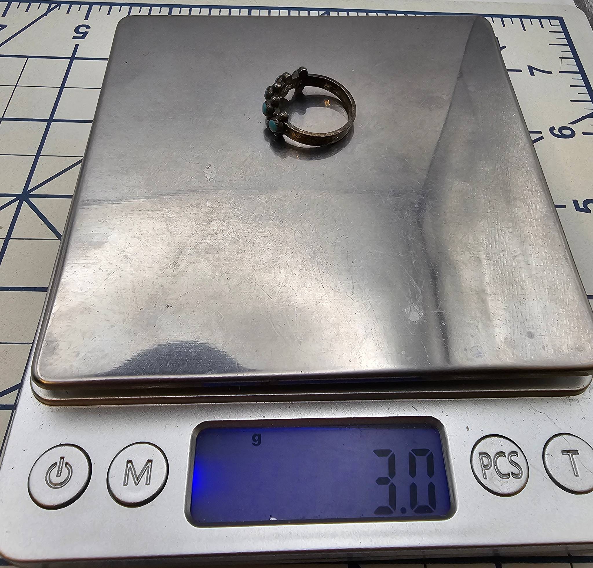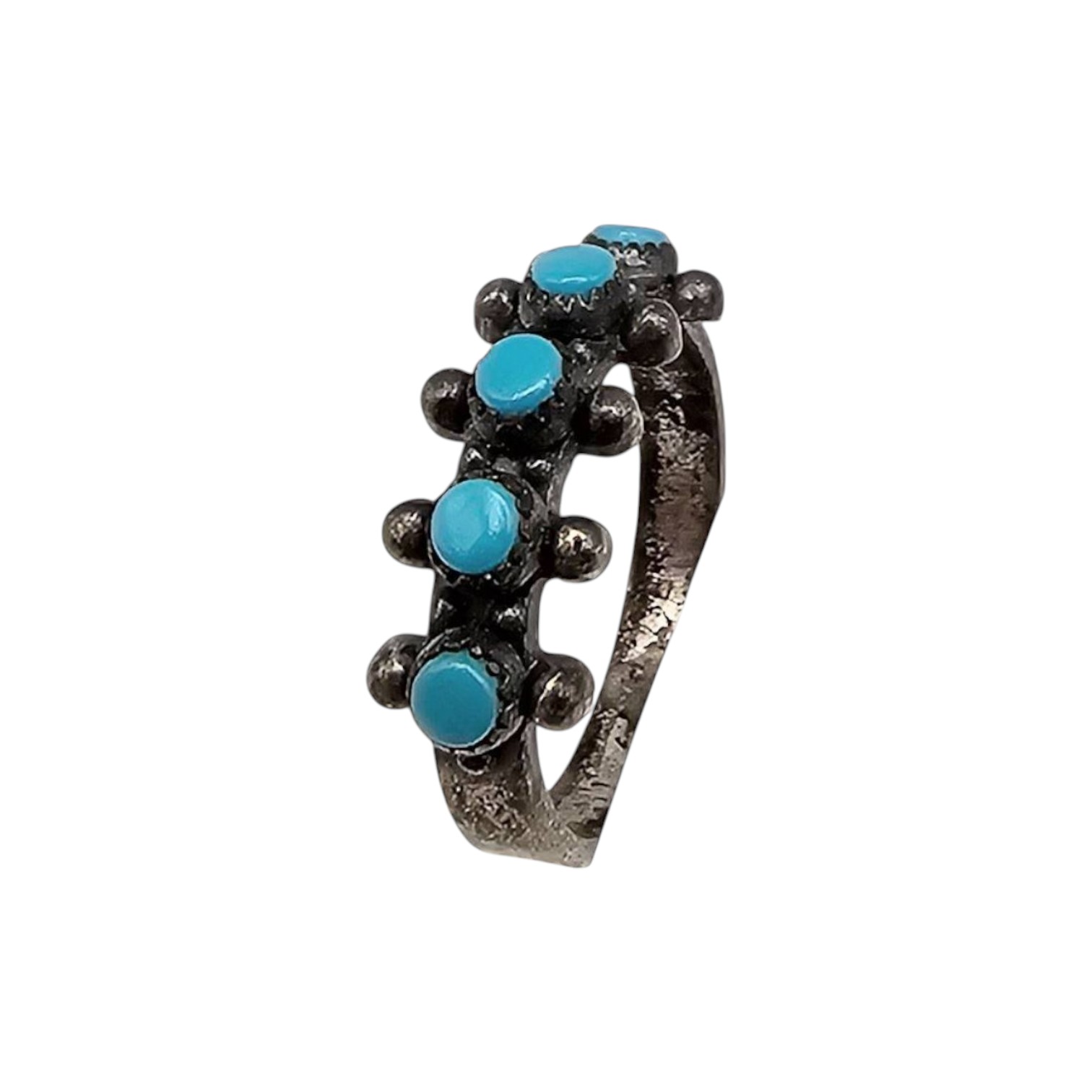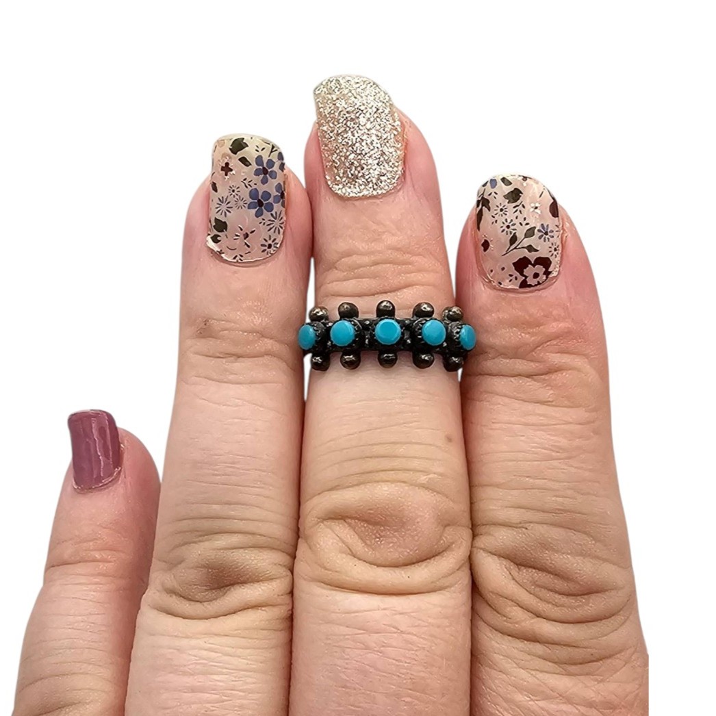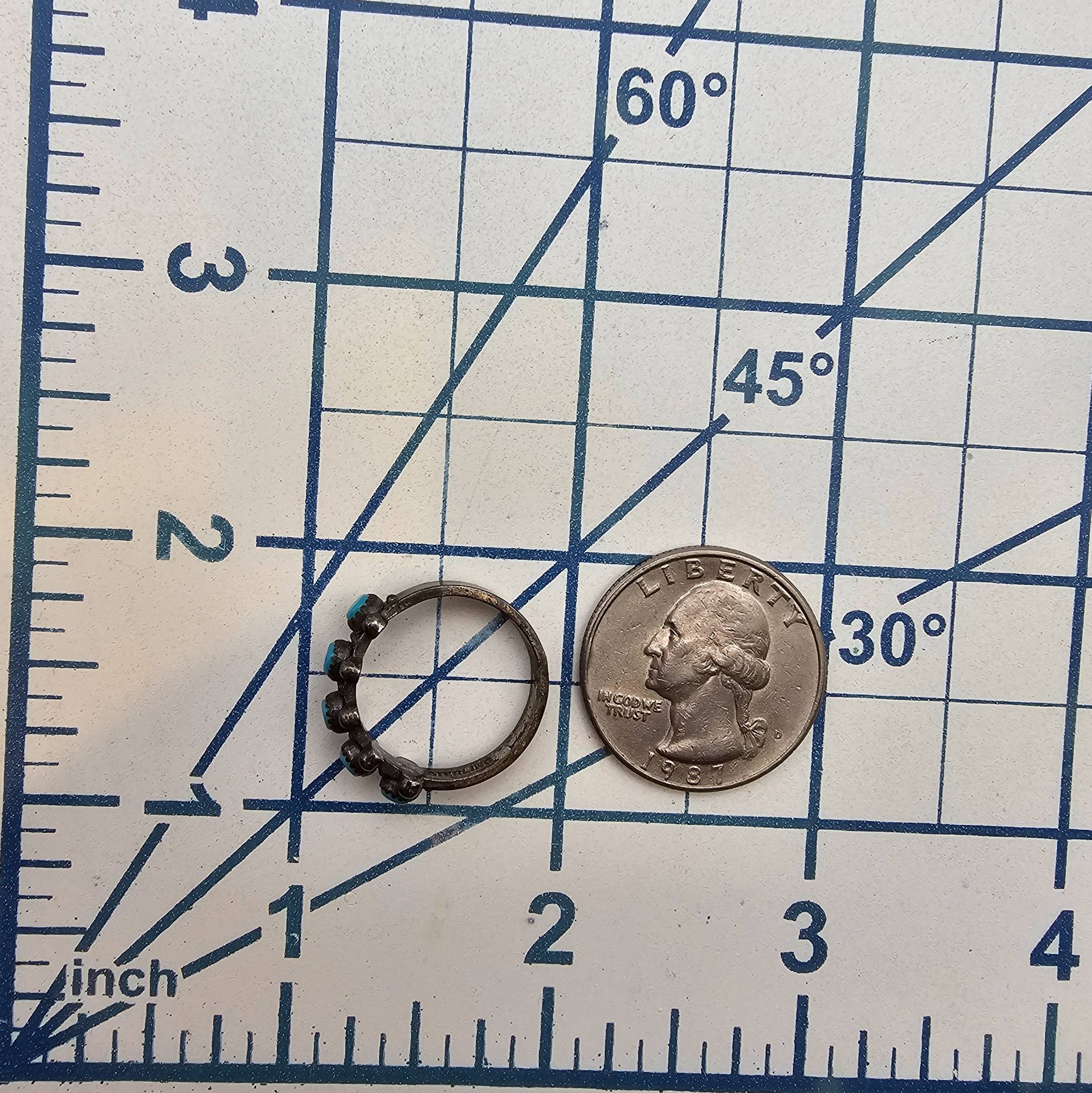 Sterling silver ring featuring a Native American-inspired snake eye turquoise design. The ring is adorned with multiple small turquoise stones in a traditional bezel setting and measures at a size 6.25.