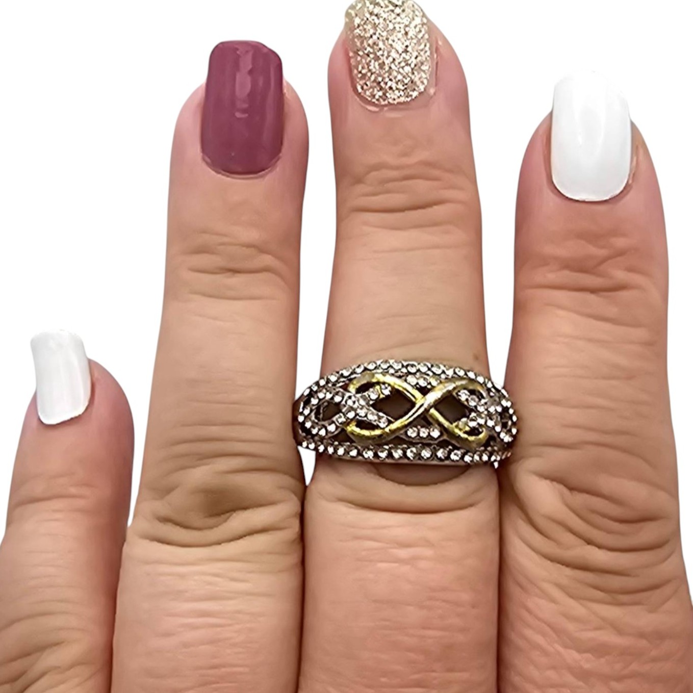 S Gold Over Sterling Silver Infinity Ring with Rhinestones, Size 9.25