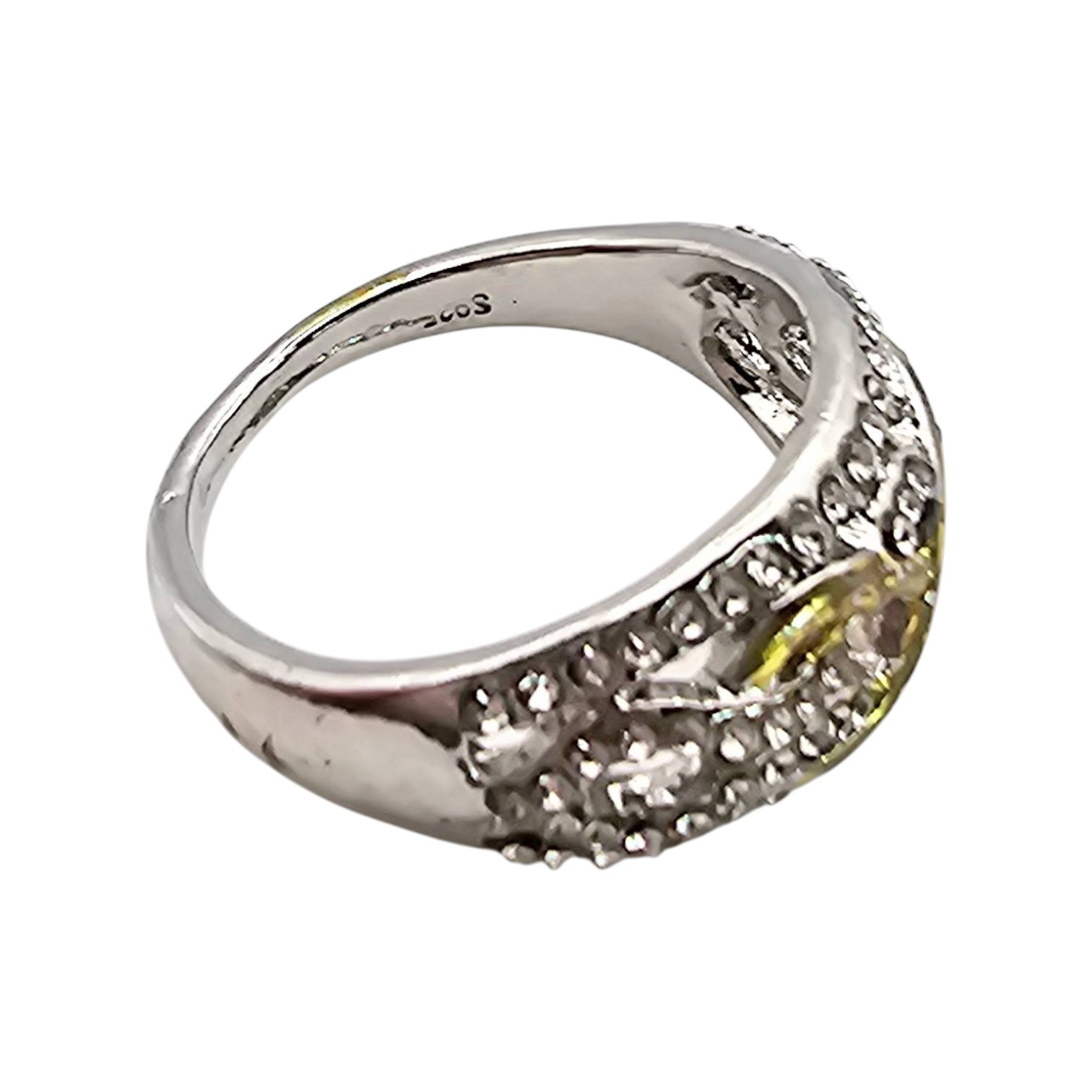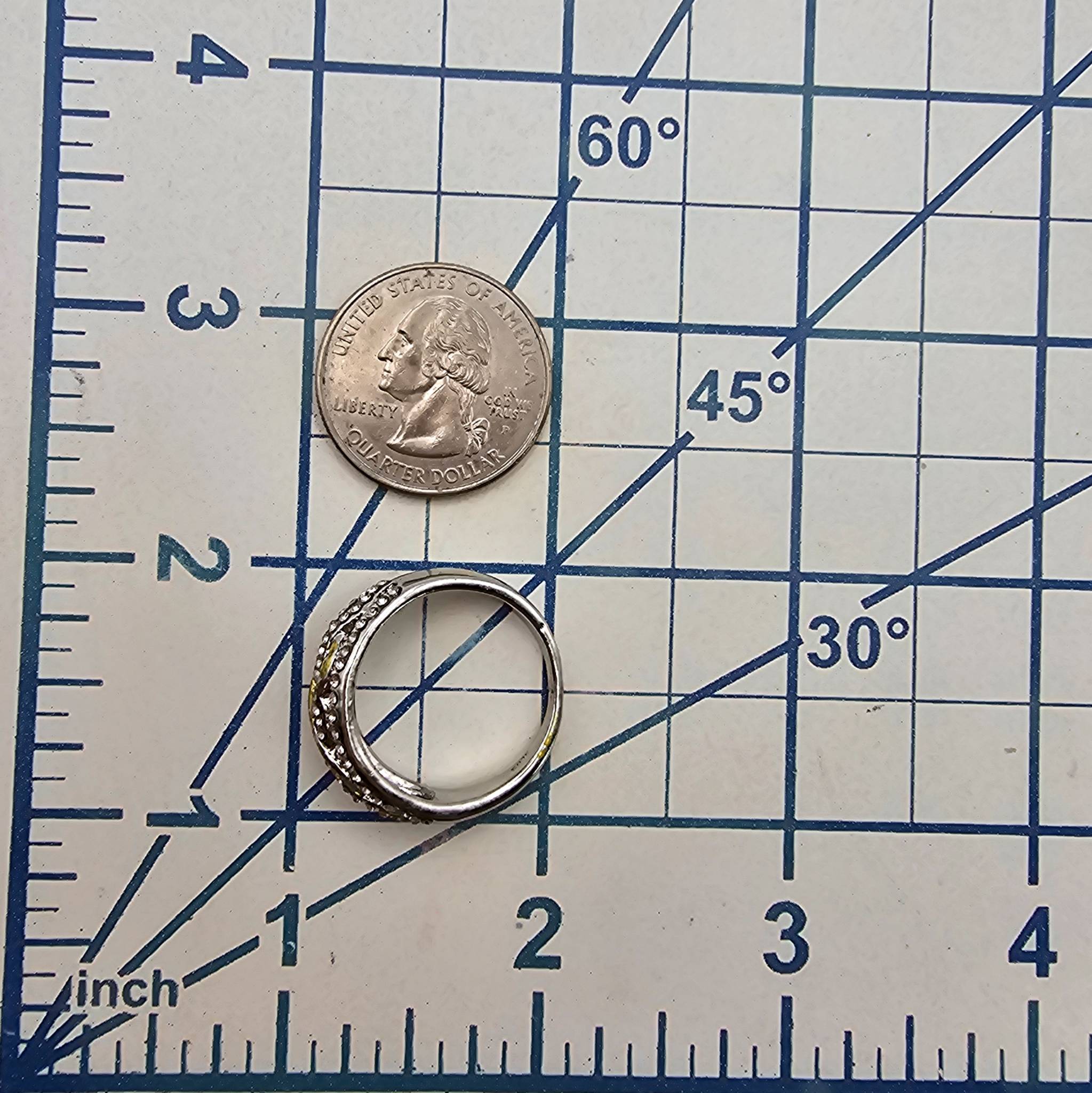 S Gold Over Sterling silver ring marked 925, featuring rhinestone accents and an infinity symbol design. The ring is size 9.25 with a total weight of 5.1 grams. Elegant craftsmanship blends silver and gold tones, accented with clear rhinestones for added sparkle.