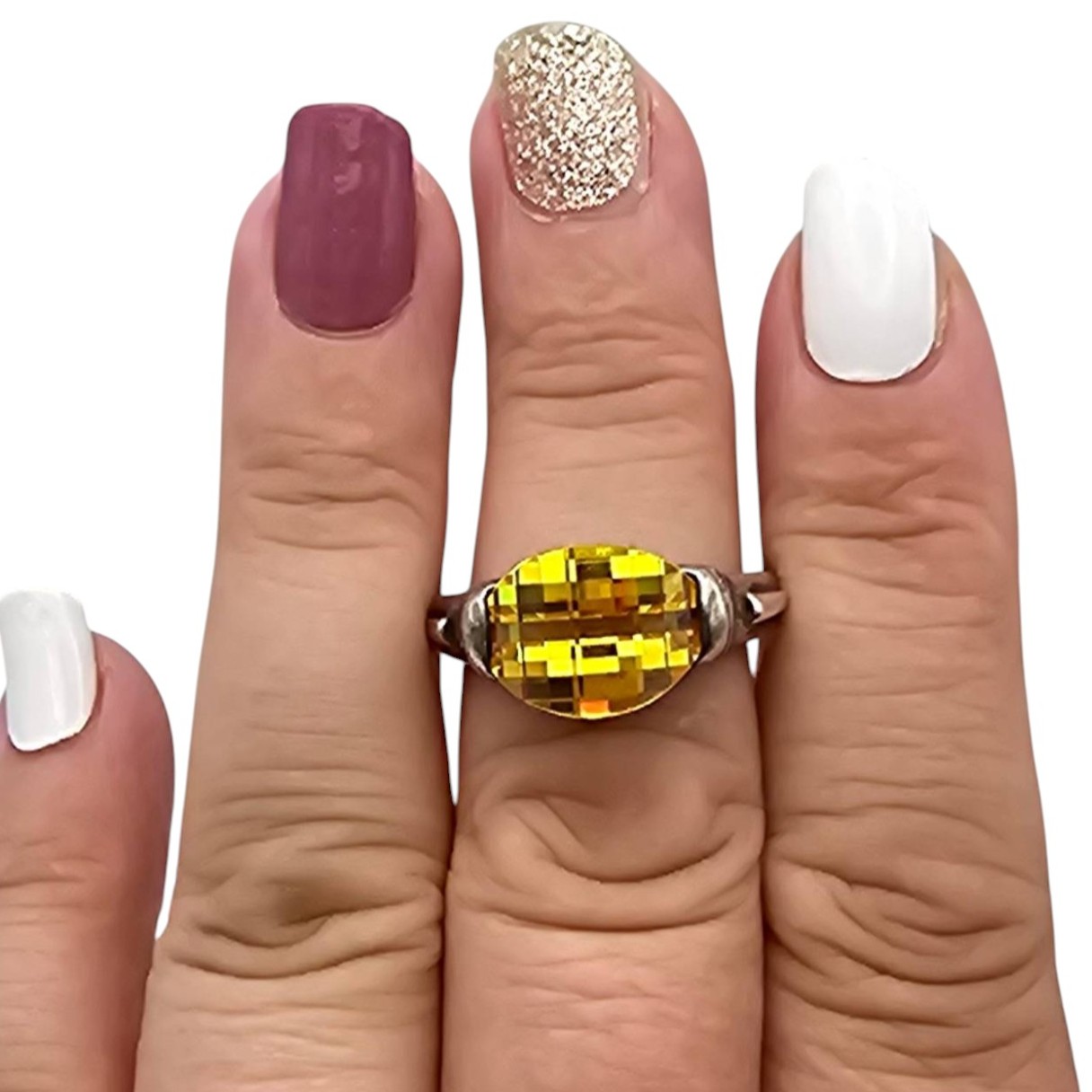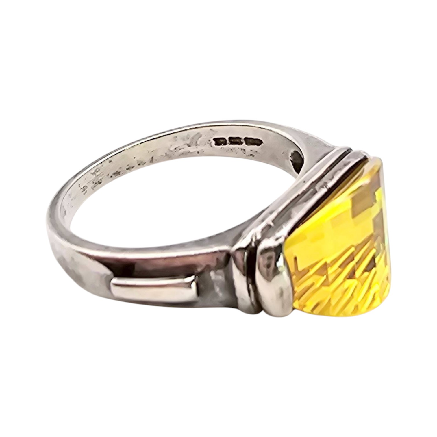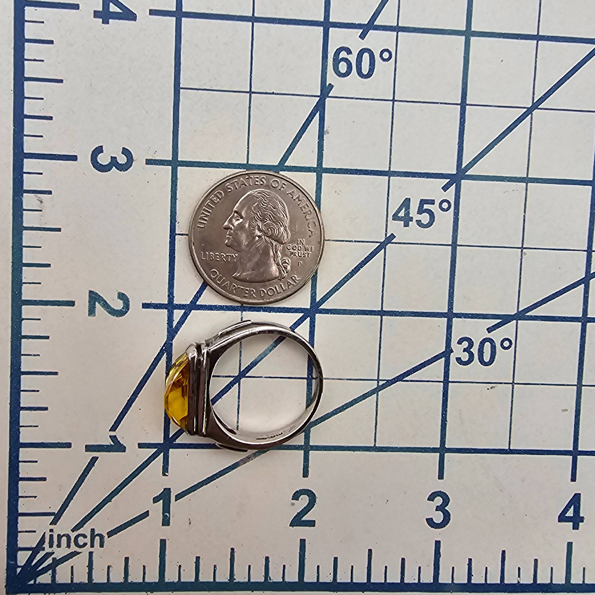 Sterling silver ring marked featuring a faceted yellow cubic zirconia stone at the center. The ring is a size 8.5 and weighs 6.5 grams. The design includes a tapered band and a secure setting for the stone. The silver has a stamped hallmark.