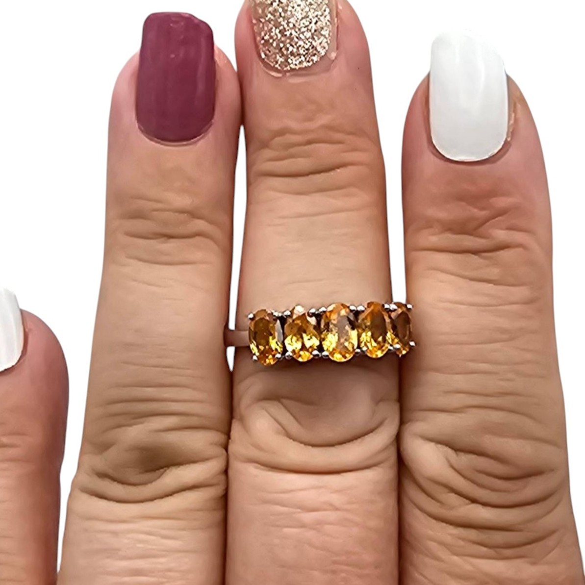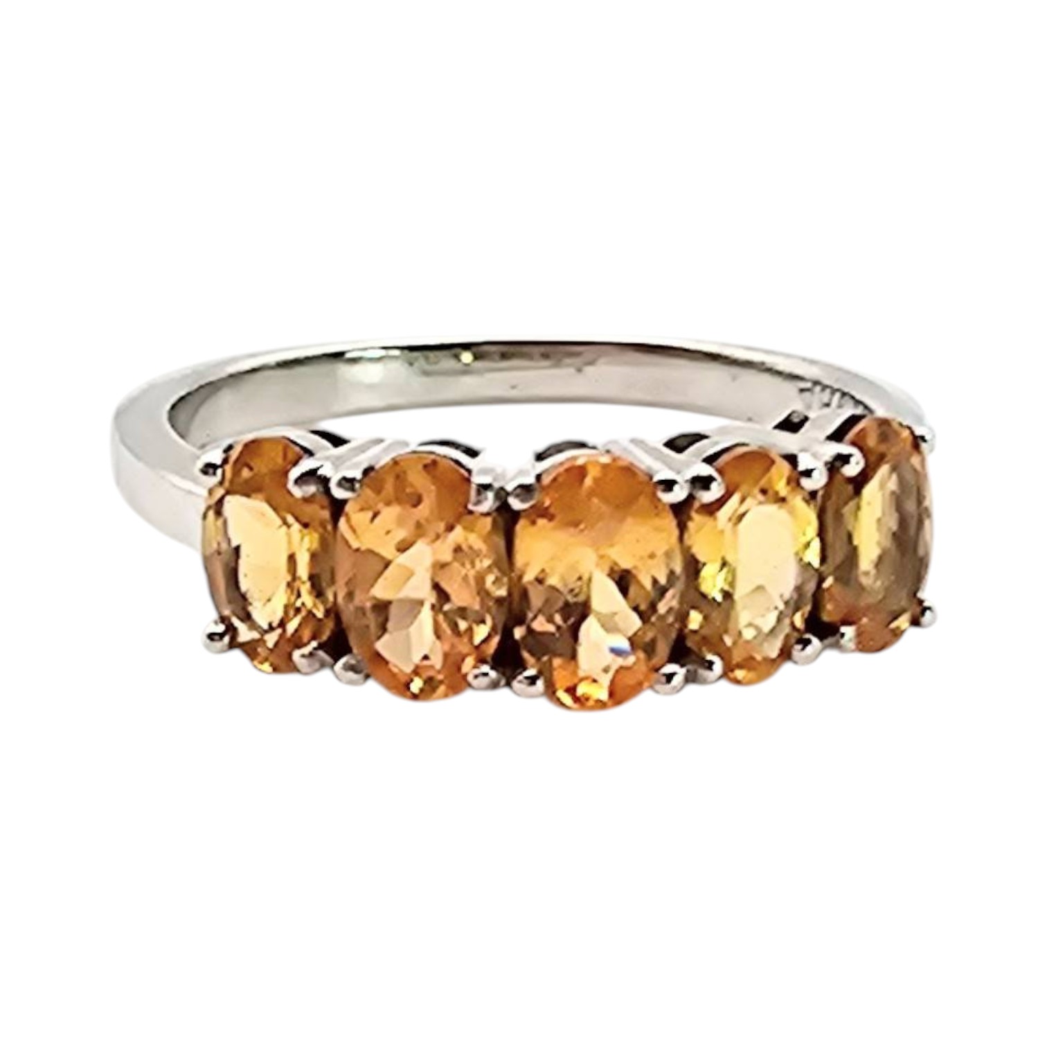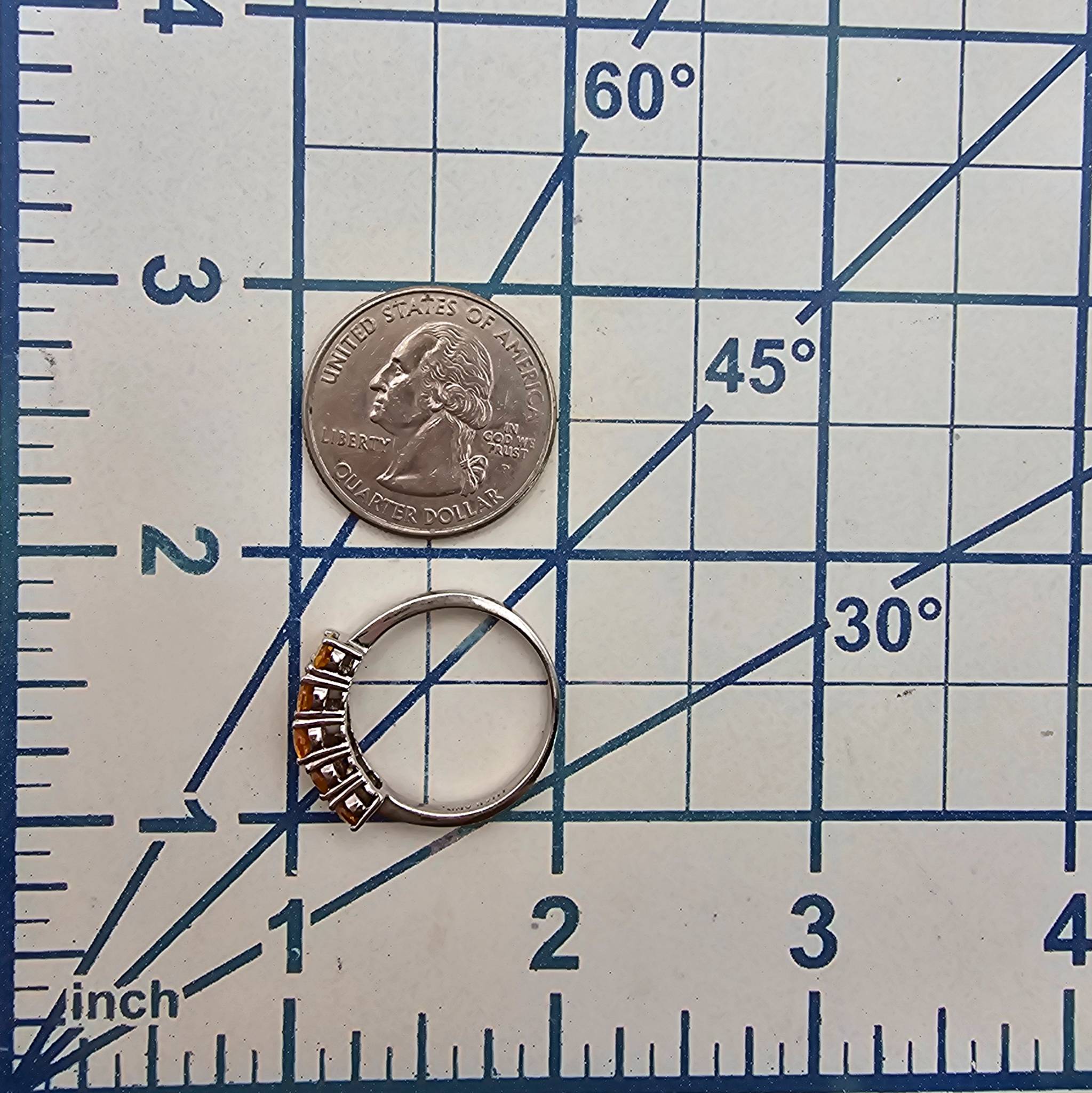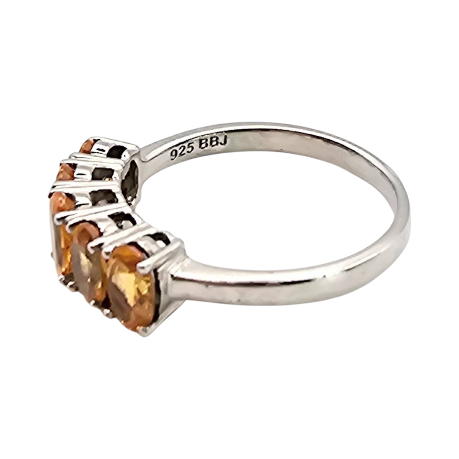BBJ sterling silver ring featuring five oval-cut orange rhinestones. The ring is a size 8.5 and weighs approximately 3 grams. The setting and stones are in good condition, with detailed craftsmanship visible on the band and prongs.